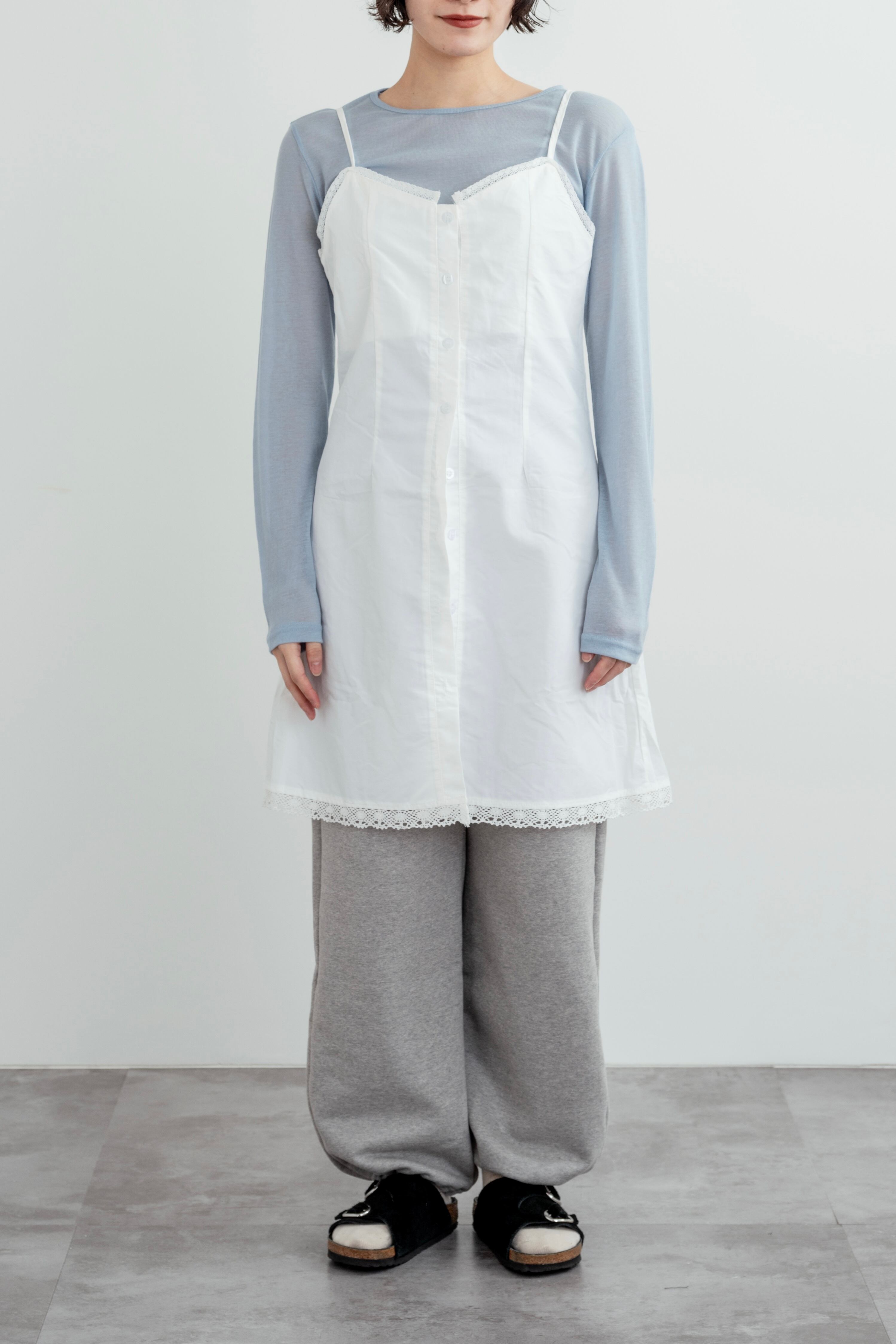 ビンテージのようなデザインのレースキャミチュニック。Tシャツやタンクトップの上に重ね着して、トレンド感のある甘さをプラス。スタイリングが楽しくなる一枚です。