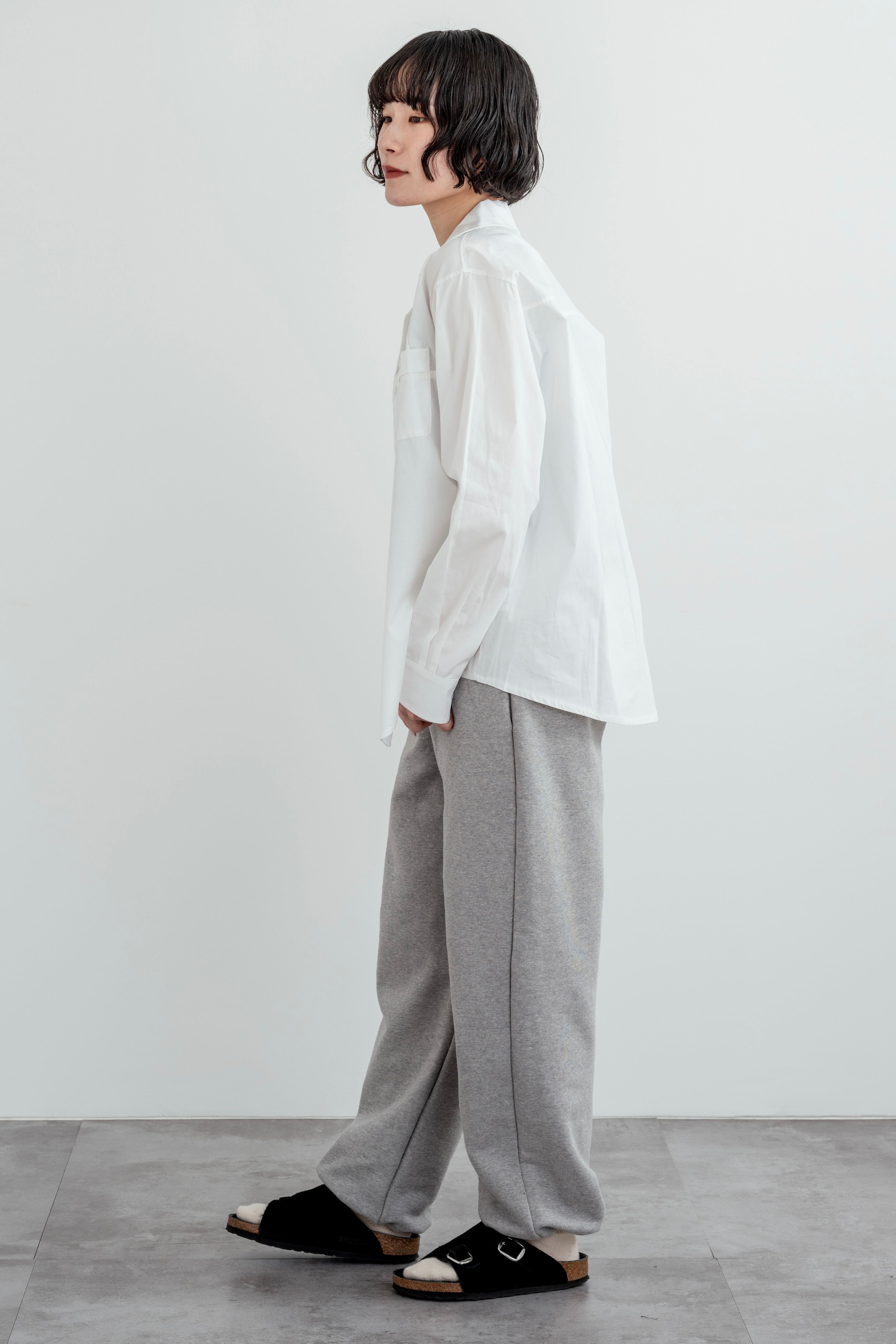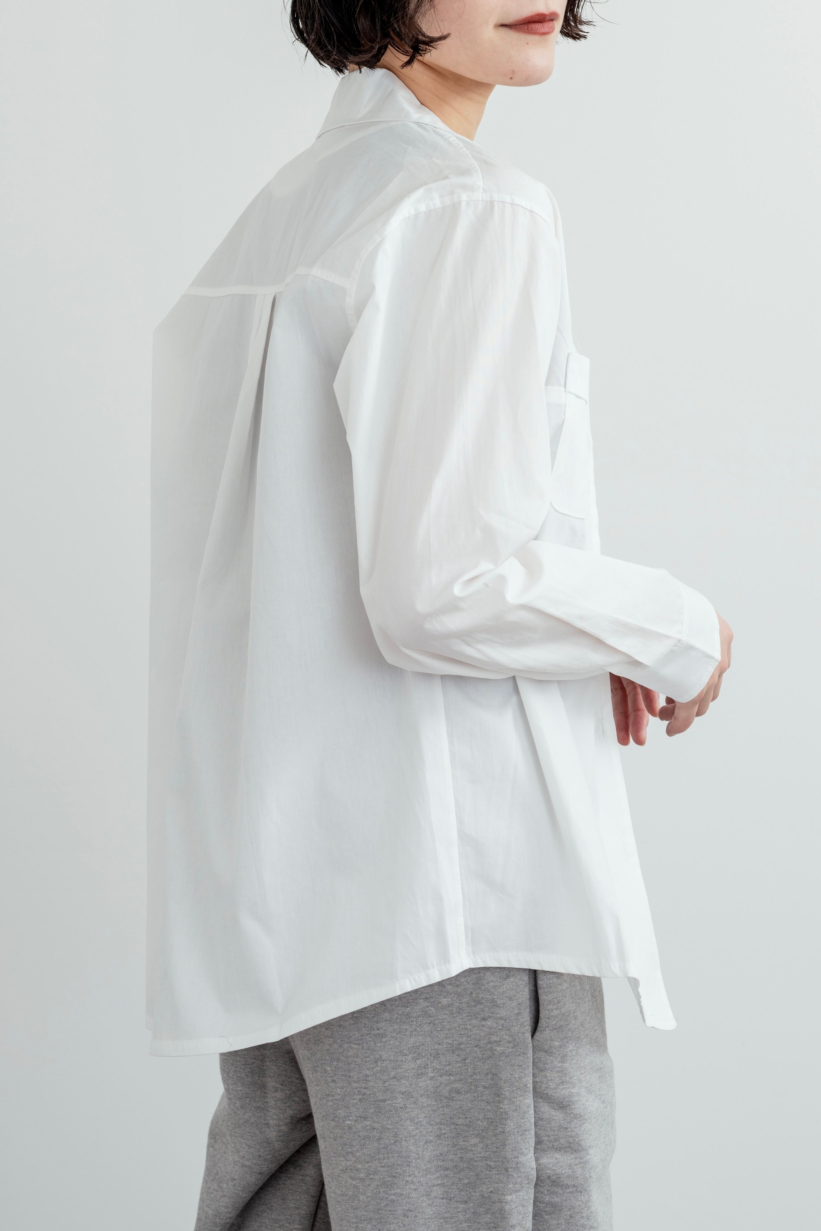 シンプルな中に、細やかなデザインが効いたオープンカラーシャツ。一枚で着るのも、羽織として着るのも◎