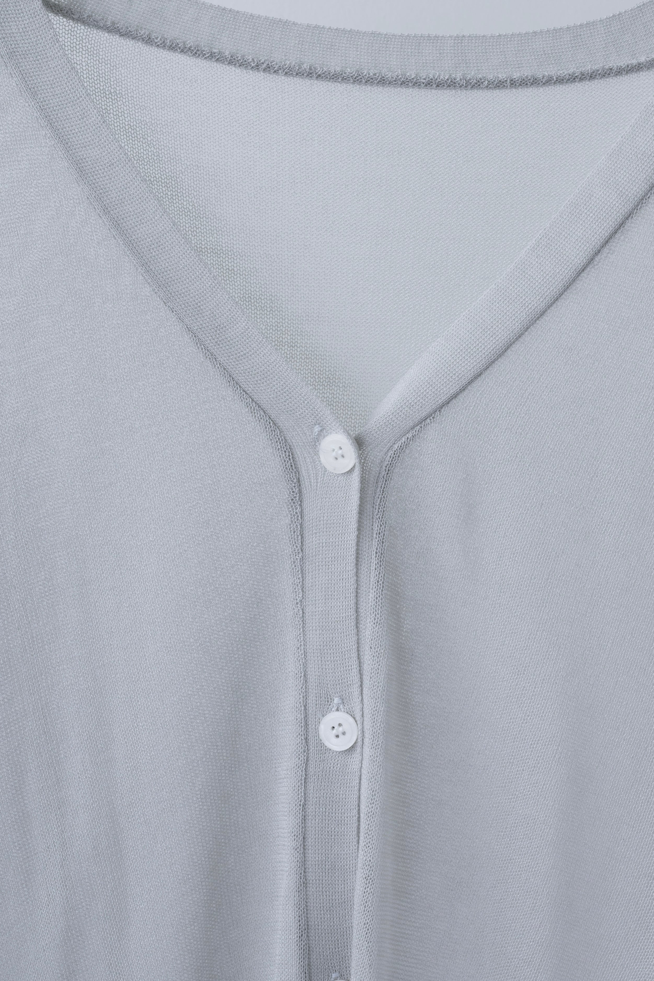 深めvネックの透け感のあるシアーカーディガン。