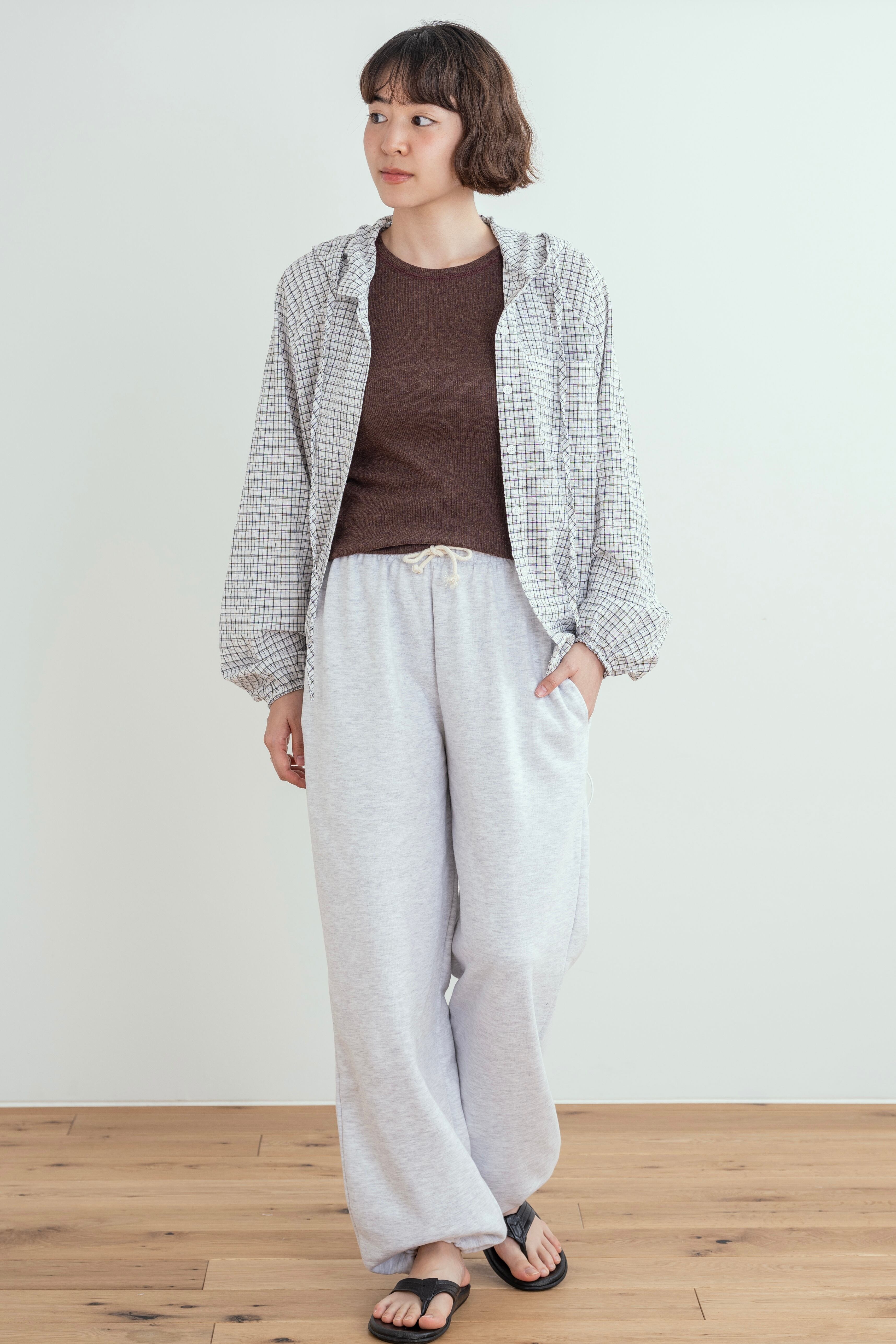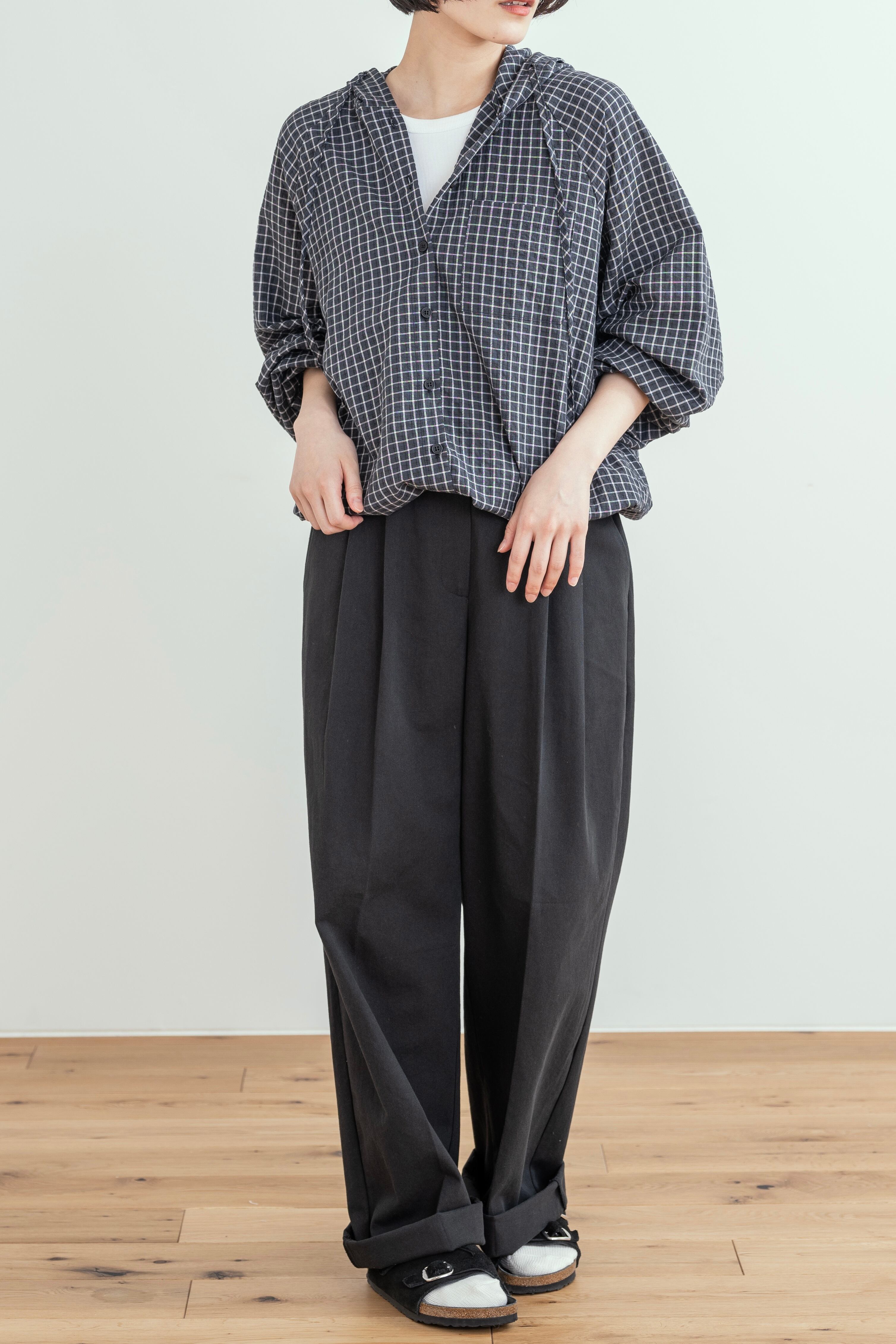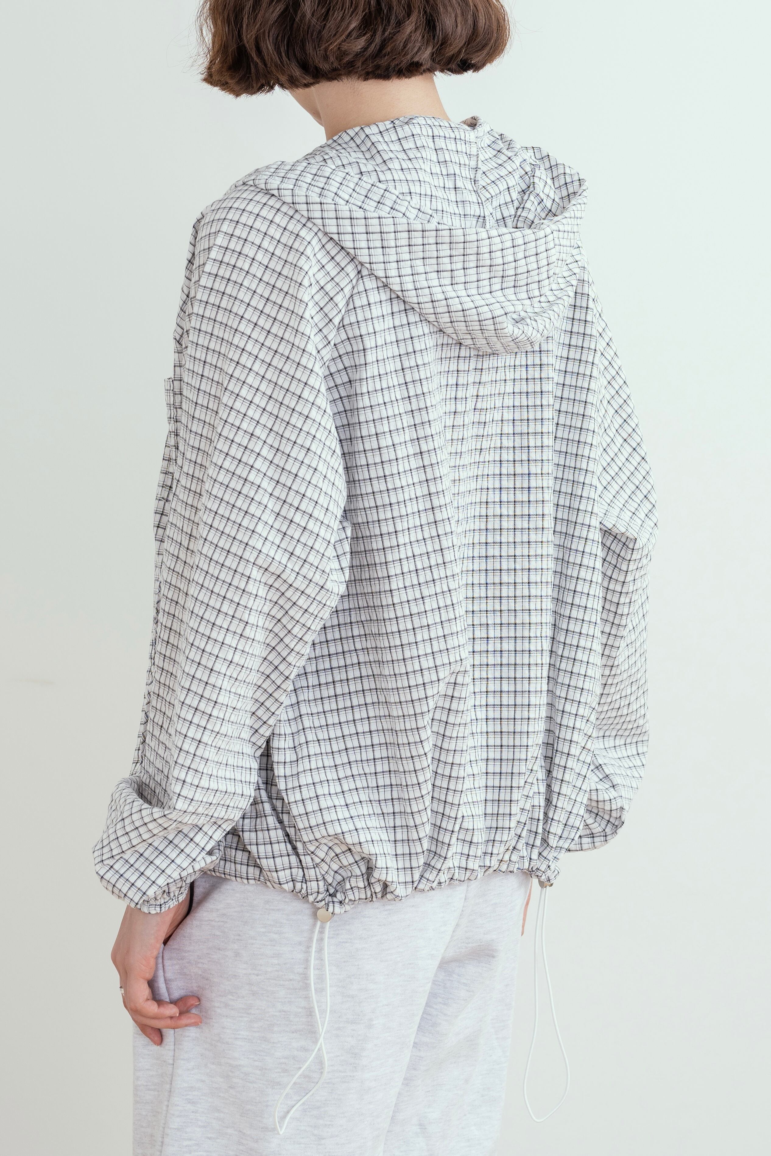 細やかなチェック柄がコーディネートのポイントになる一枚。インナーにタンクトップを入れて、羽織にするのもお勧めです♪