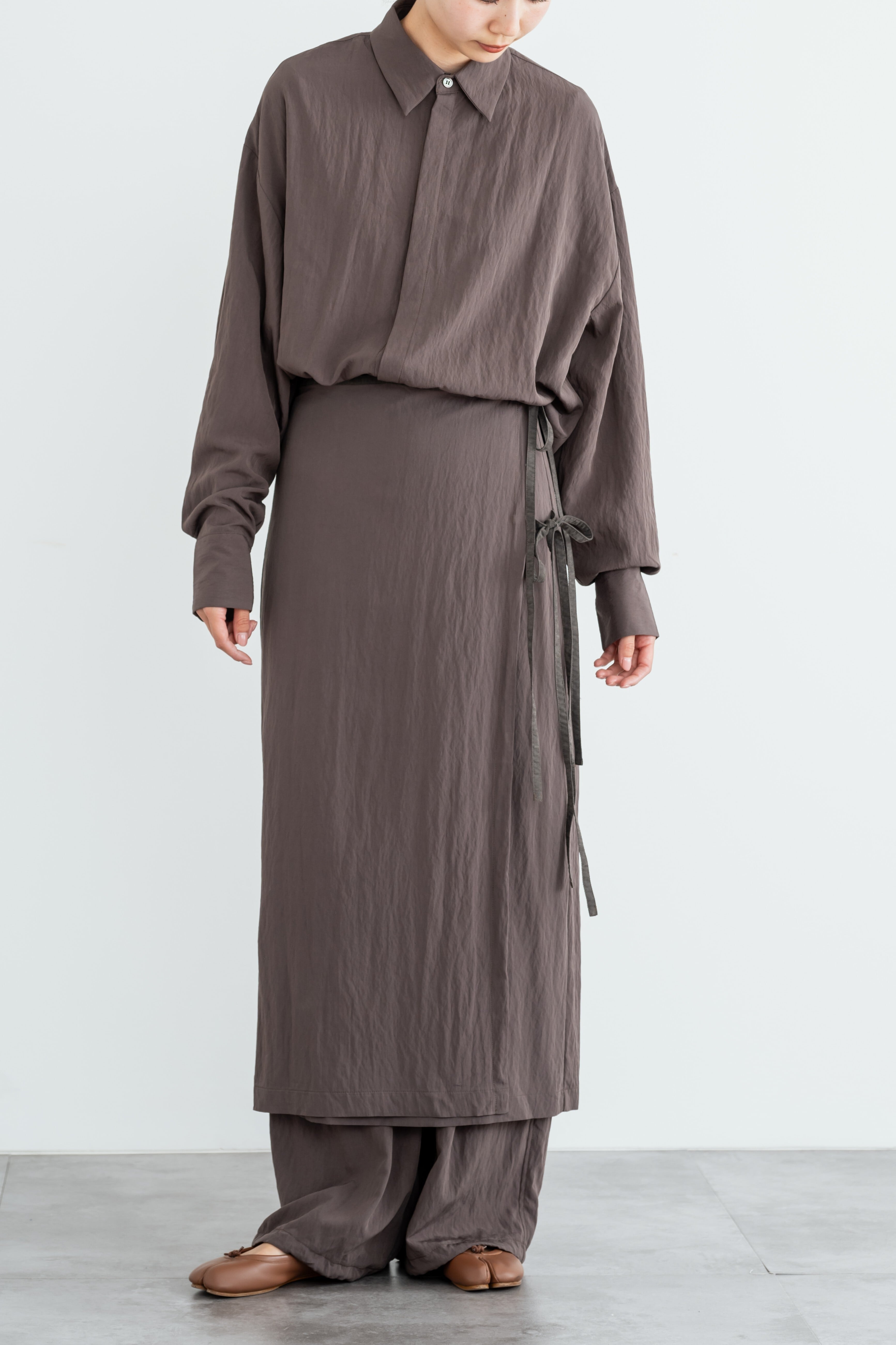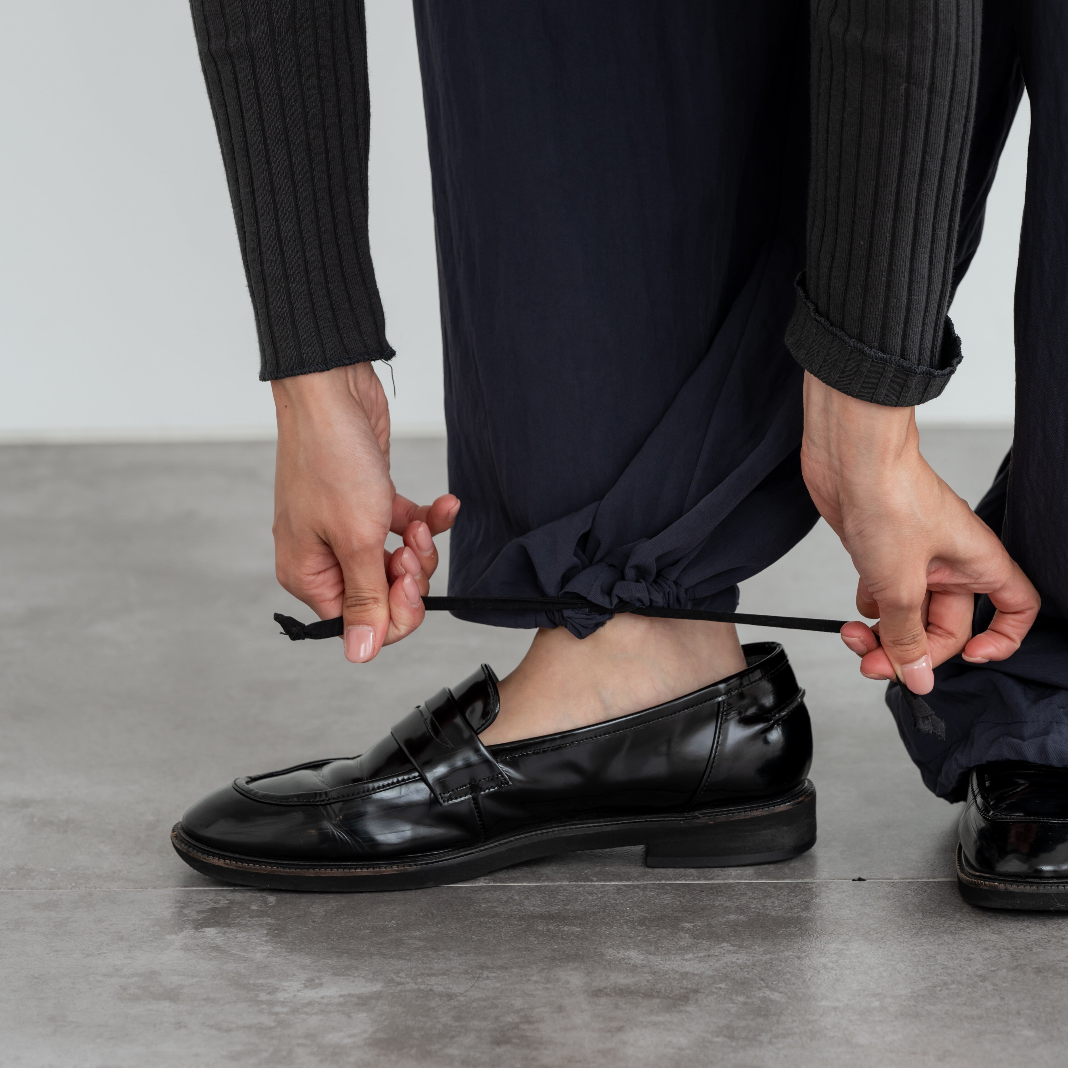 ・すそには、調節紐があり、ストレートとパラシュート2種類のスタイルでご着用いただけます。低身長さんも高身長さんも綺麗にご着用いただけます。
