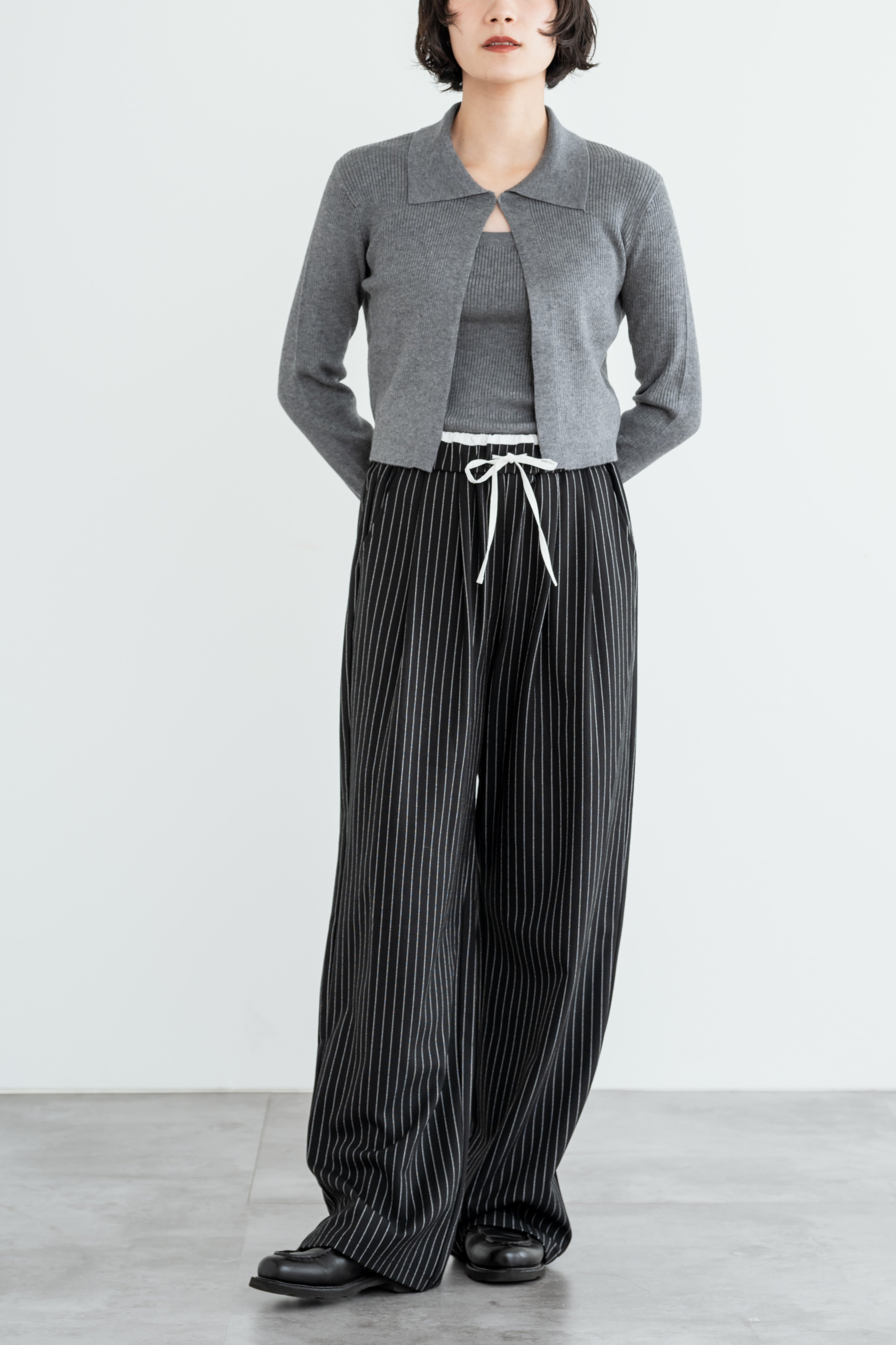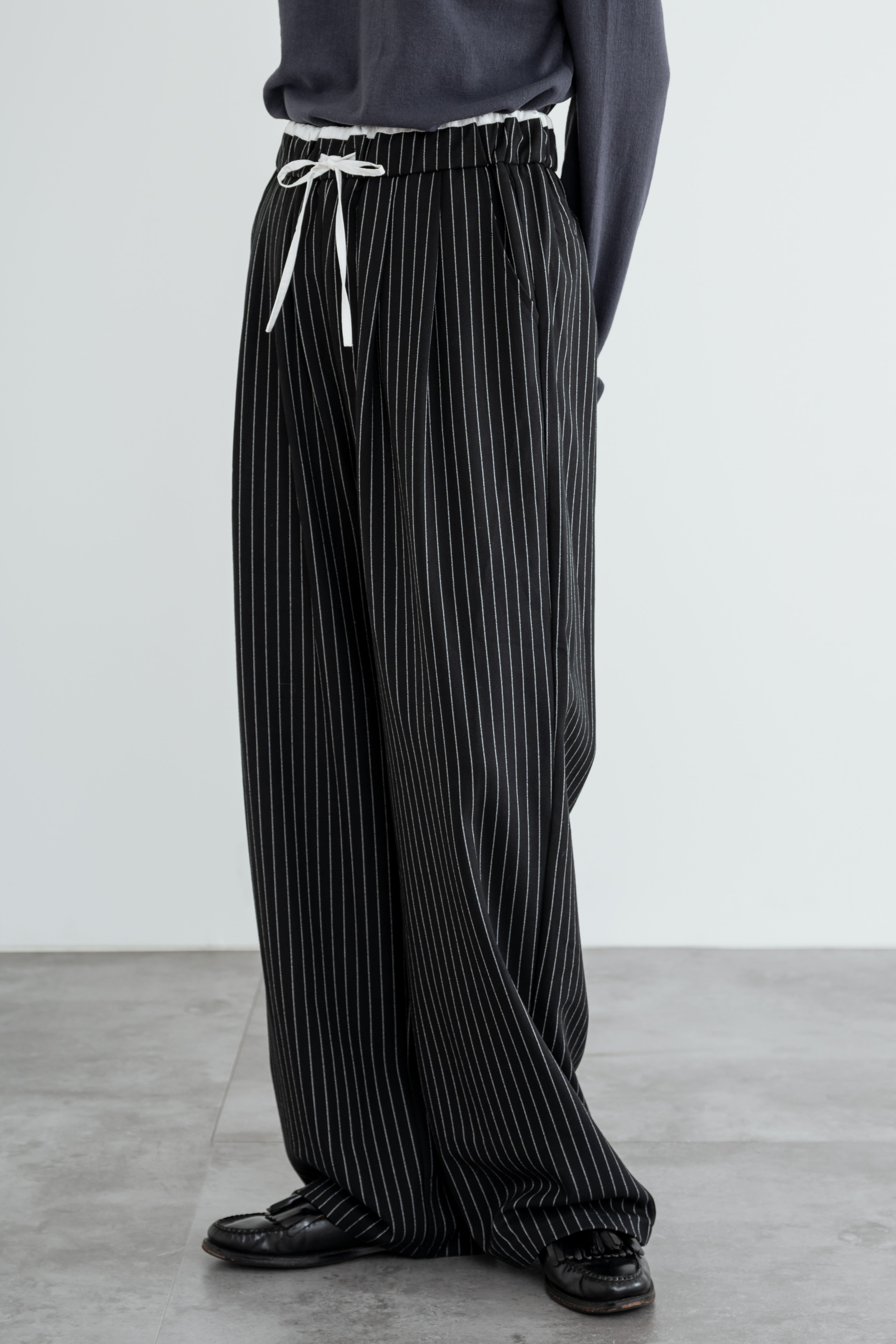 waist design stripe easy slacks