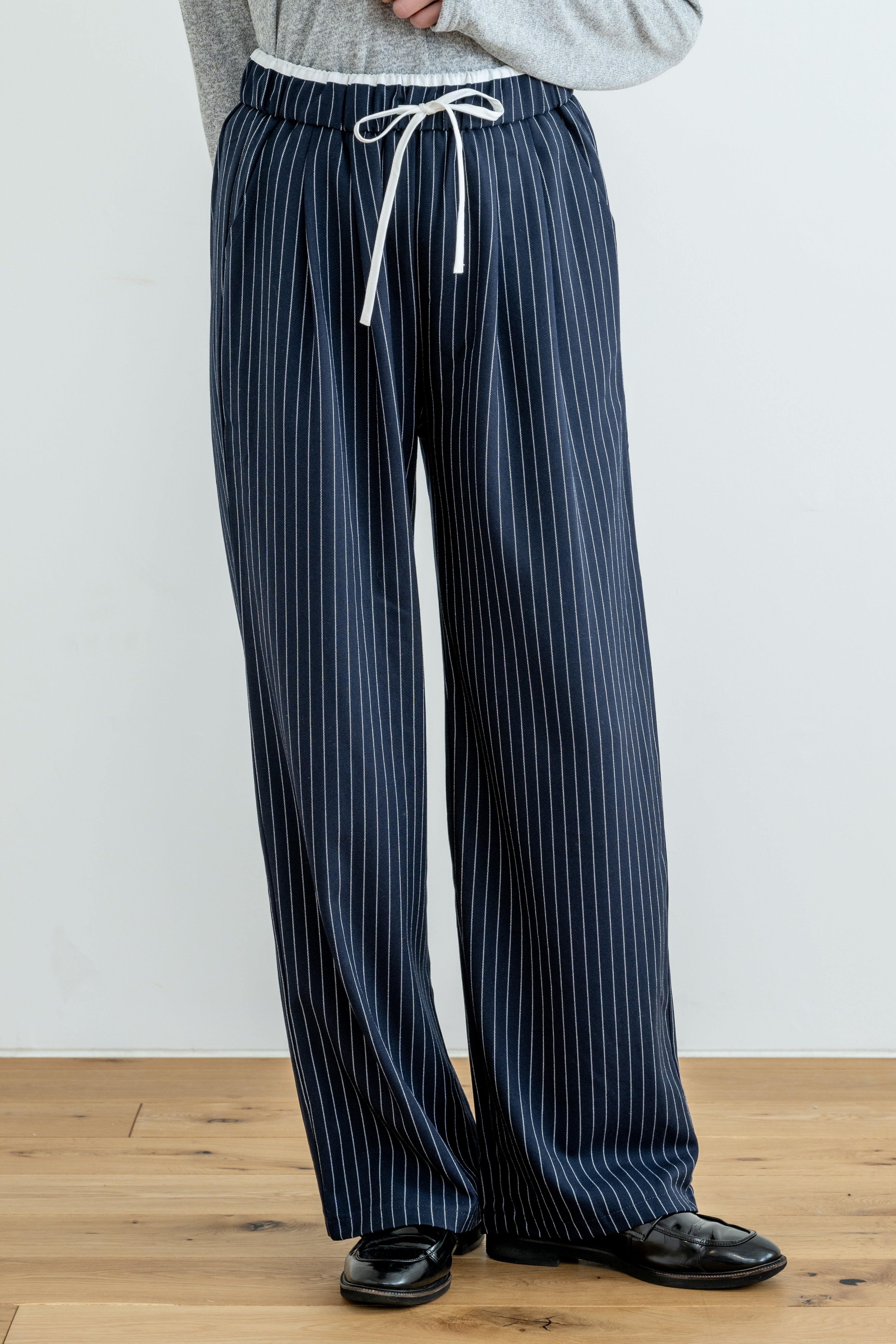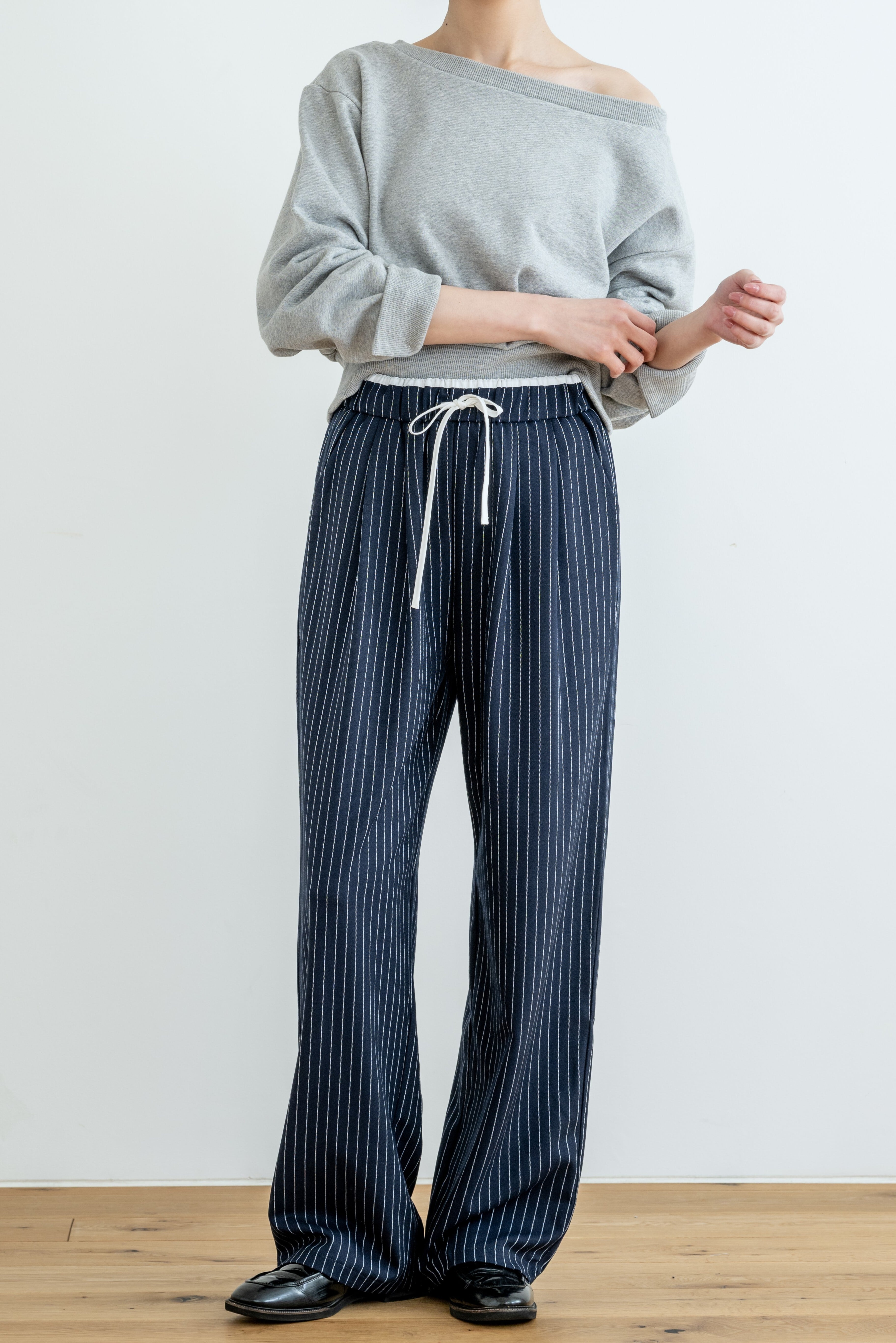 waist design stripe easy slacks(新色: navy 登場)