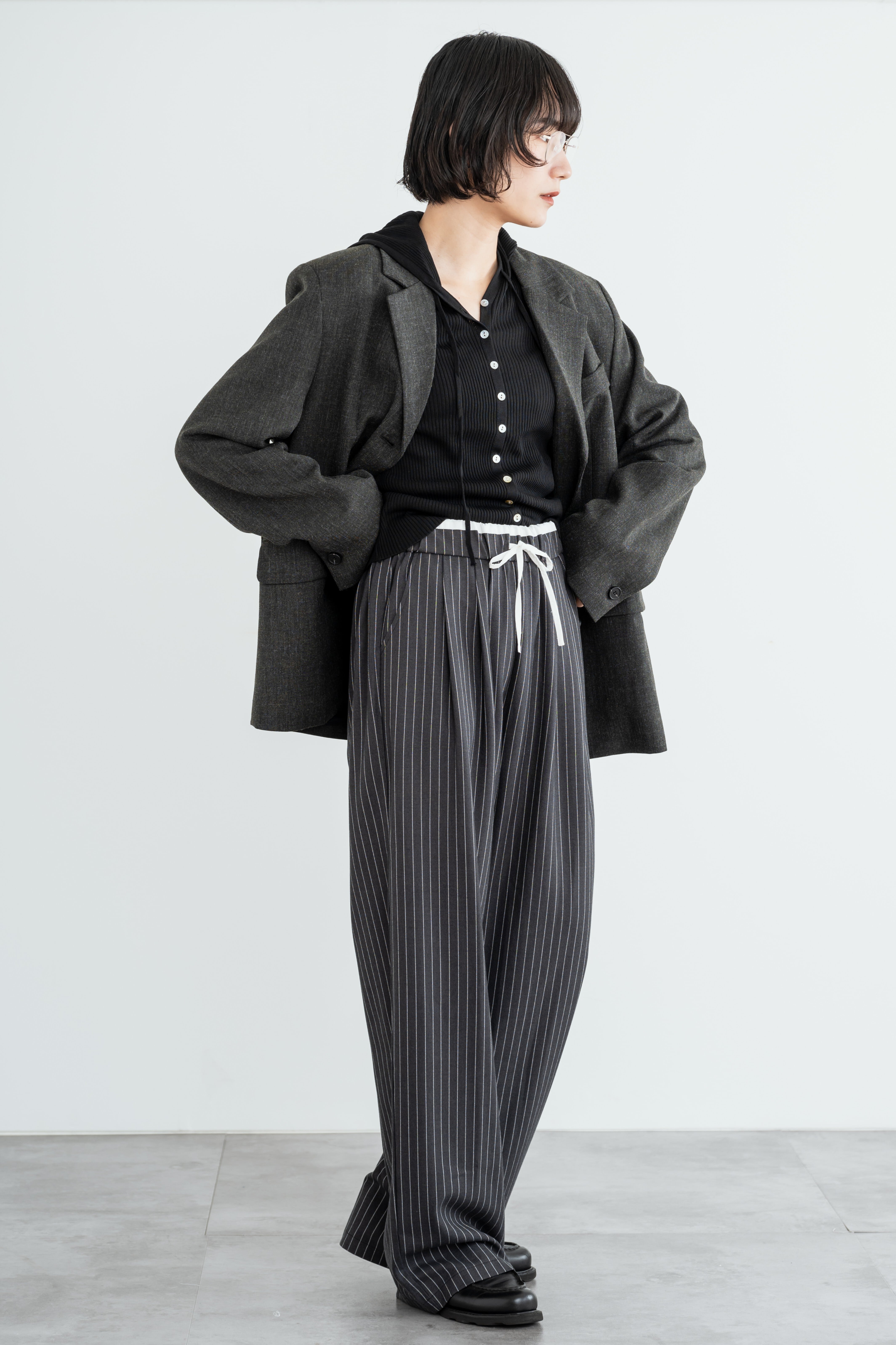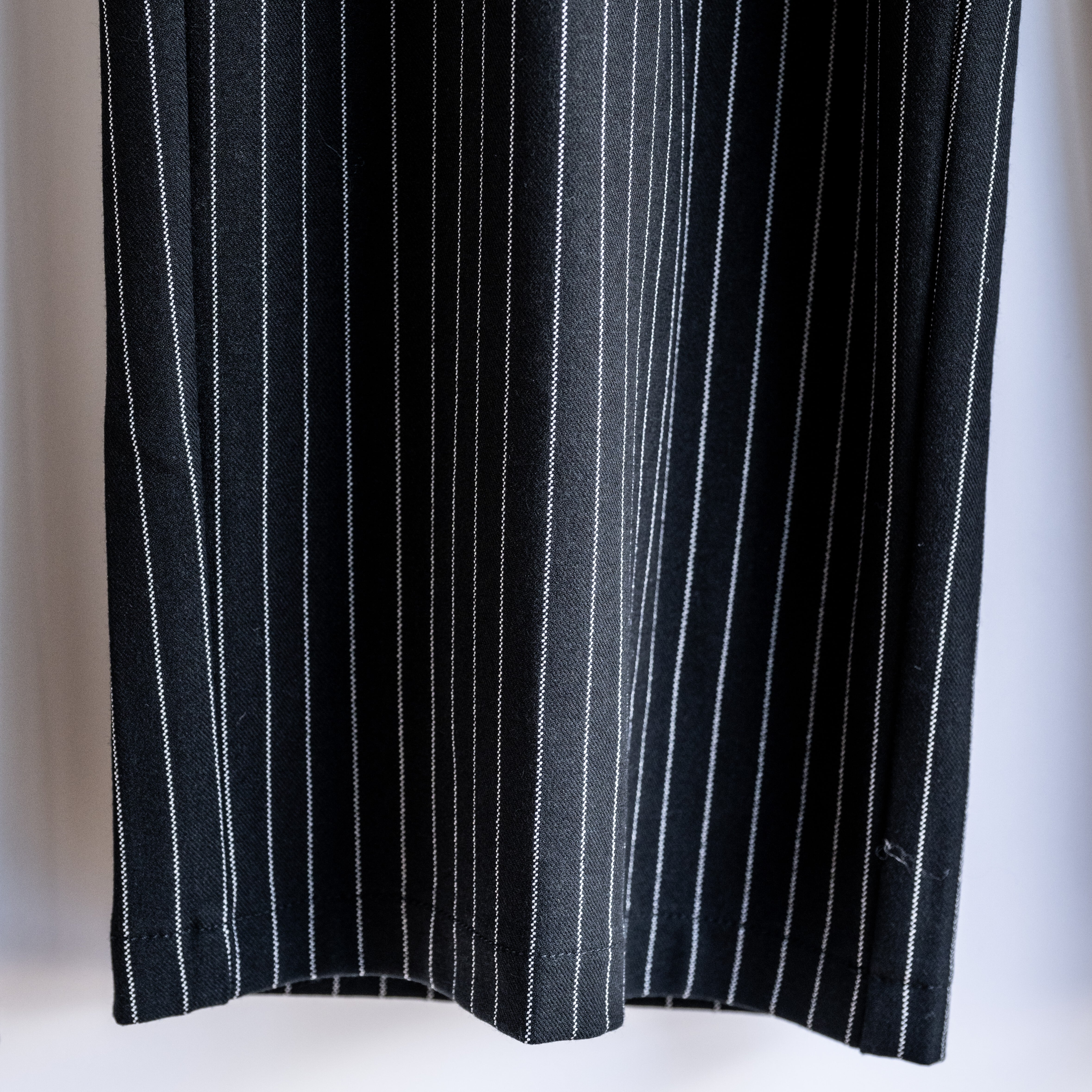 ダブルタックで、綺麗なシルエットのストライプパンツ。