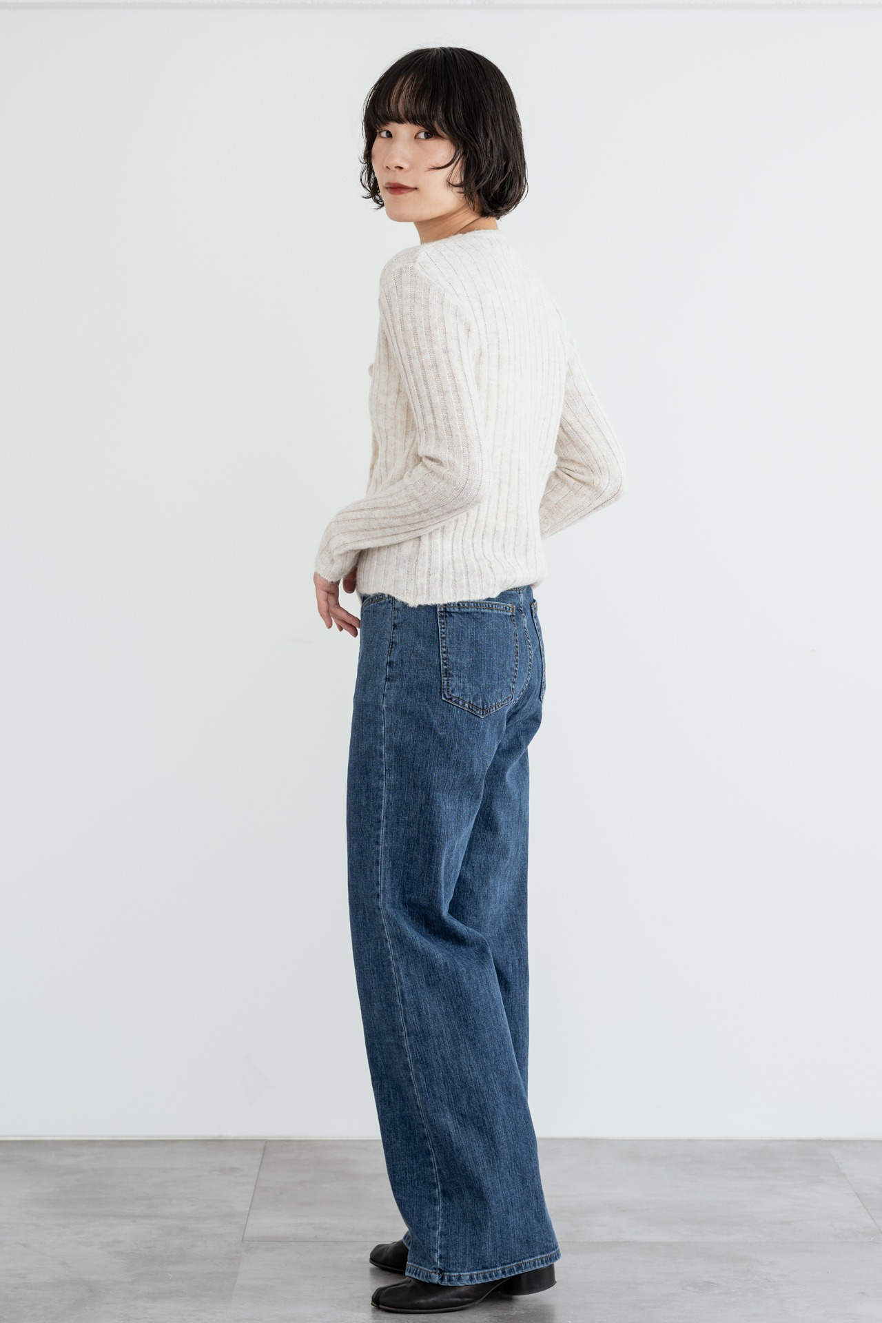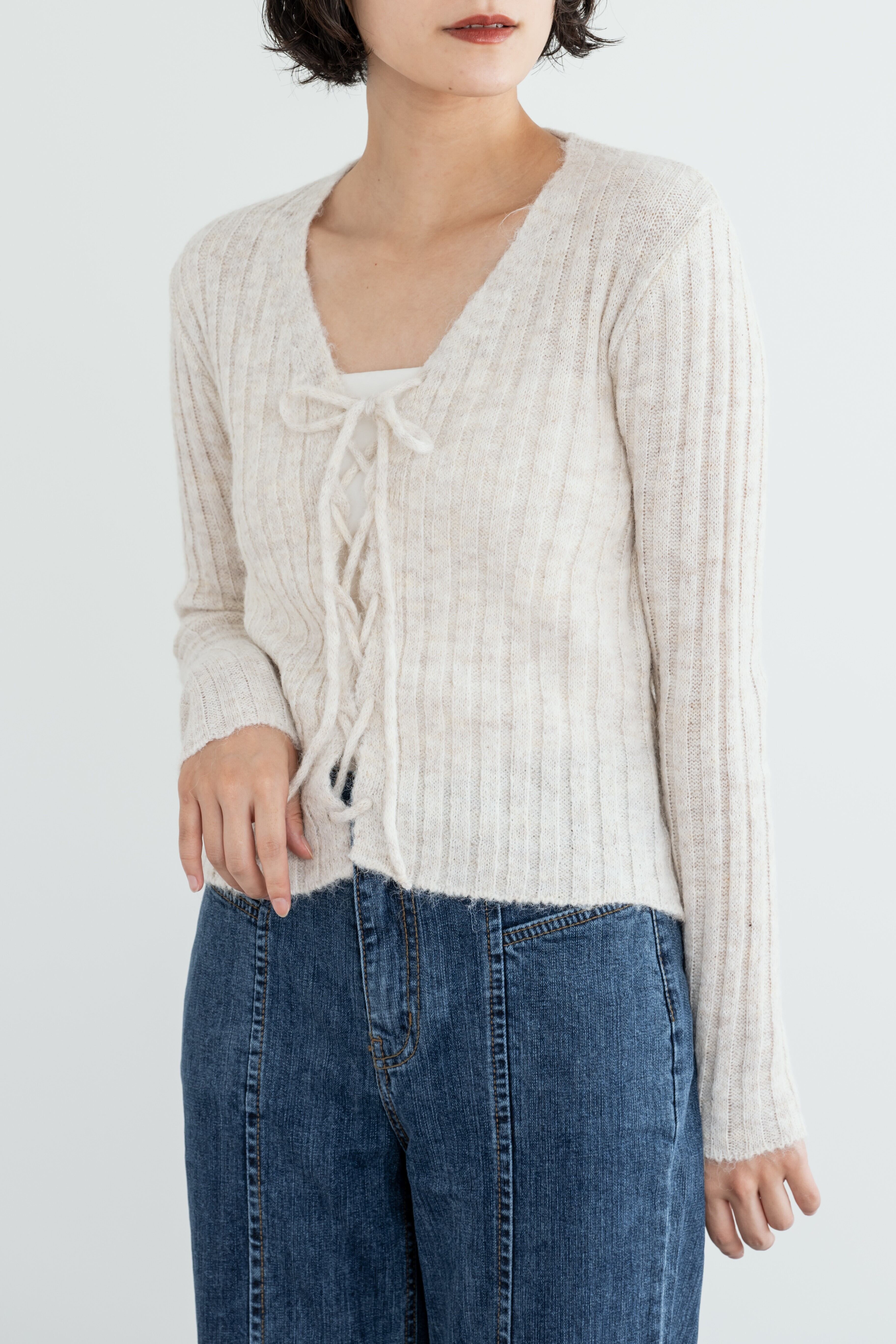 ミックス感のあるリブニット生地が可愛いです。デニムとの相性が◎