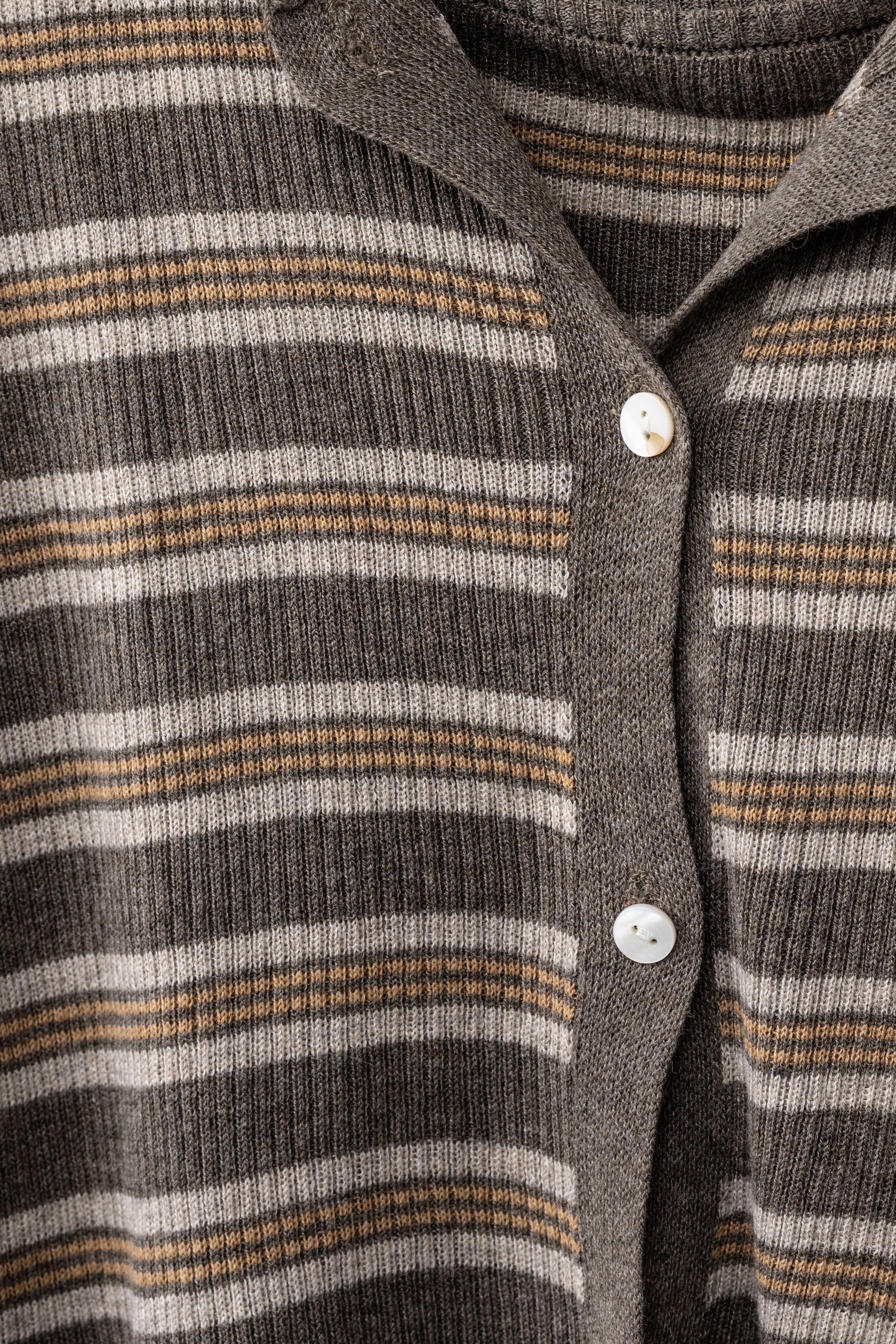 キャミソールとカーディガンのセットアイテム。トレンドのブラウンカラー。セットでもそれぞれ別でもお楽しみいただけます。マルチボーダーが目を引く、コーディネートの主役になれる一枚です。