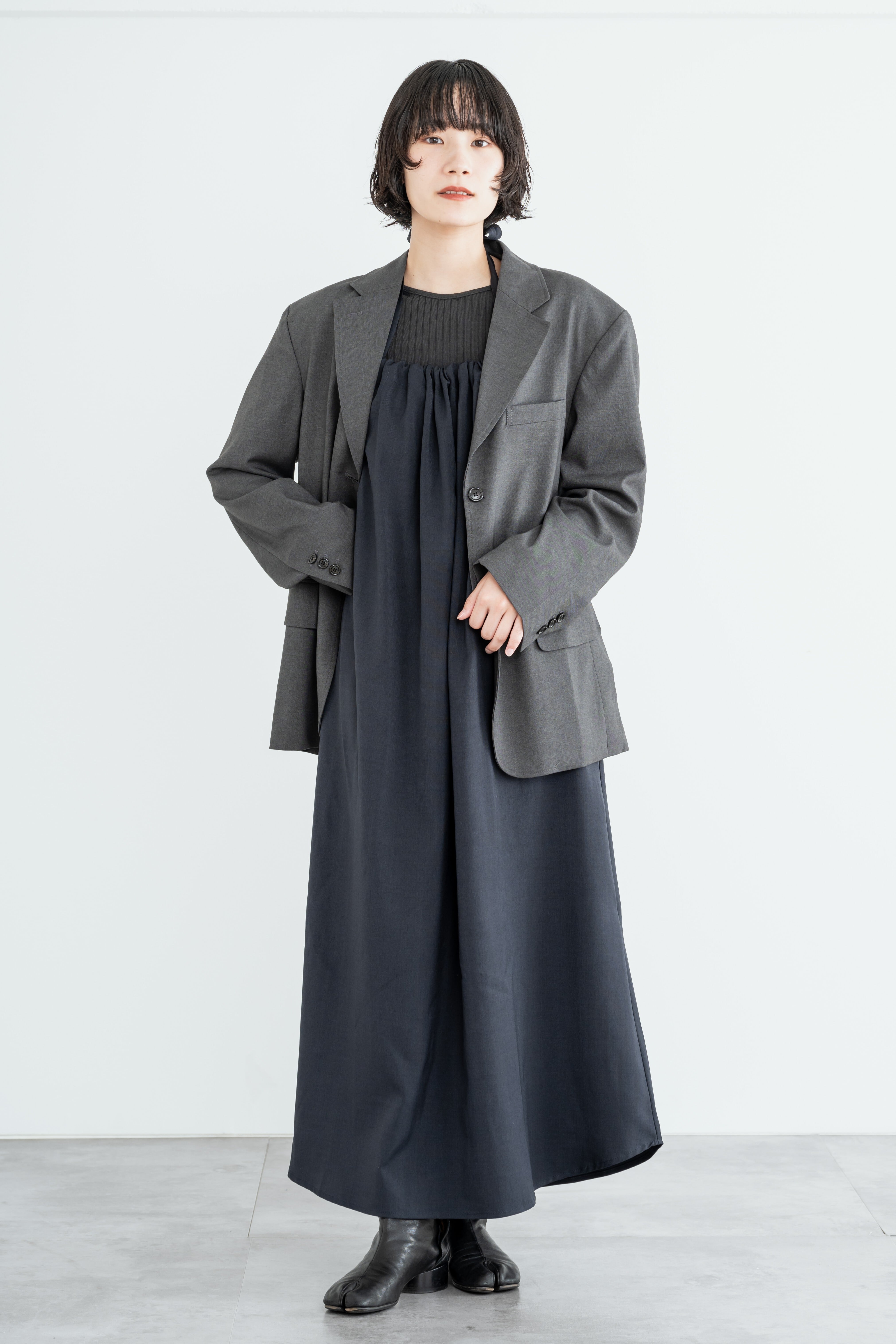 ゆったりとしたシルエットで、リラックスして着られる薄手のテーラードジャケット。襟元の同色ステッチもポイント。裏地なし、リネン混で、まだ暑い日も快適にご着用いただけます。