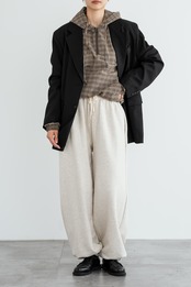 軽やかで柔らかな素材を使用しており、季節の変わり目に活躍する一枚です。ハーフジップ仕様で着脱もしやすく、カジュアルながら洗練された雰囲気をプラス。裾と袖口にはゴムを施し、シルエットに程よいメリハリを与えています。ジャケットの中に仕込ませて着ても◎