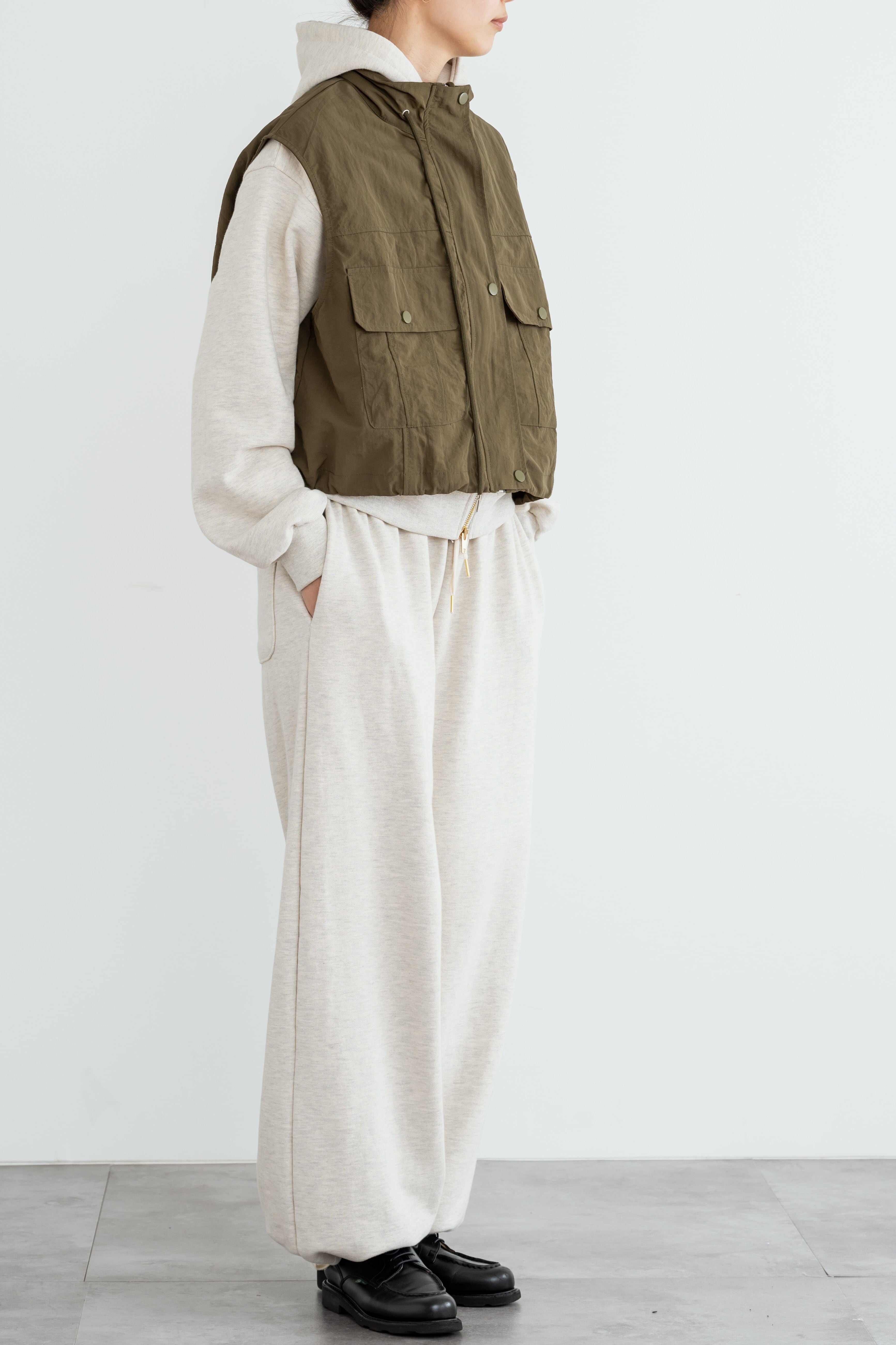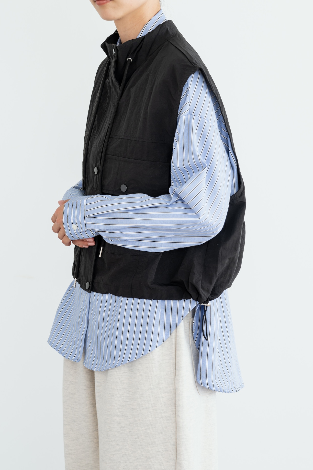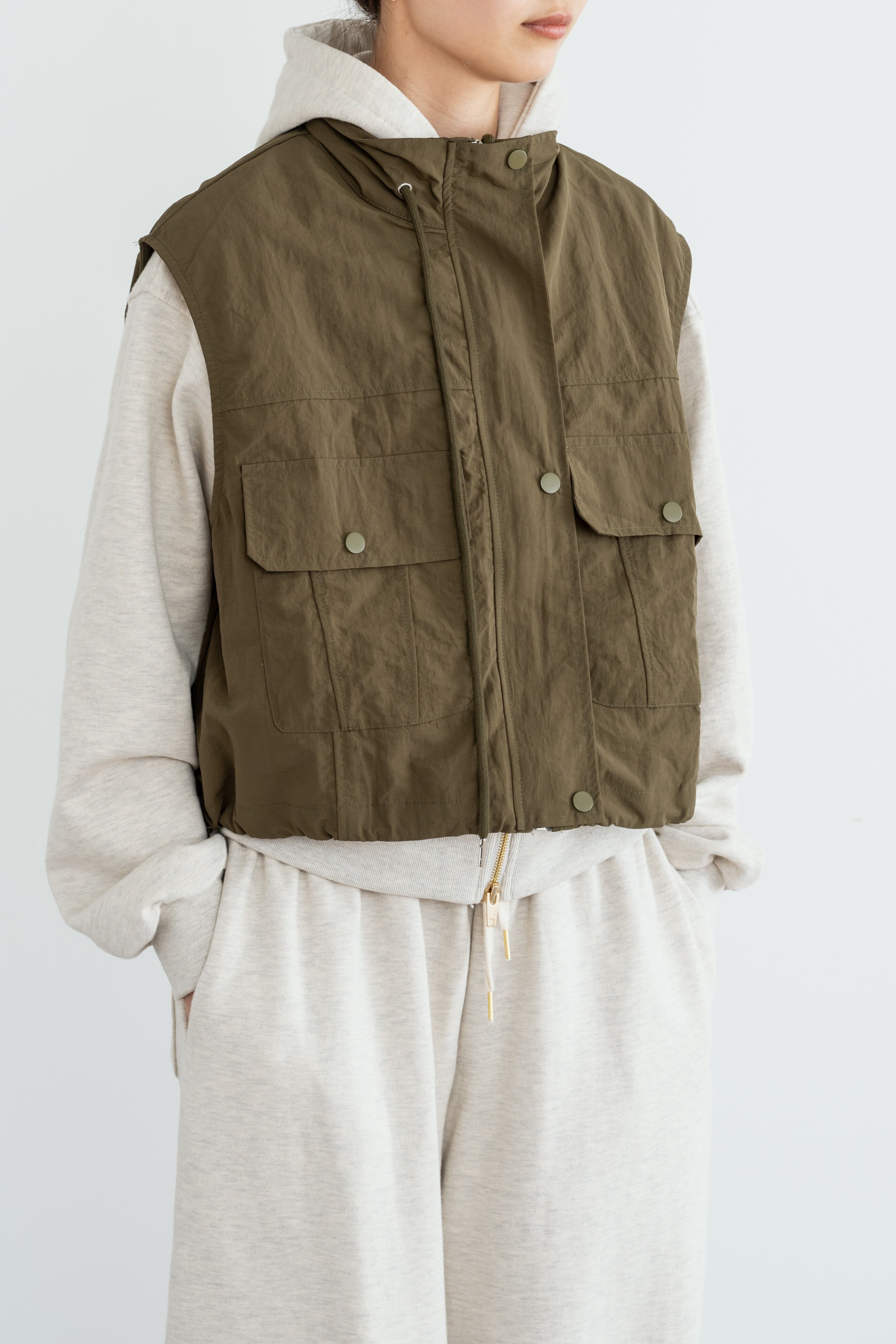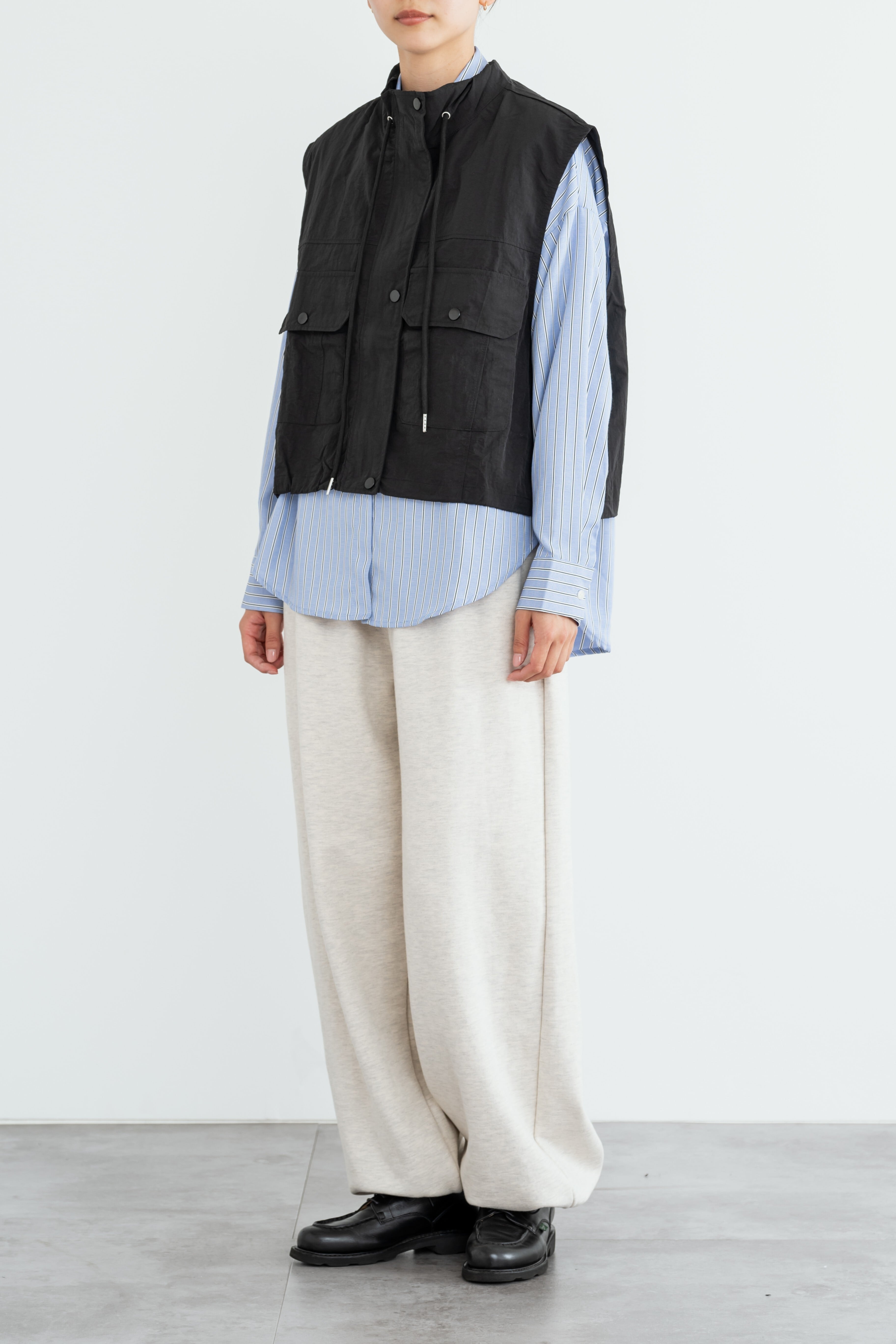 軽やかな素材感でラフに羽織れるので、シャツやワンピースに重ねるだけでトレンド感のあるレイヤードスタイルに仕上がります。大きめポケットがデザインのアクセントになりつつ、実用性も◎。裾にはドローコードが付いているので、シルエットの調整で雰囲気を変えて楽しめます。甘めのブラウスやスカートなどのアイテムと合わせて、バランスの効いたスタイリングにもおすすめ。