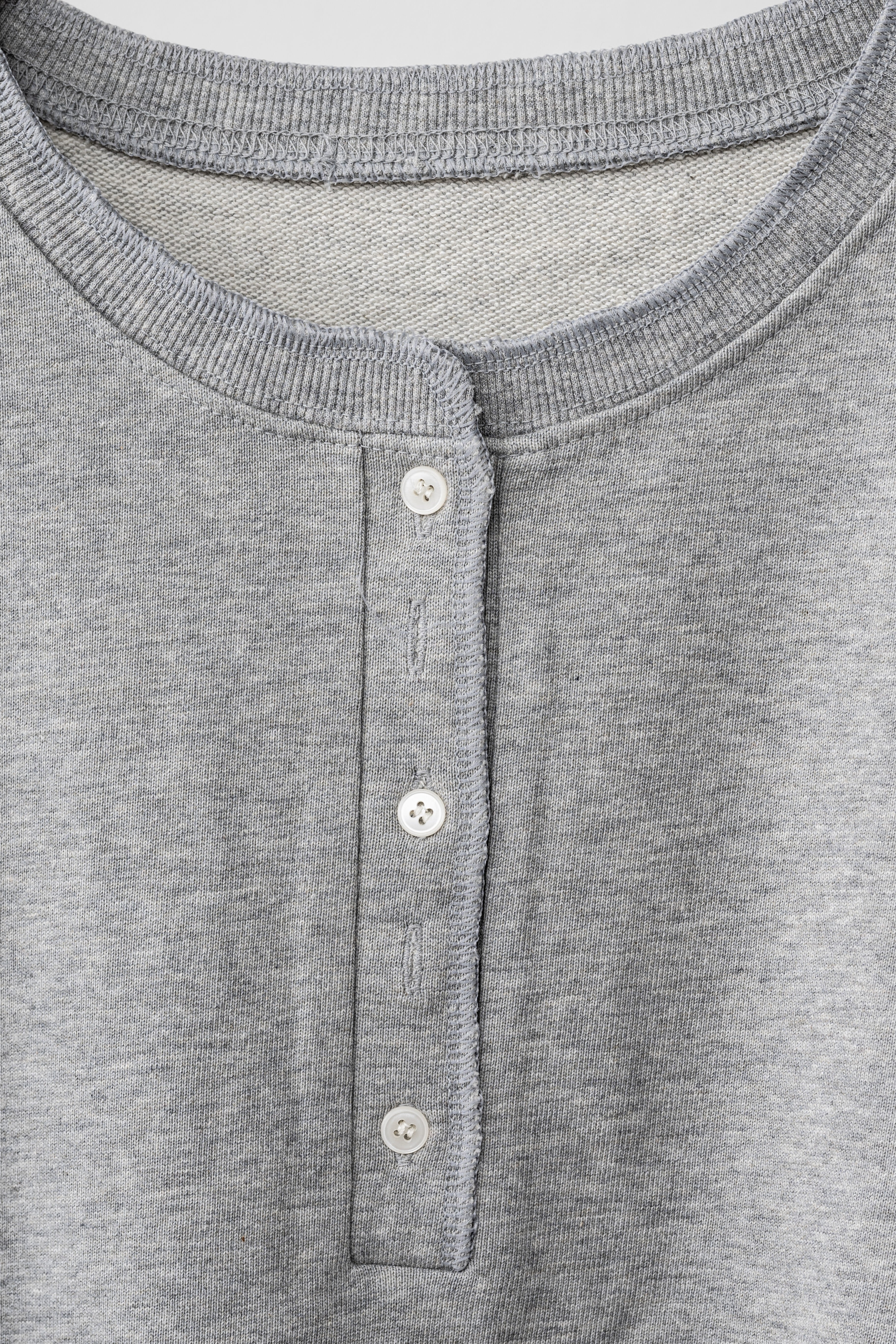 ほどよくラフな雰囲気が魅力のヘンリーネックトップス。フロントのボタンデザインがシンプルな中に表情をプラスし、カジュアルながらもこなれた印象に。柔らかなコットン素材で着心地が良く、リラックス感のあるシルエットはデイリー使いに最適です。スウェット感覚で着られる厚みがありながらも、軽やかな仕上がりで季節の変わり目にも重宝します。カラーインナーを仕込んで着たり、アウターを羽織れるシルエットなのでレイアーコーディネートが楽しめる一枚です。
