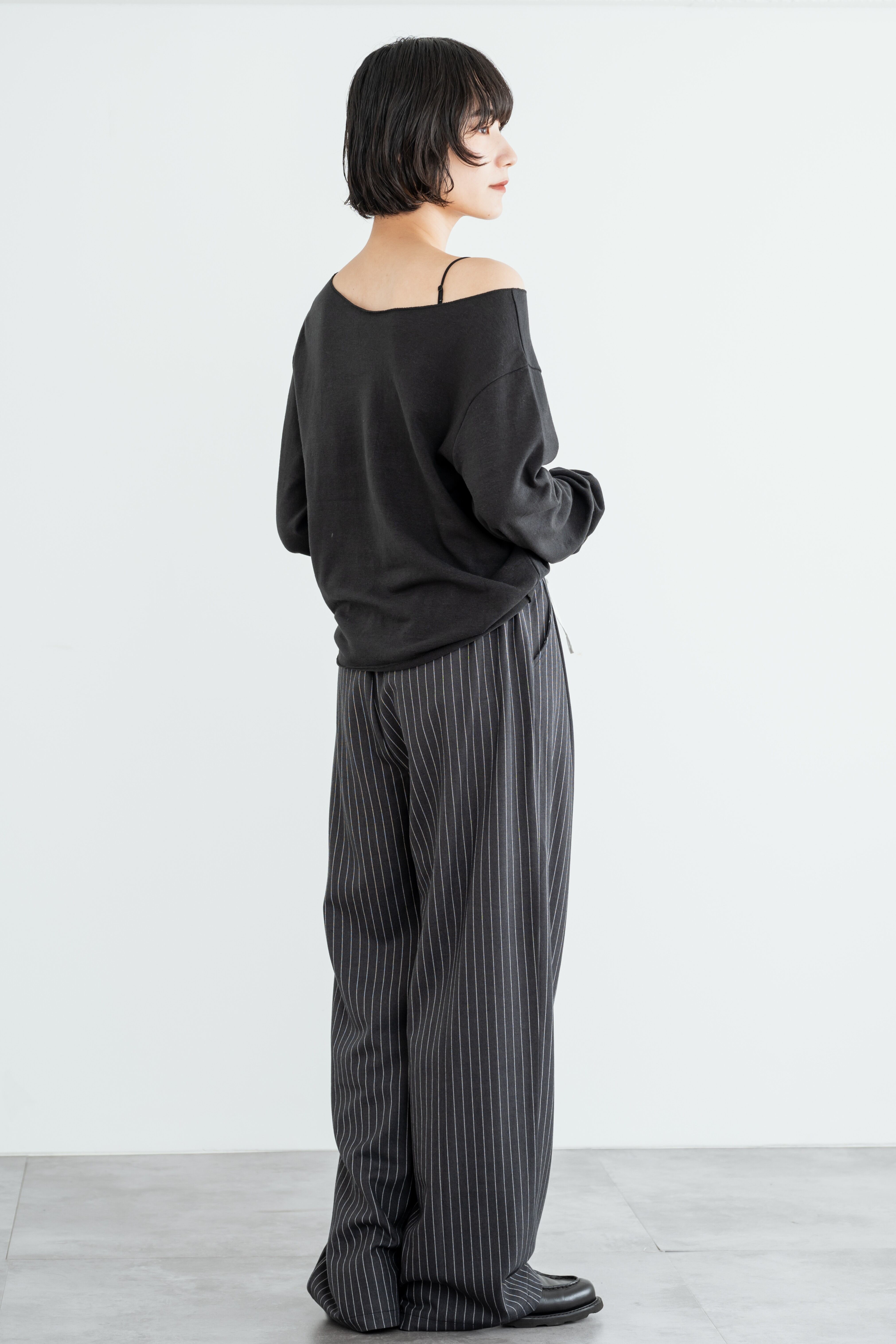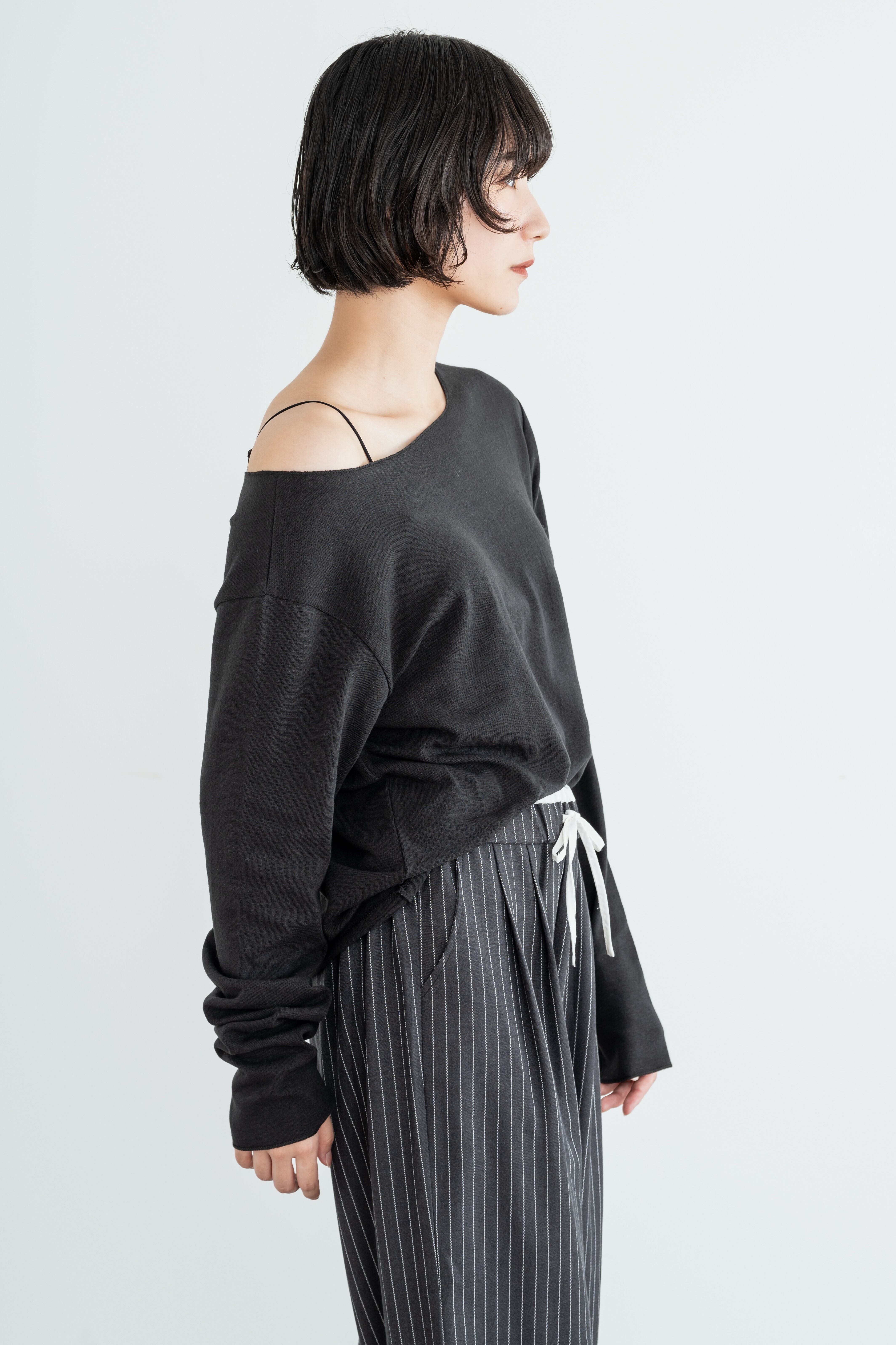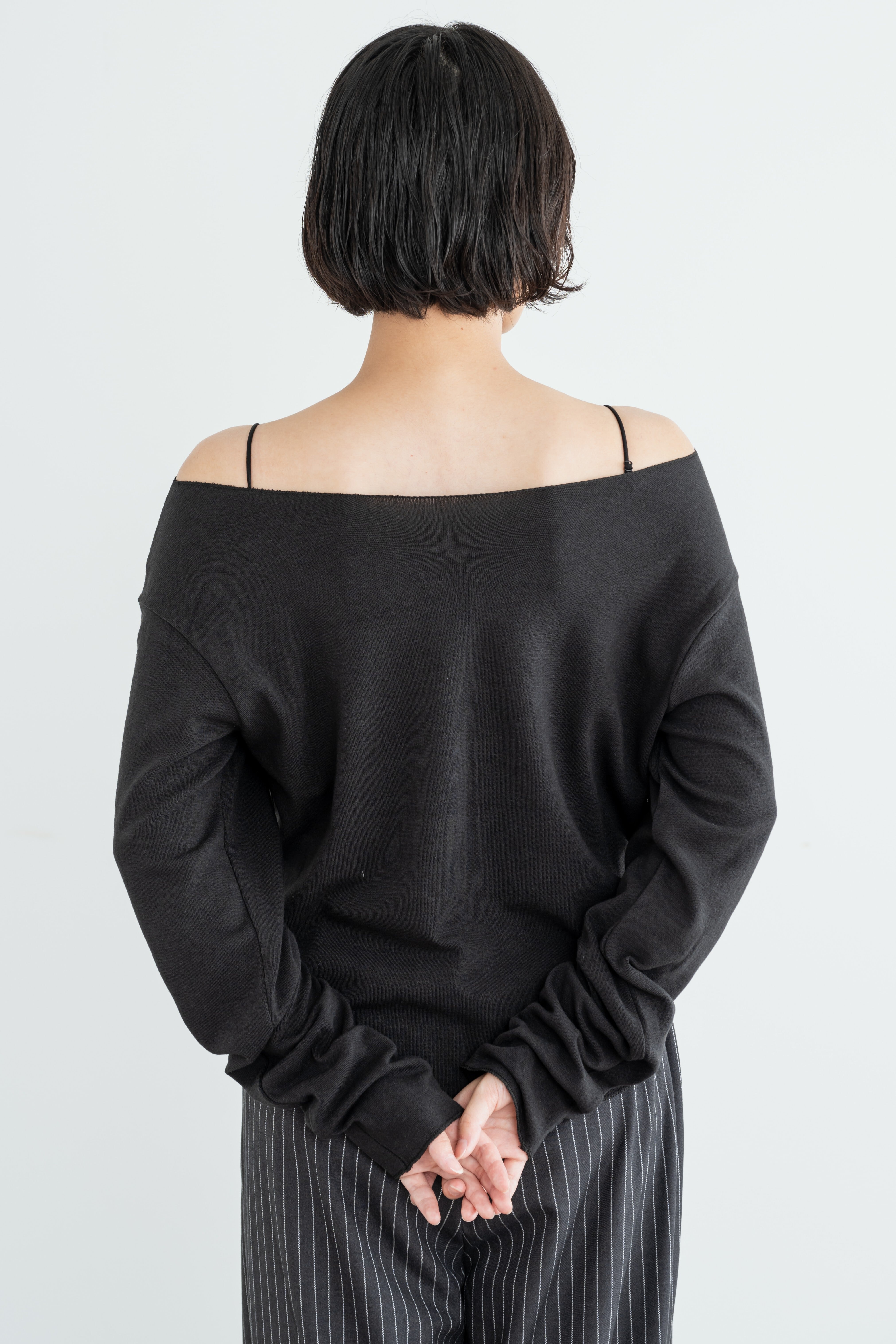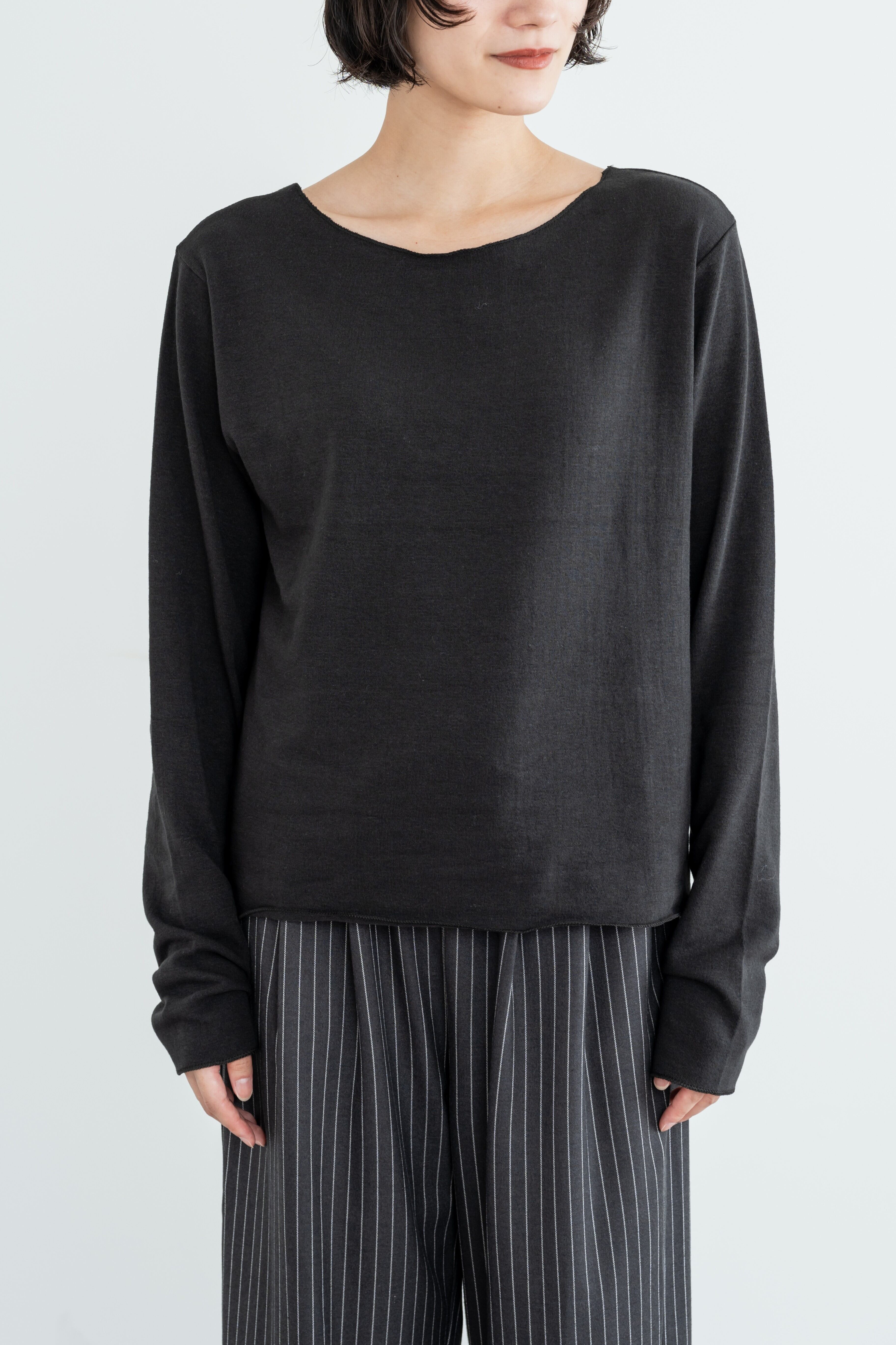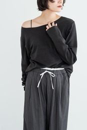 程よく開いたラウンドネックが顔まわりをすっきり見せ、女性らしい柔らかさを引き立てます。さらりとした素材感で快適に着用でき、インナーとしてもメインアイテムとしても活躍。どんなコーディネートにも馴染みやすい万能アイテムです。女性らしくワンショルダーや、オフショルダーで着ても可愛い一枚です。