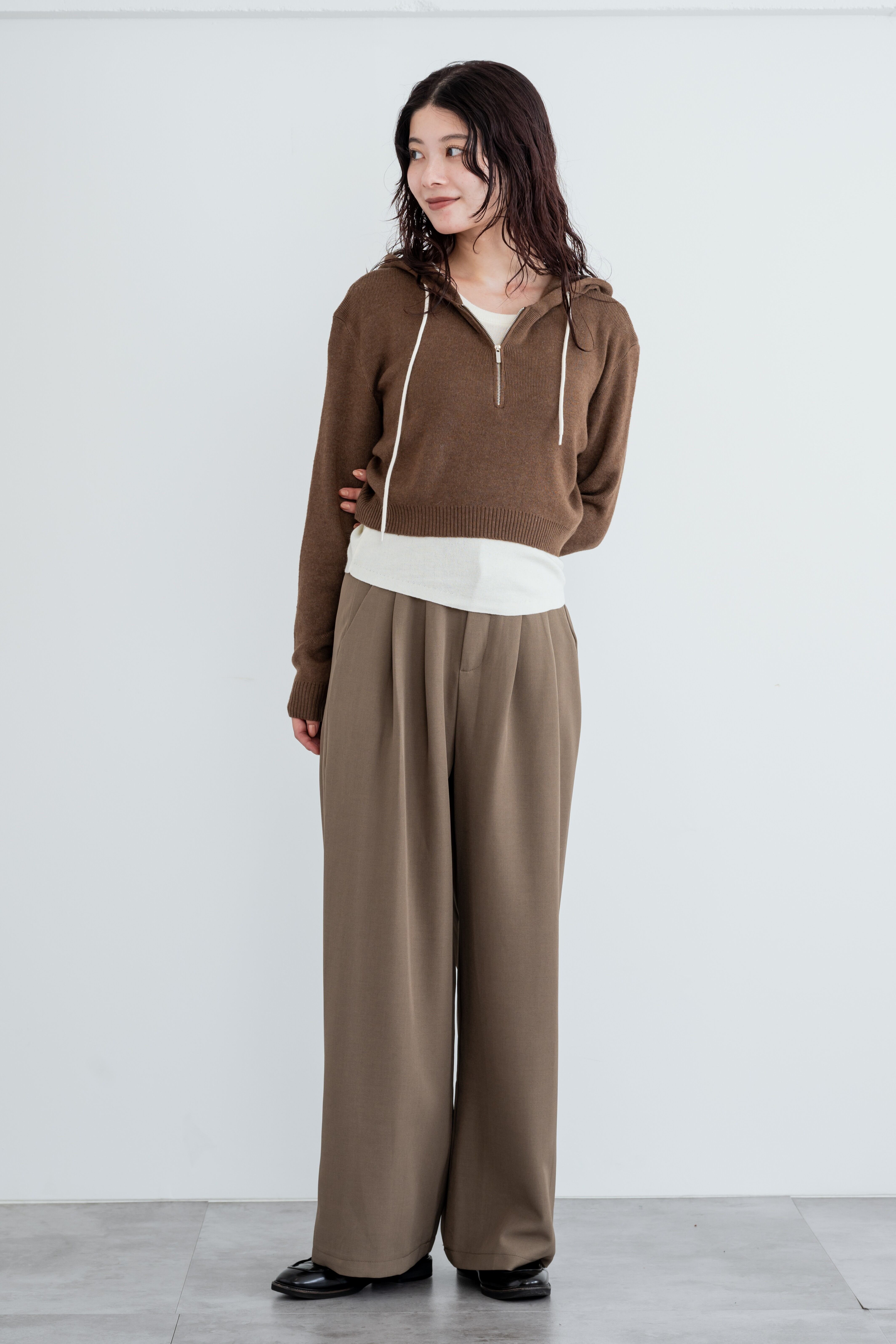 ニット素材のハーフジップパーカーとインナーのセットアイテム。