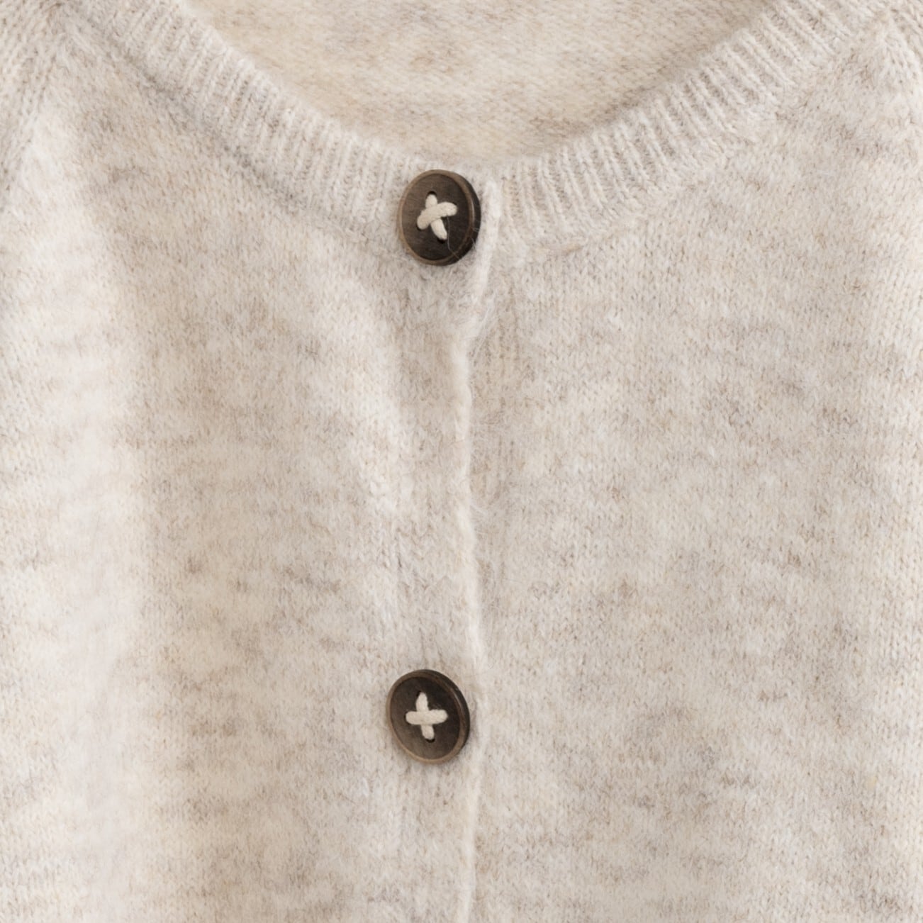 ボタンのデザインがポイントのニットカーディガン。