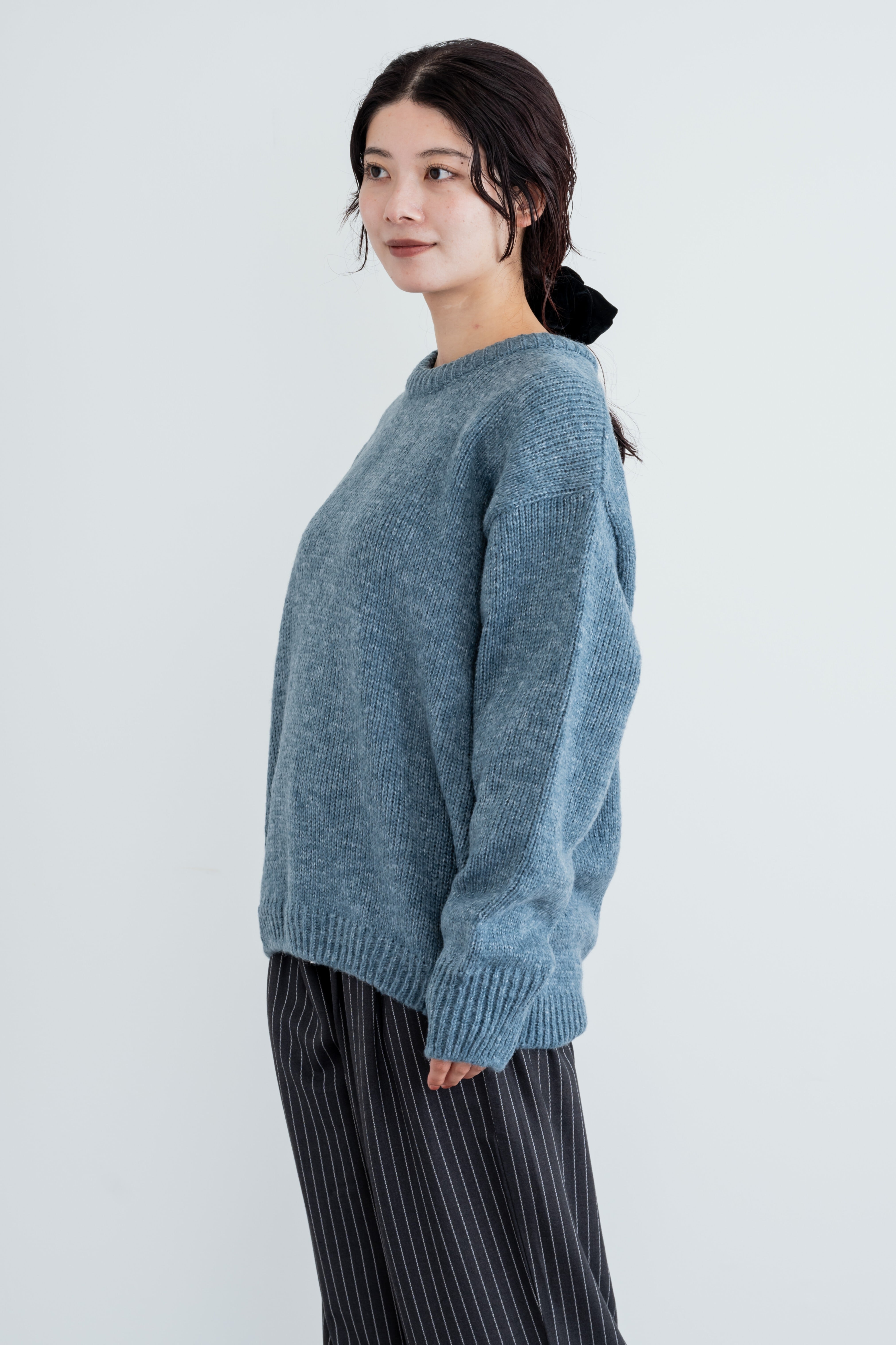 メンズライクな雰囲気ニットプルオーバー。ミックス感のあるニット生地。シンプルですが、形が綺麗な程よいオーバーサイズで、コーディネートの主役になれる一枚です。