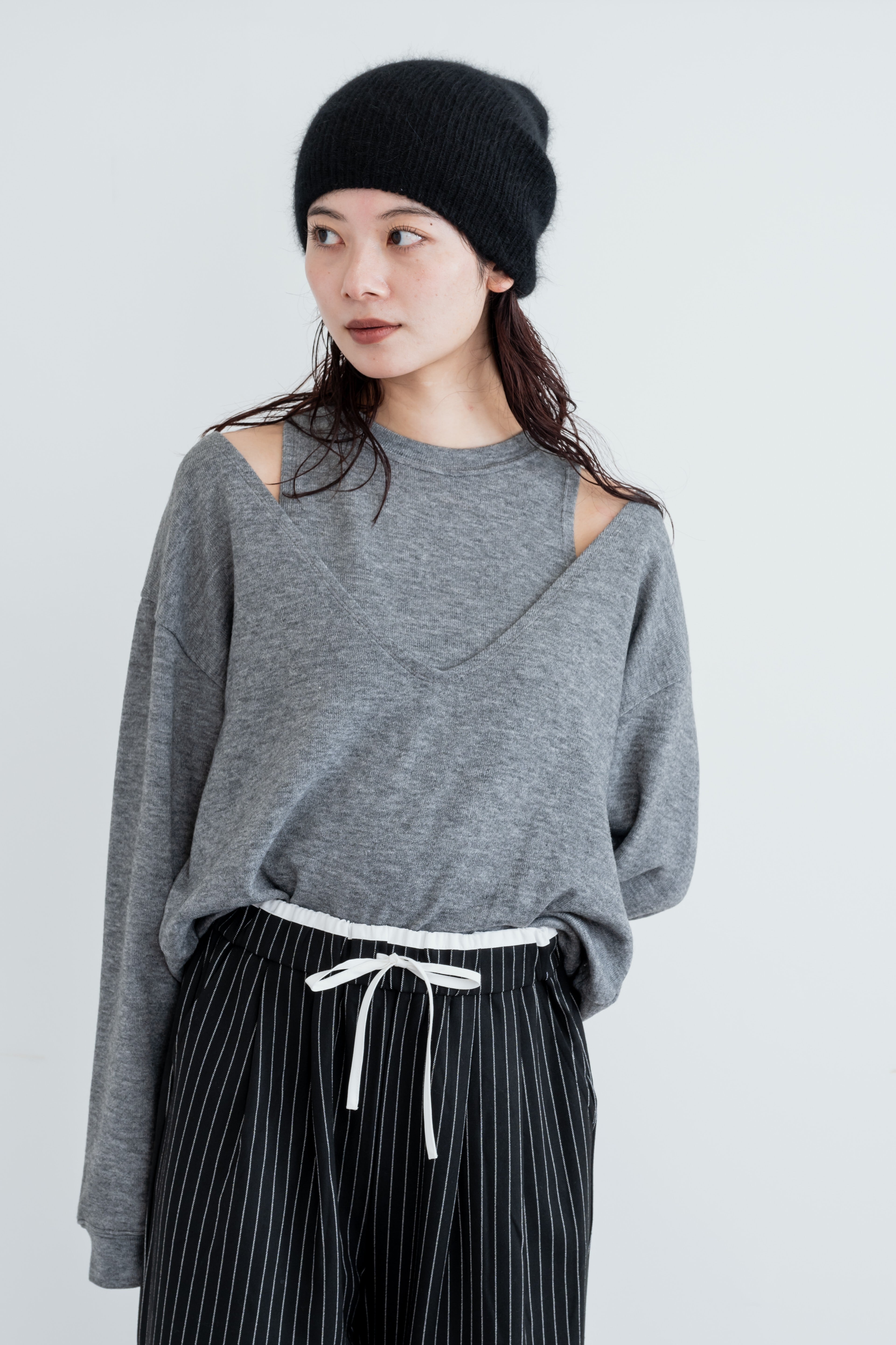 手軽にレイヤードスタイルをお楽しみいただけます。着用すると、肩がちらりと覗き、ヘルシーな肌見せが叶います。