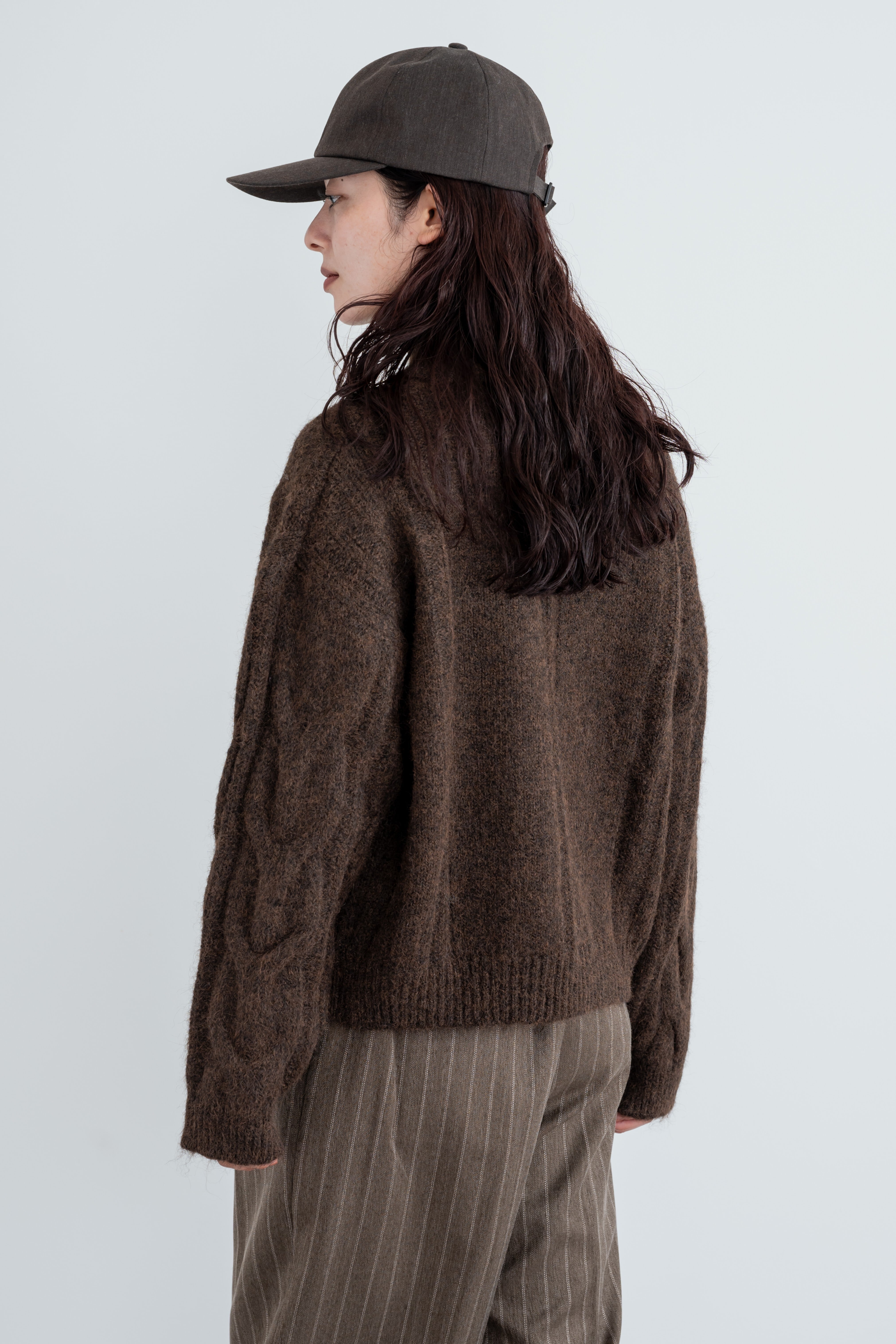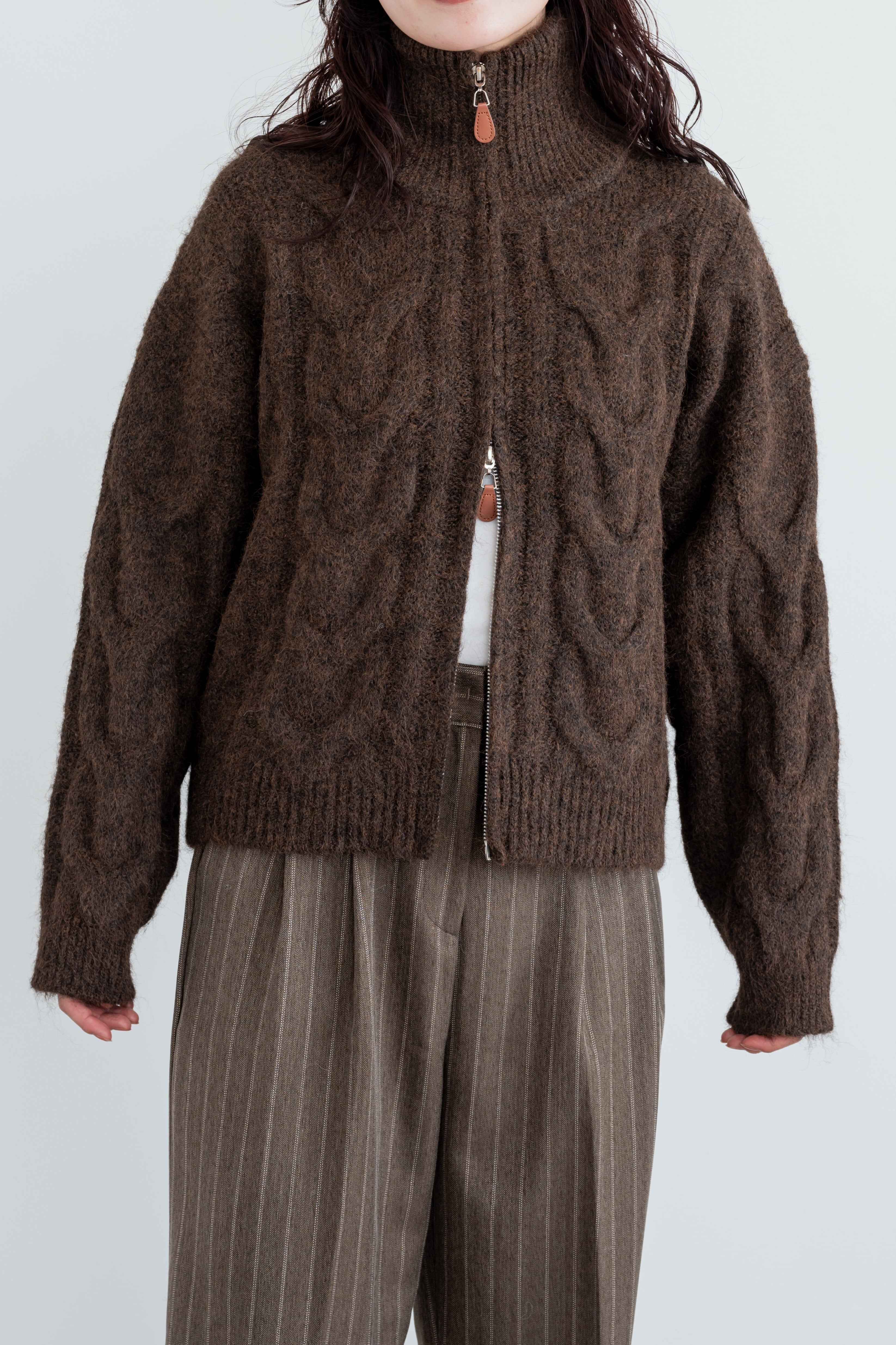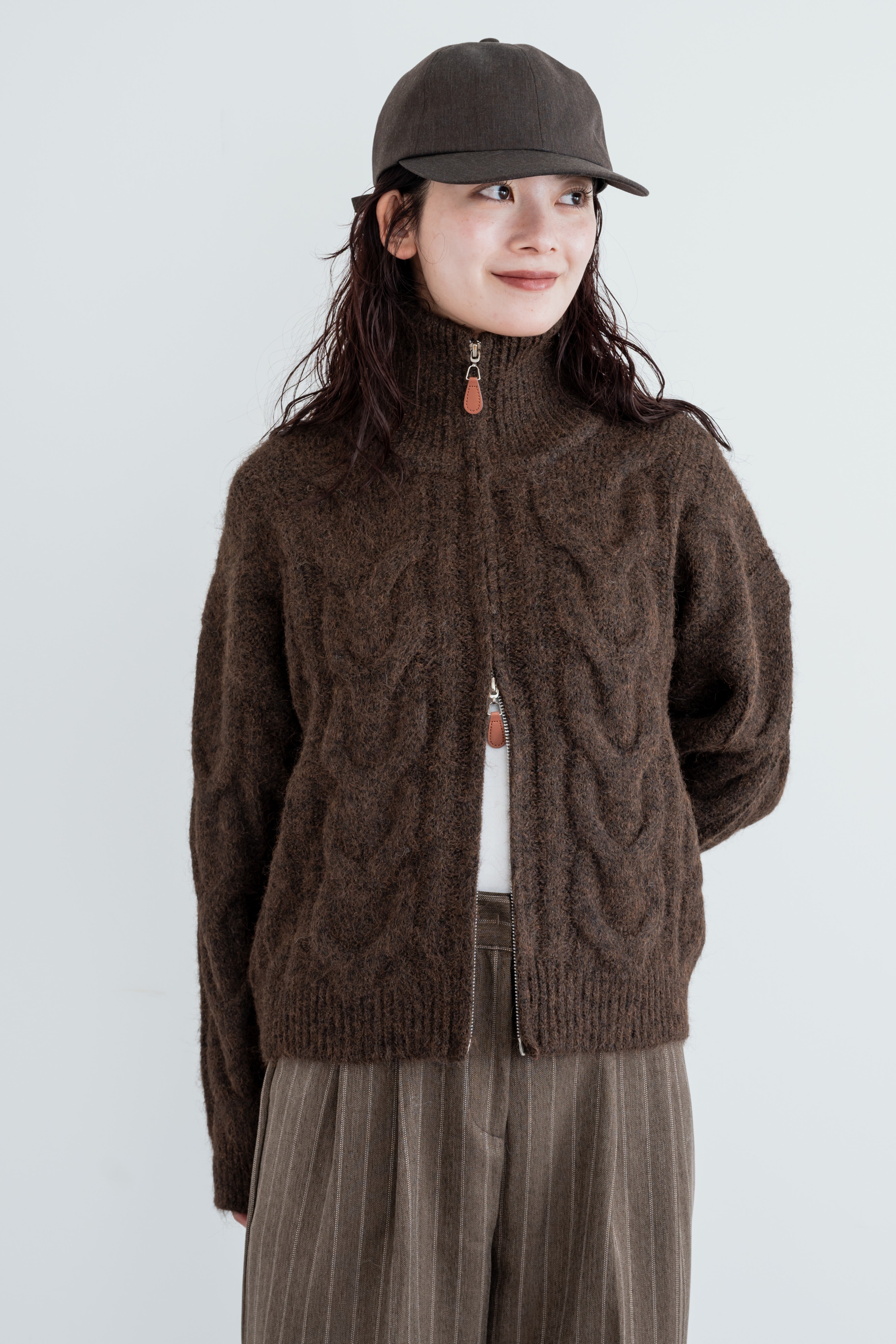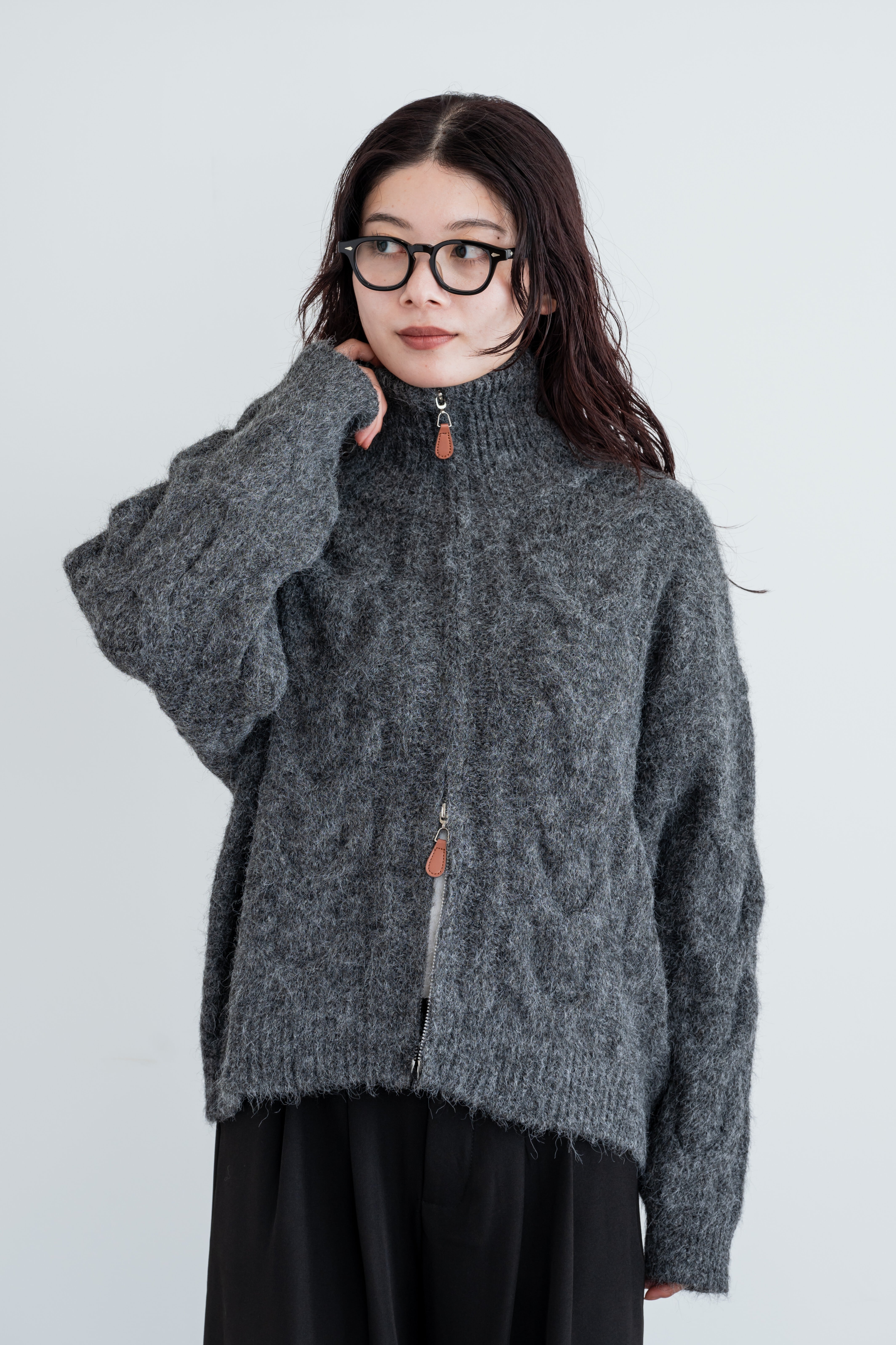 ゆったりとしたシルエットのケーブルニットブルゾン。