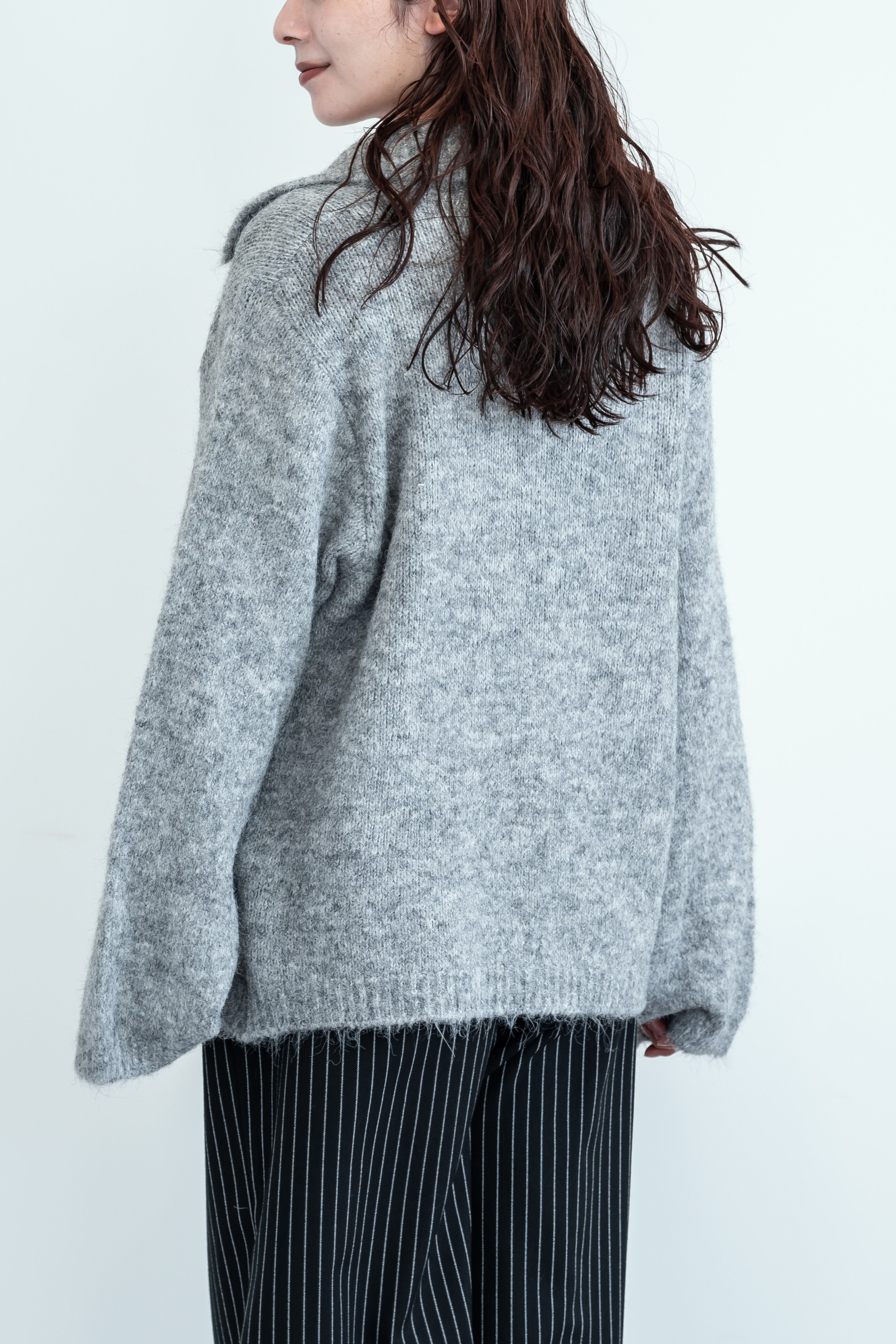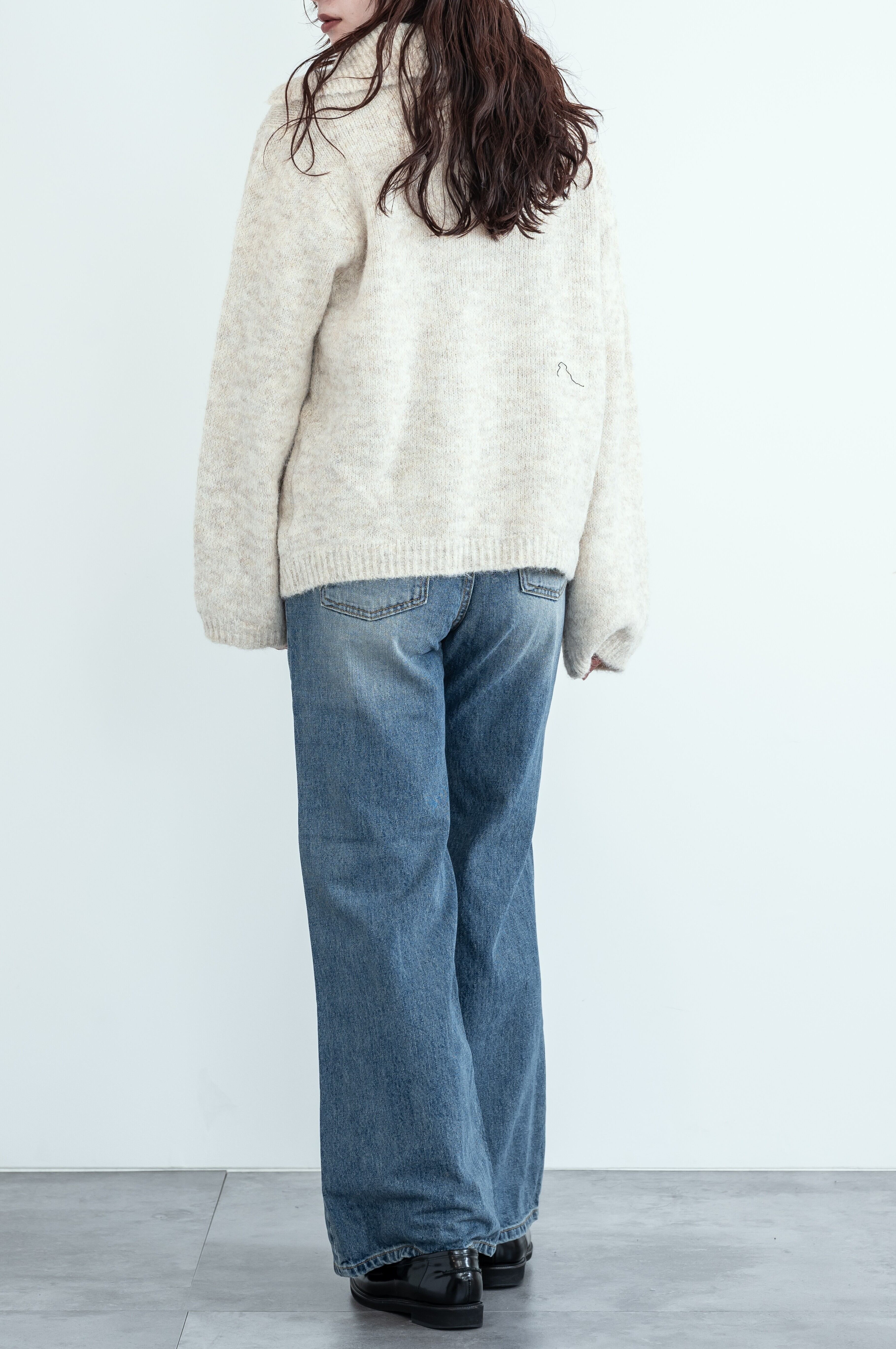 ざっくりとしたシルエットが特徴ですが、丈がそこまで長くないのでボトムスの邪魔にならないシルエット。