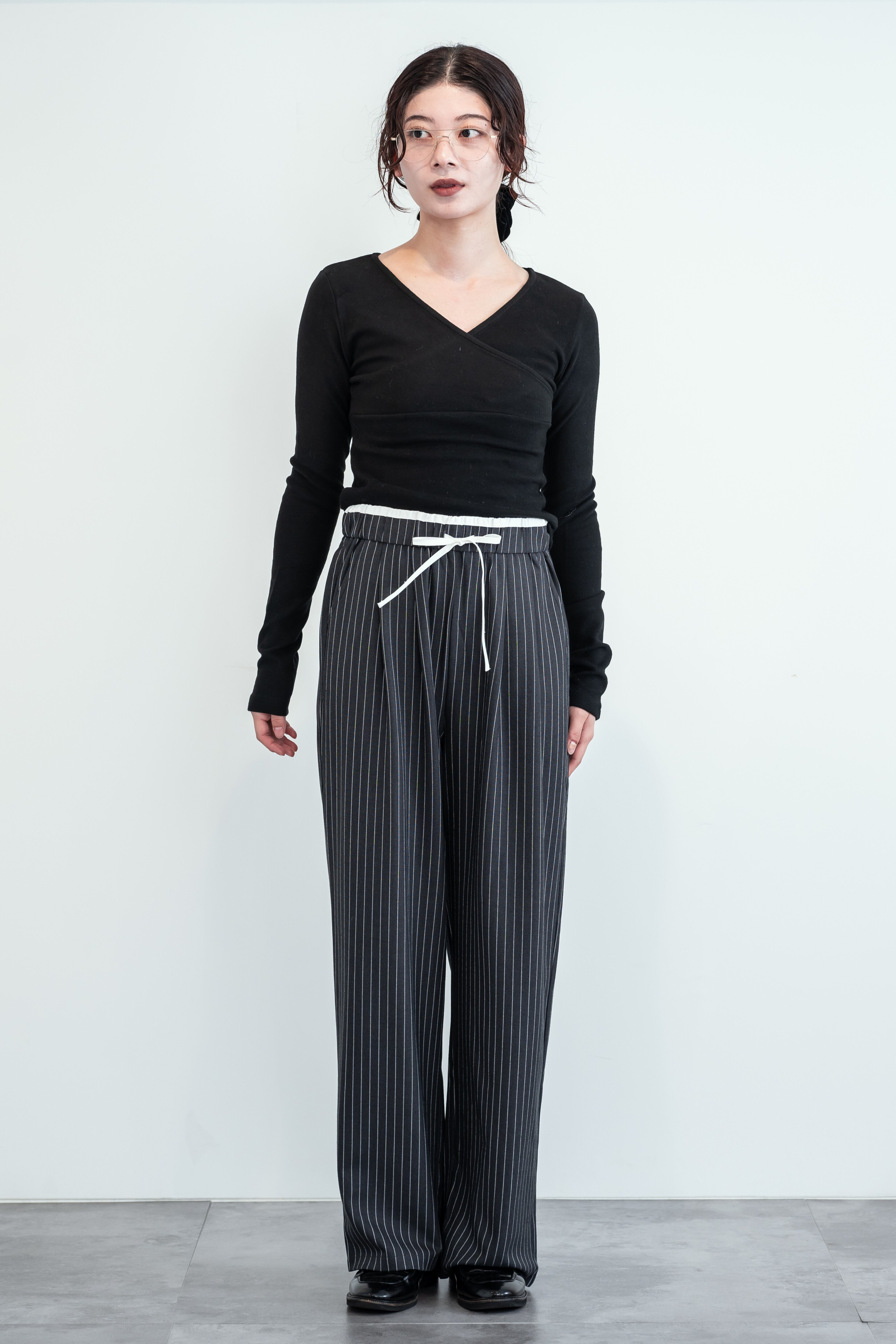 カシュクールデザインのカットソー。デコルテがすっきり綺麗に見えます。