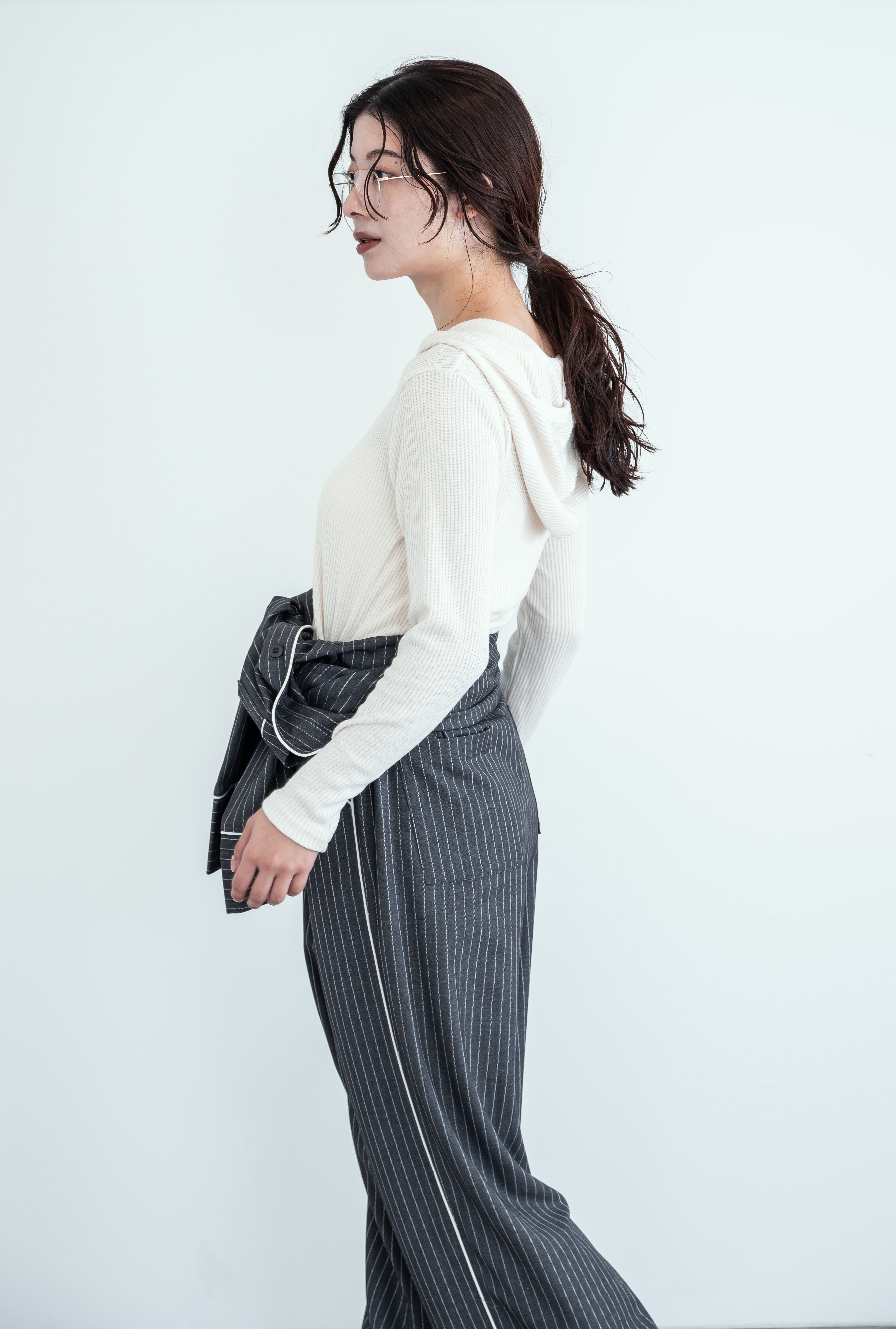 身体のラインを拾いすぎないサイズ感で、一枚で着用しても、ジャケットなどのインナーとして着用しても◎