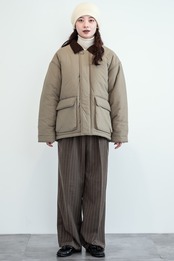 襟配色の中綿ブルゾン。