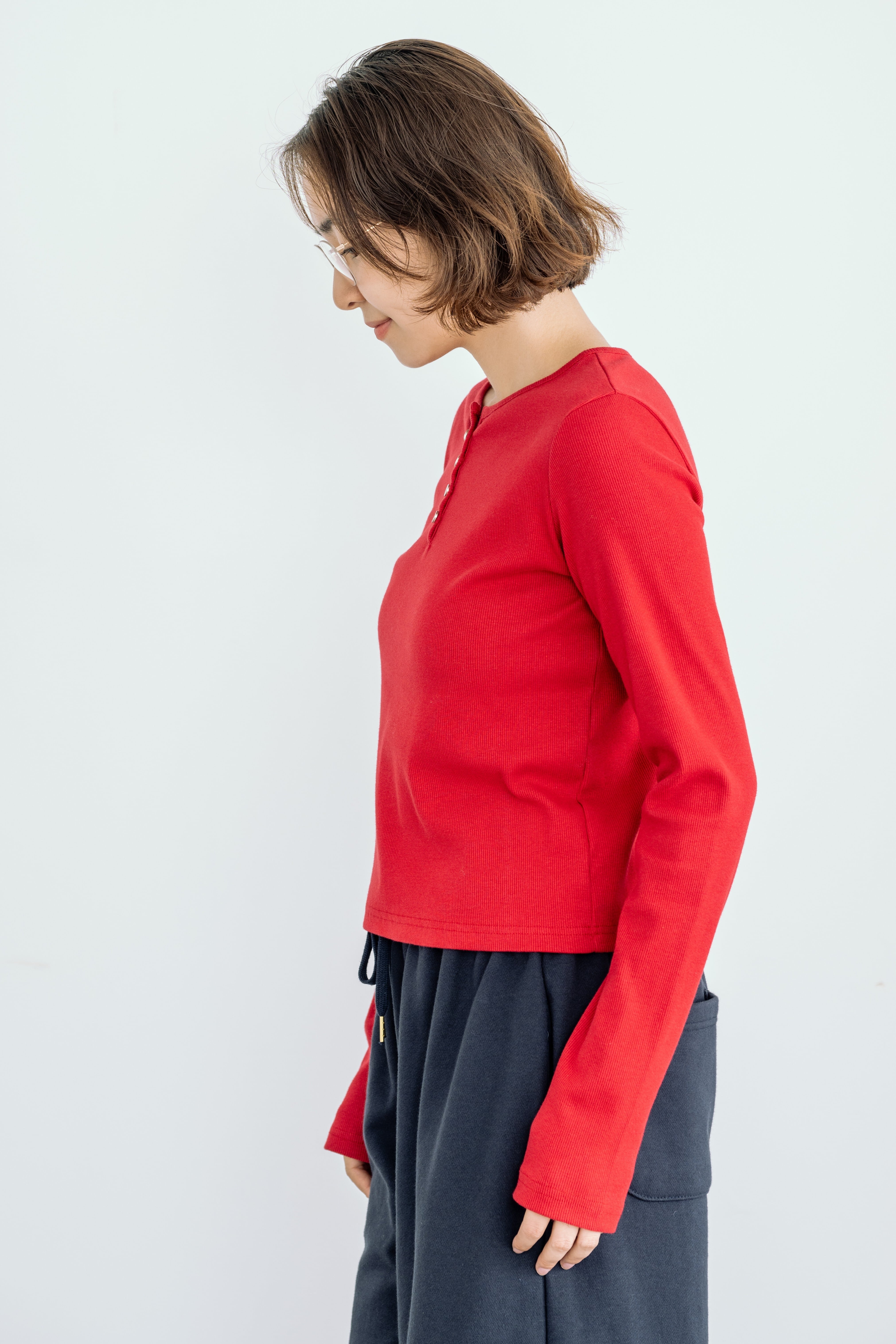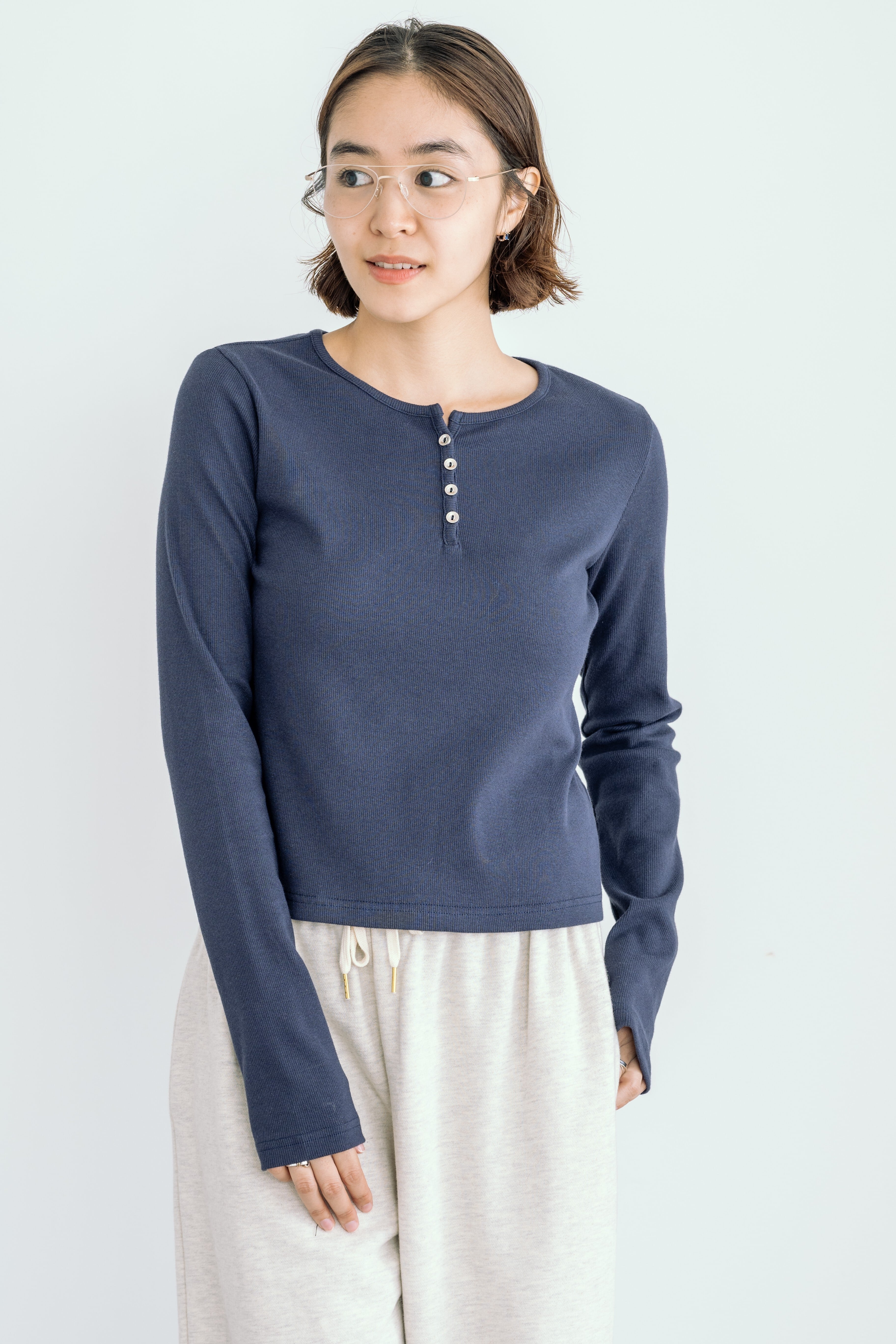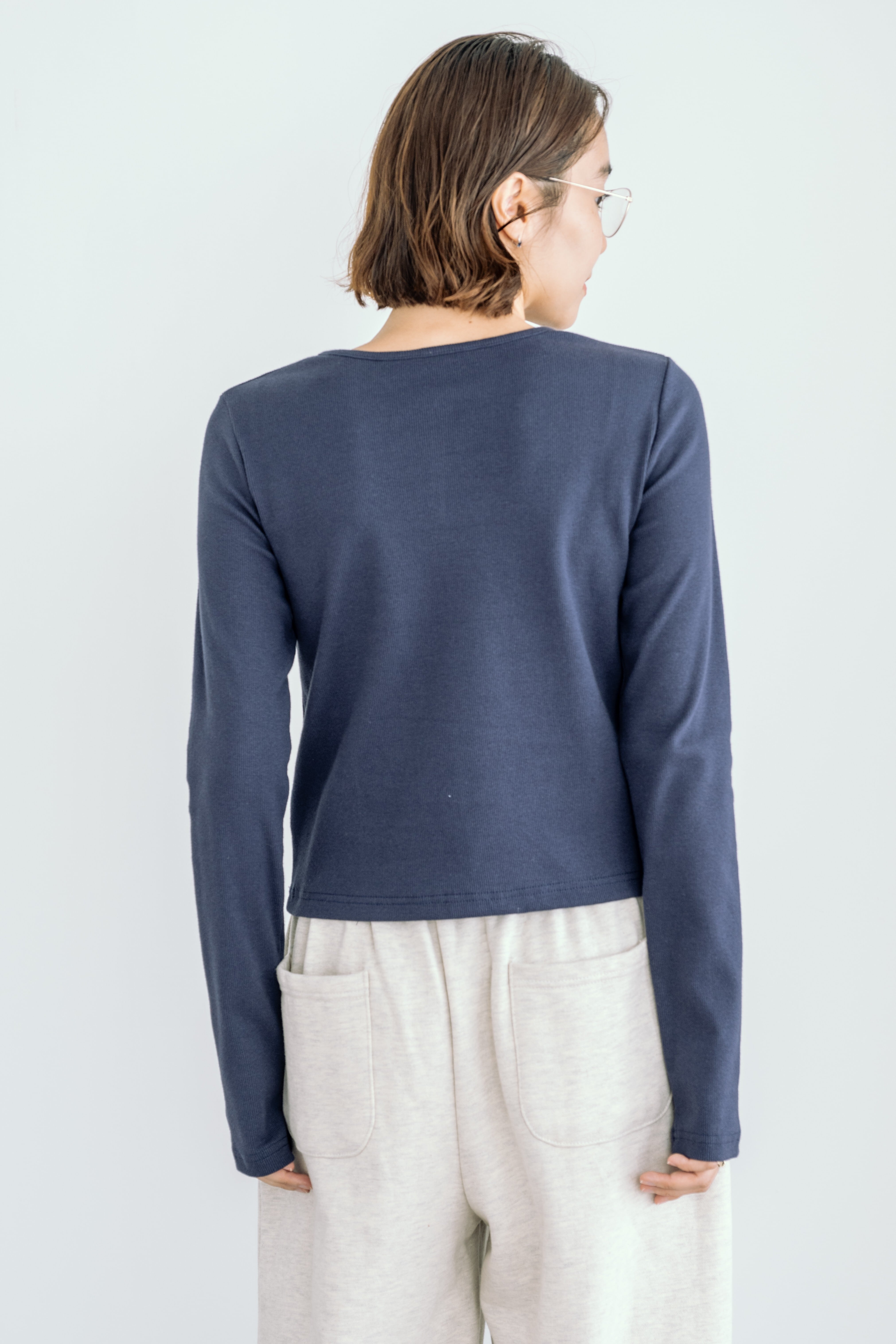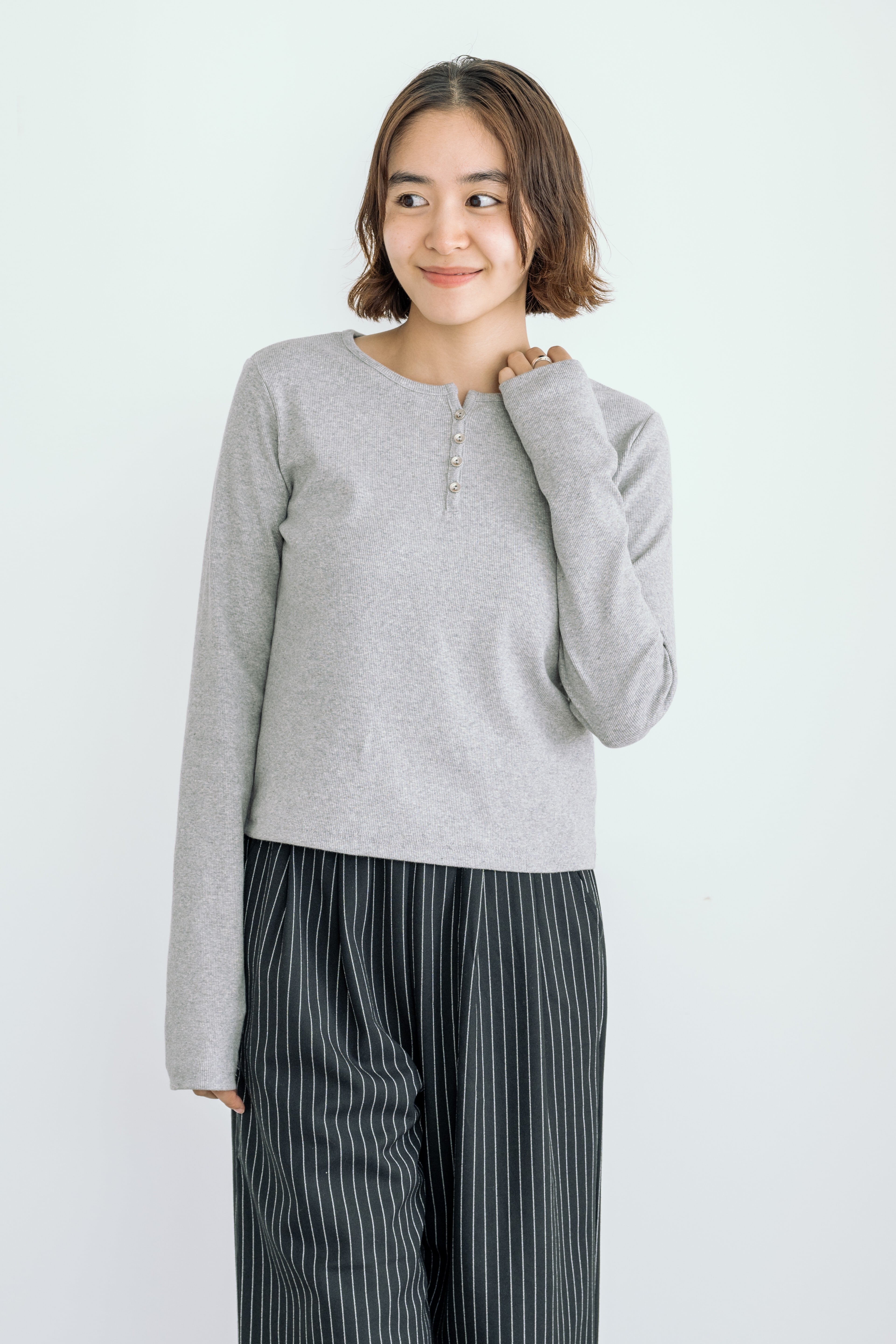そで丈はやや長め。手首からのぞかせてか重ね着スタイルを楽しめます。