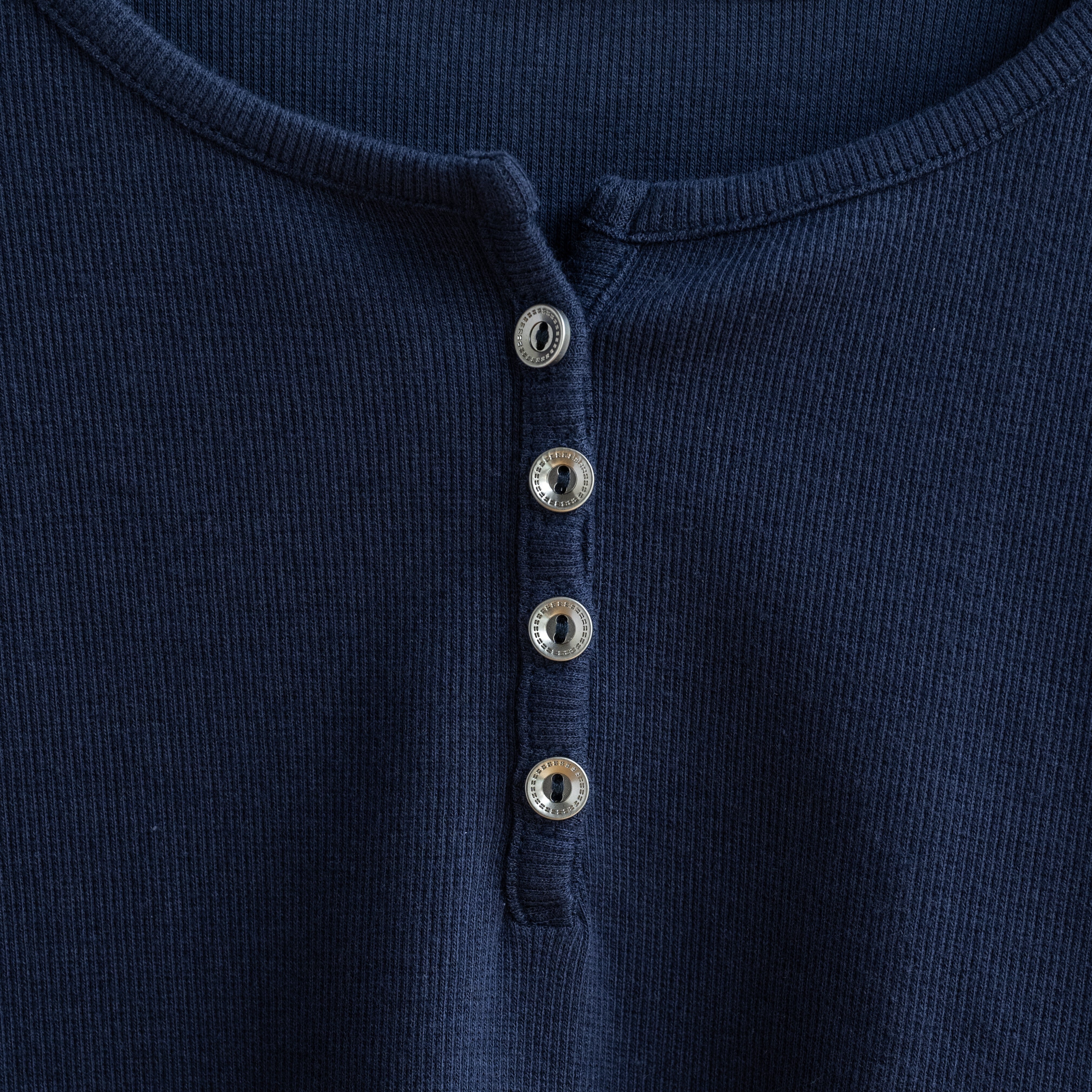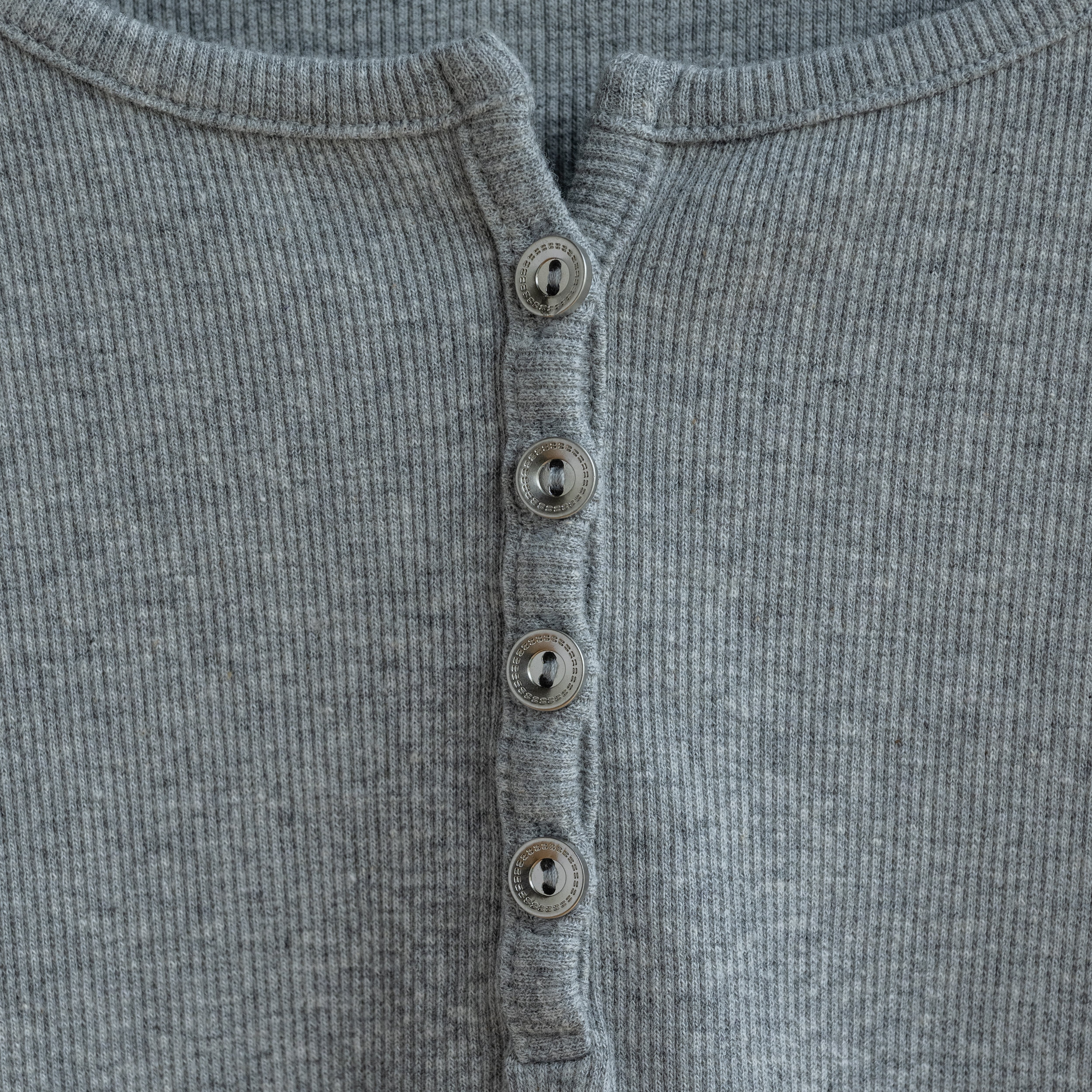 首周りに並んだ小さなシルバーボタンがアクセントに。
