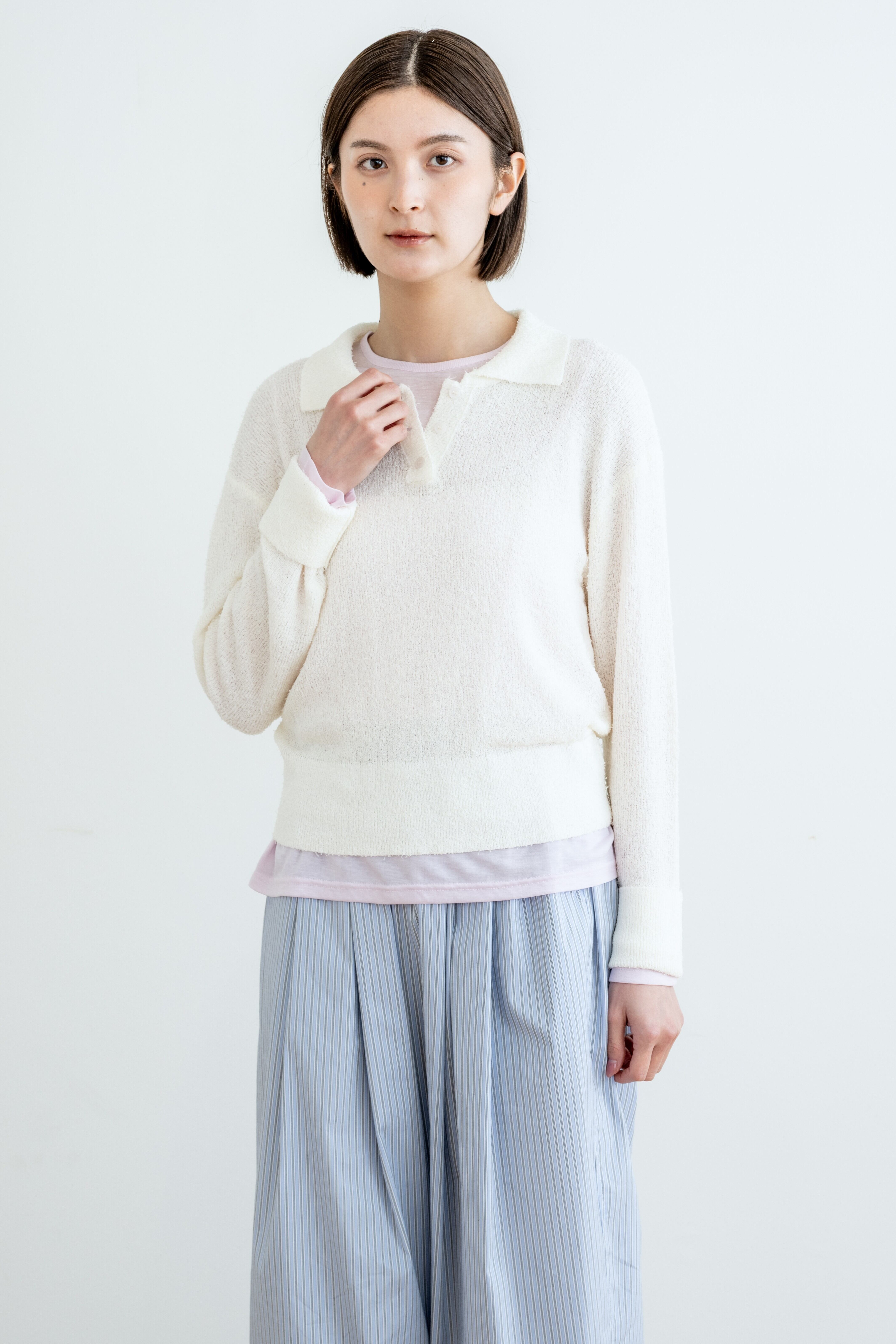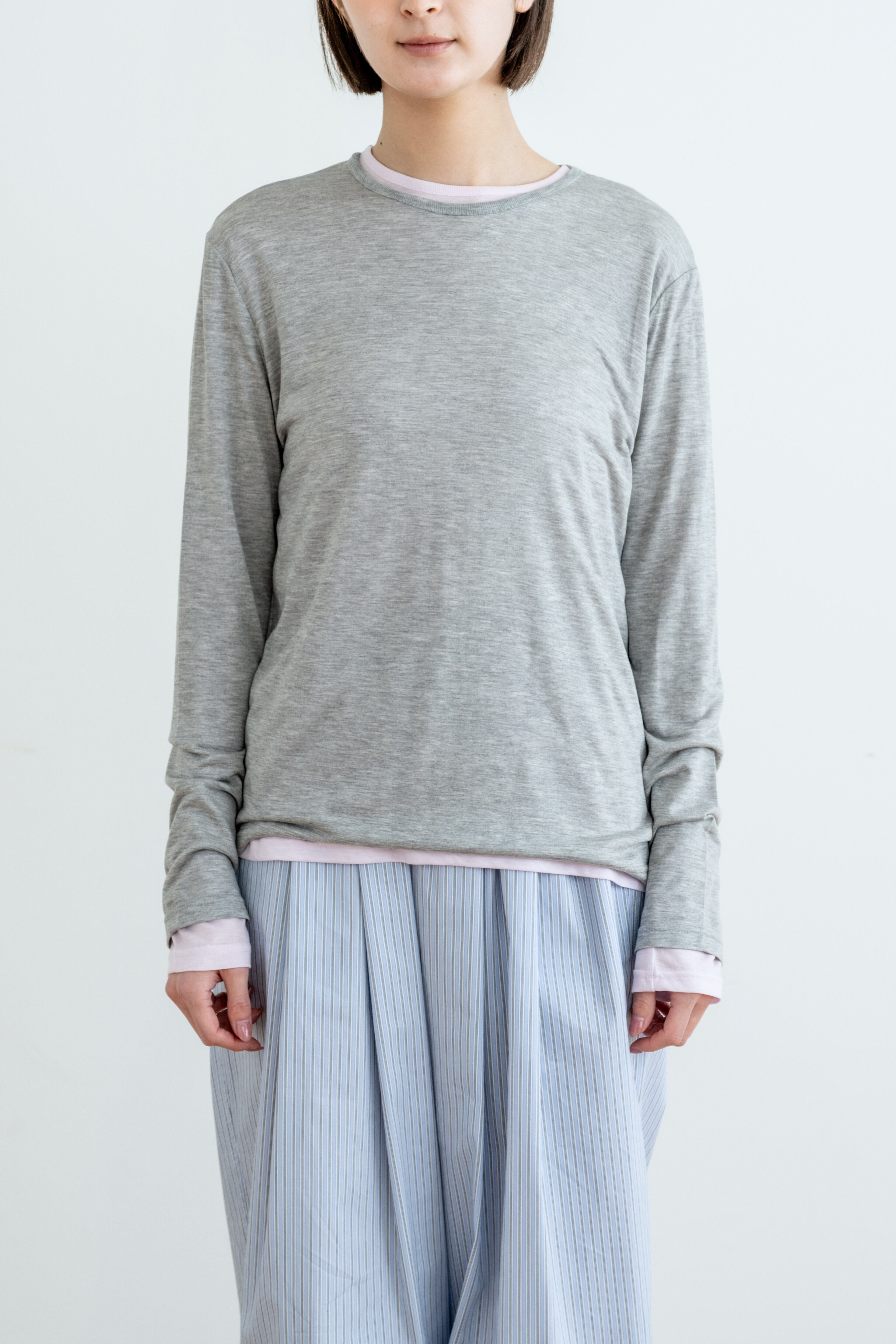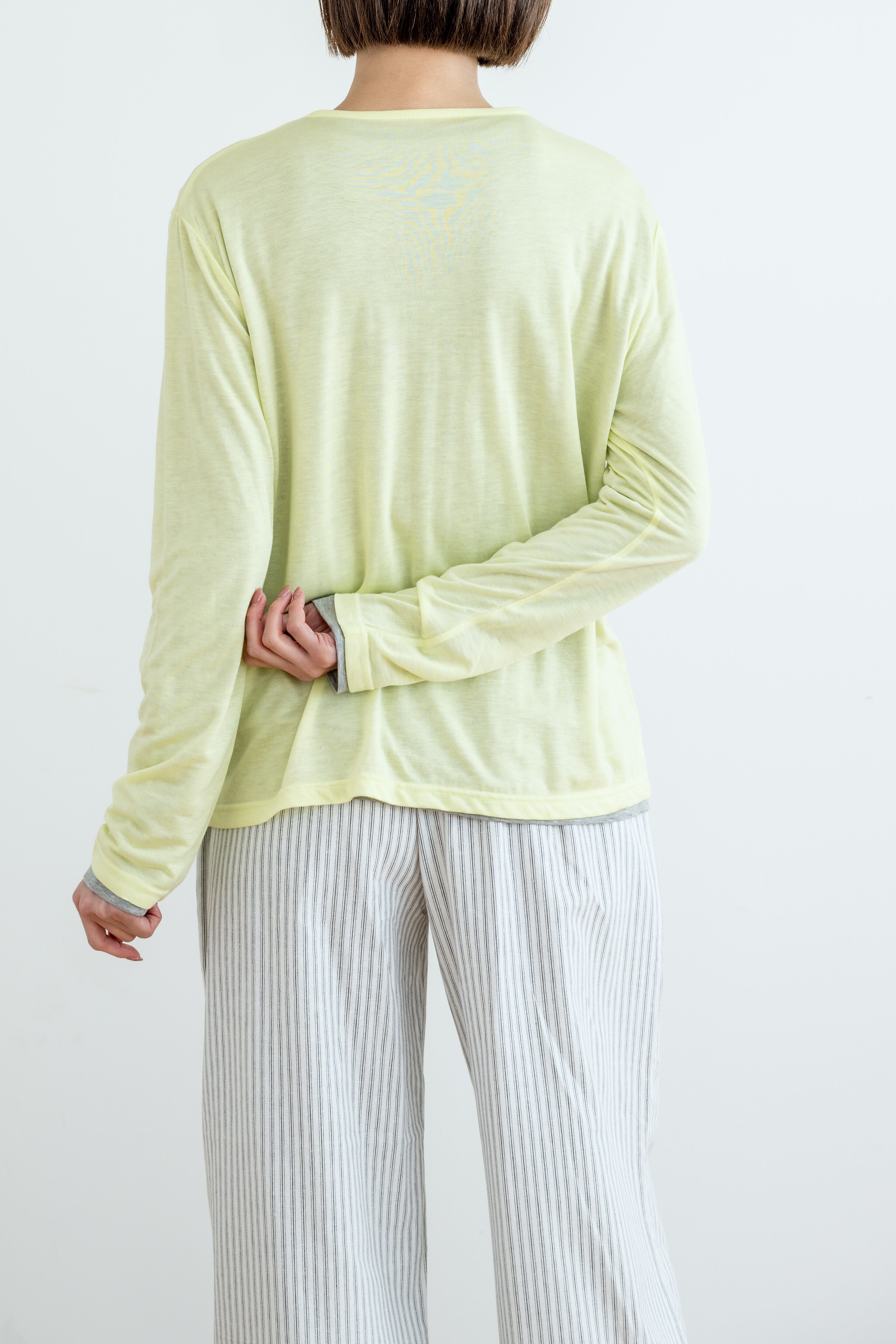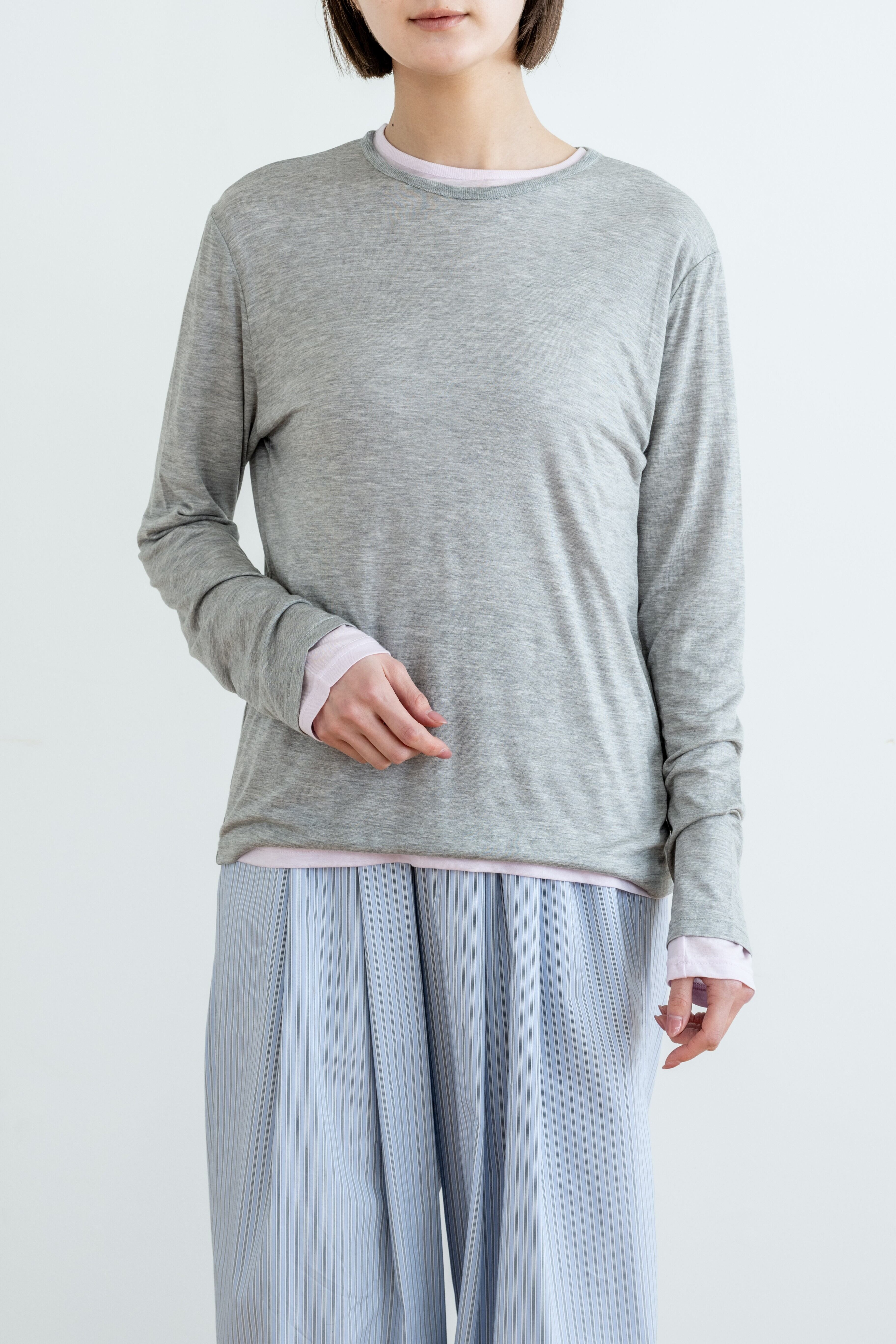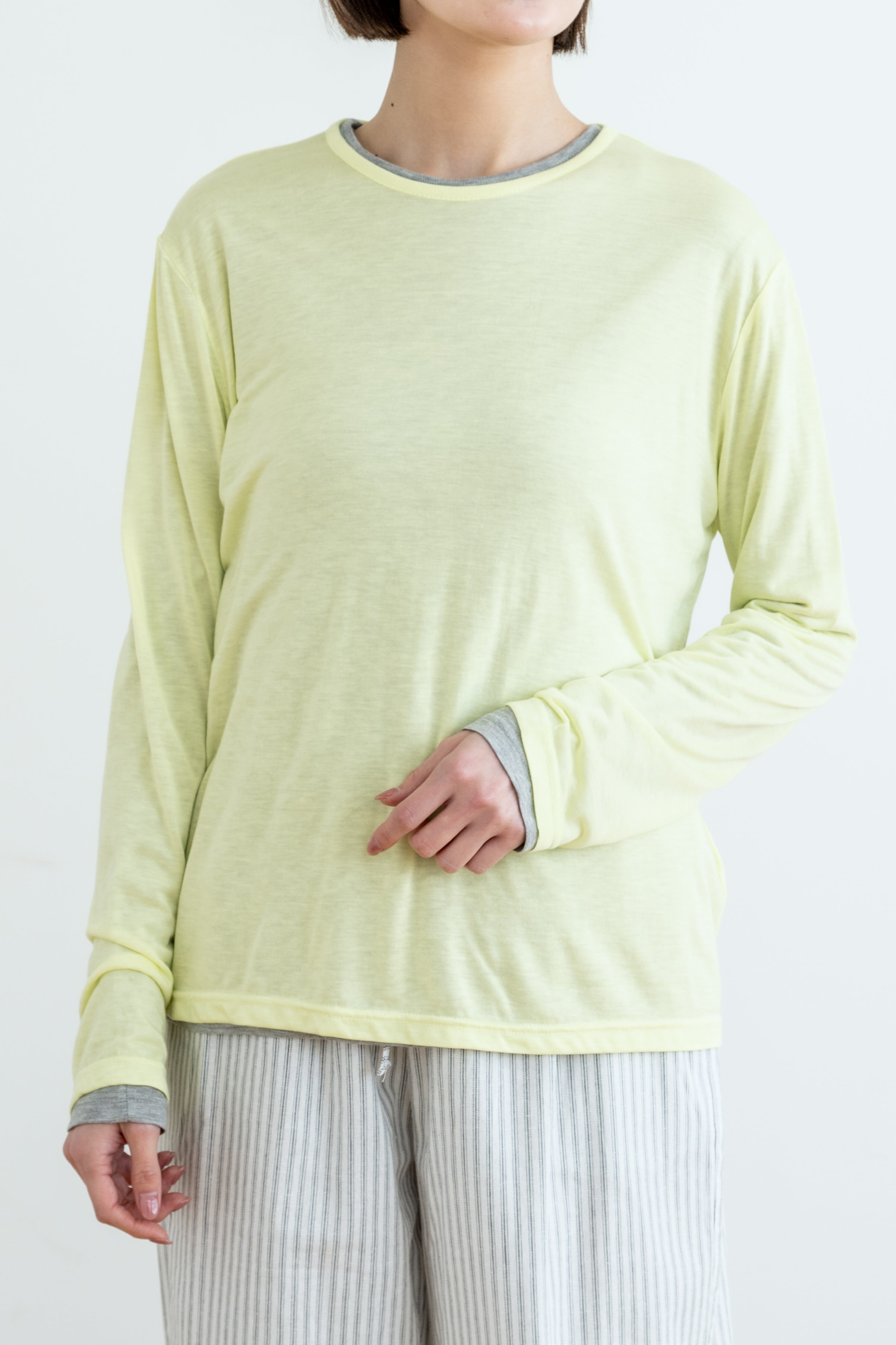 一枚ではもちろん、色違いを重ねたレイヤードスタイルもおすすめ。