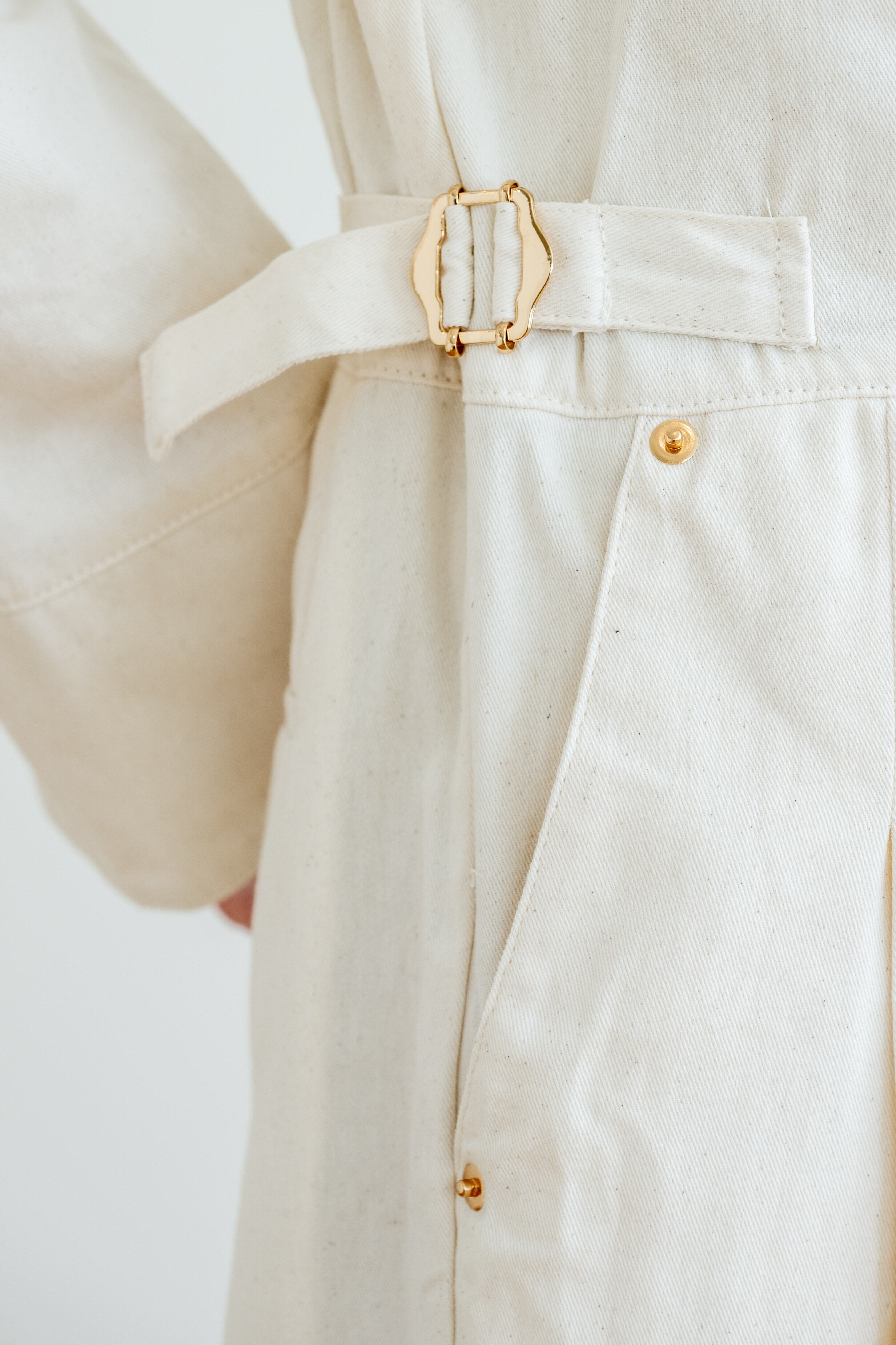 ・両サイドのベルトでウエストが絞れるため、丈調節&スタイルアップ