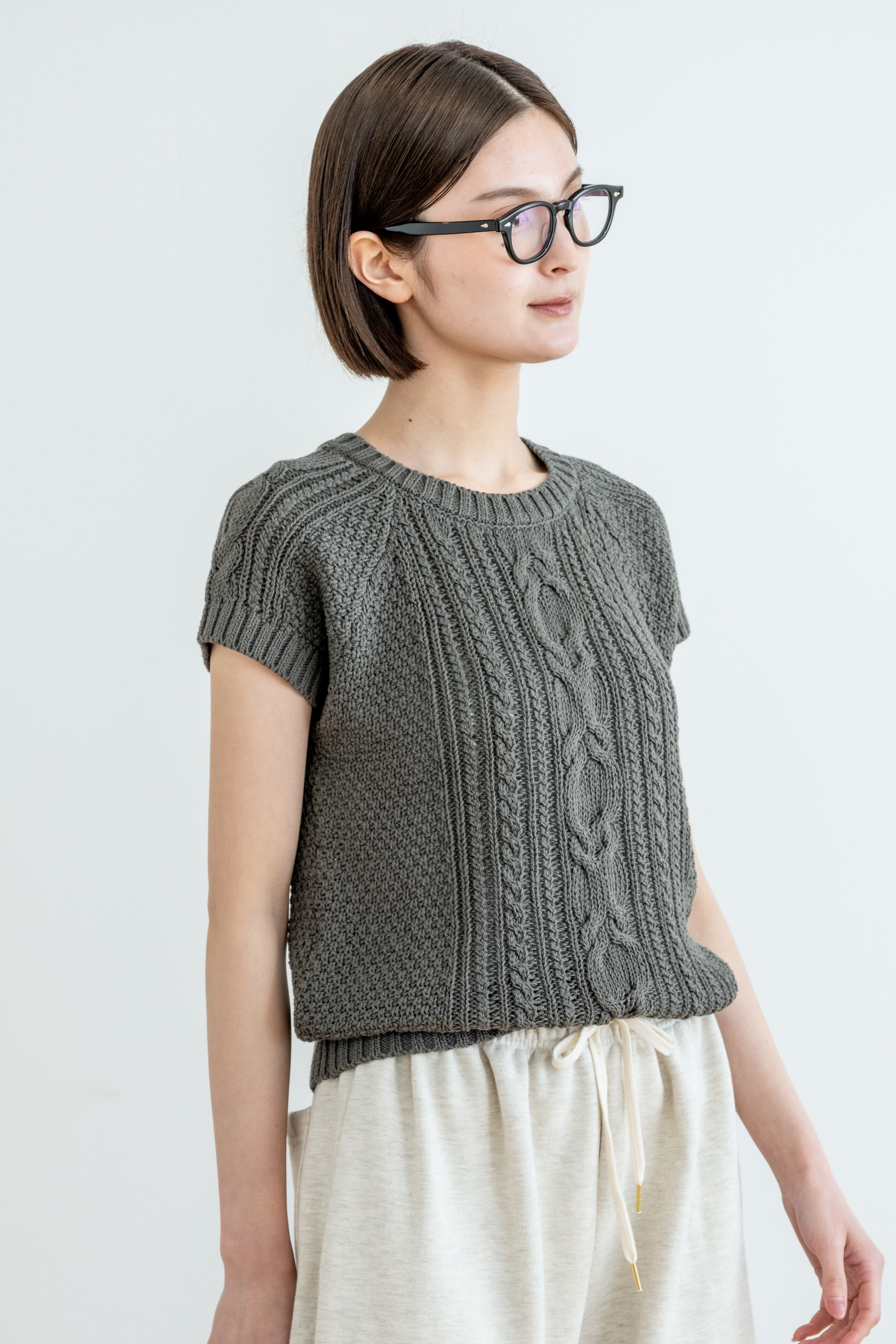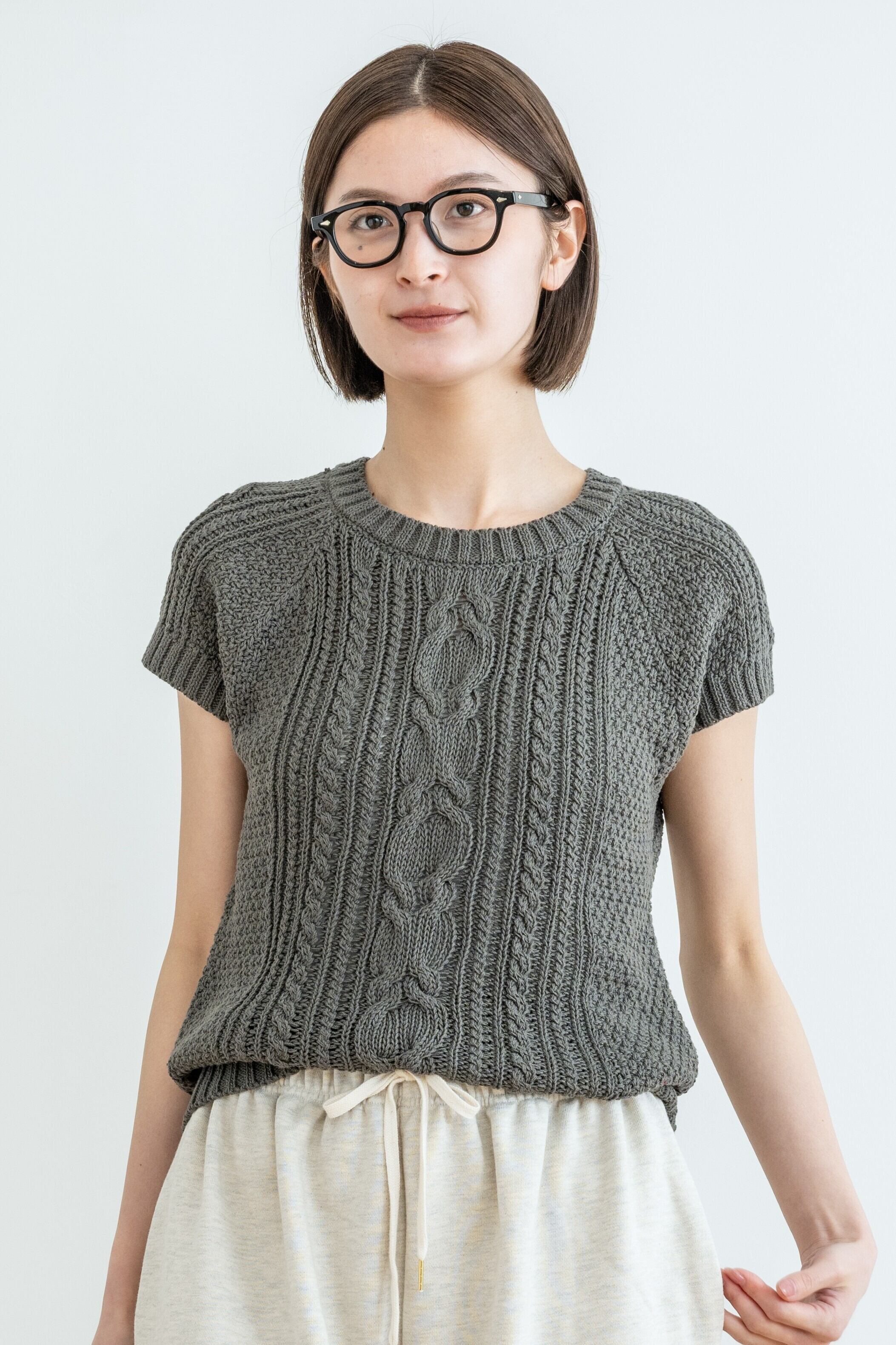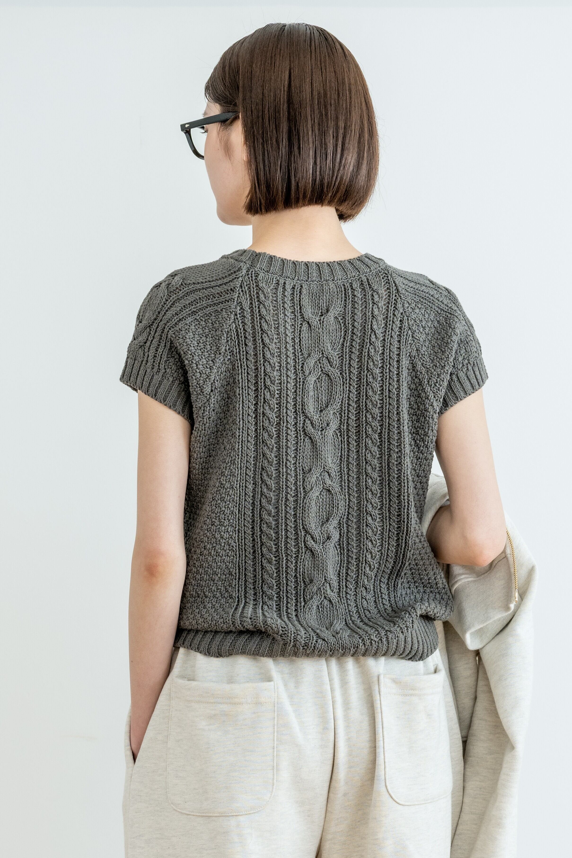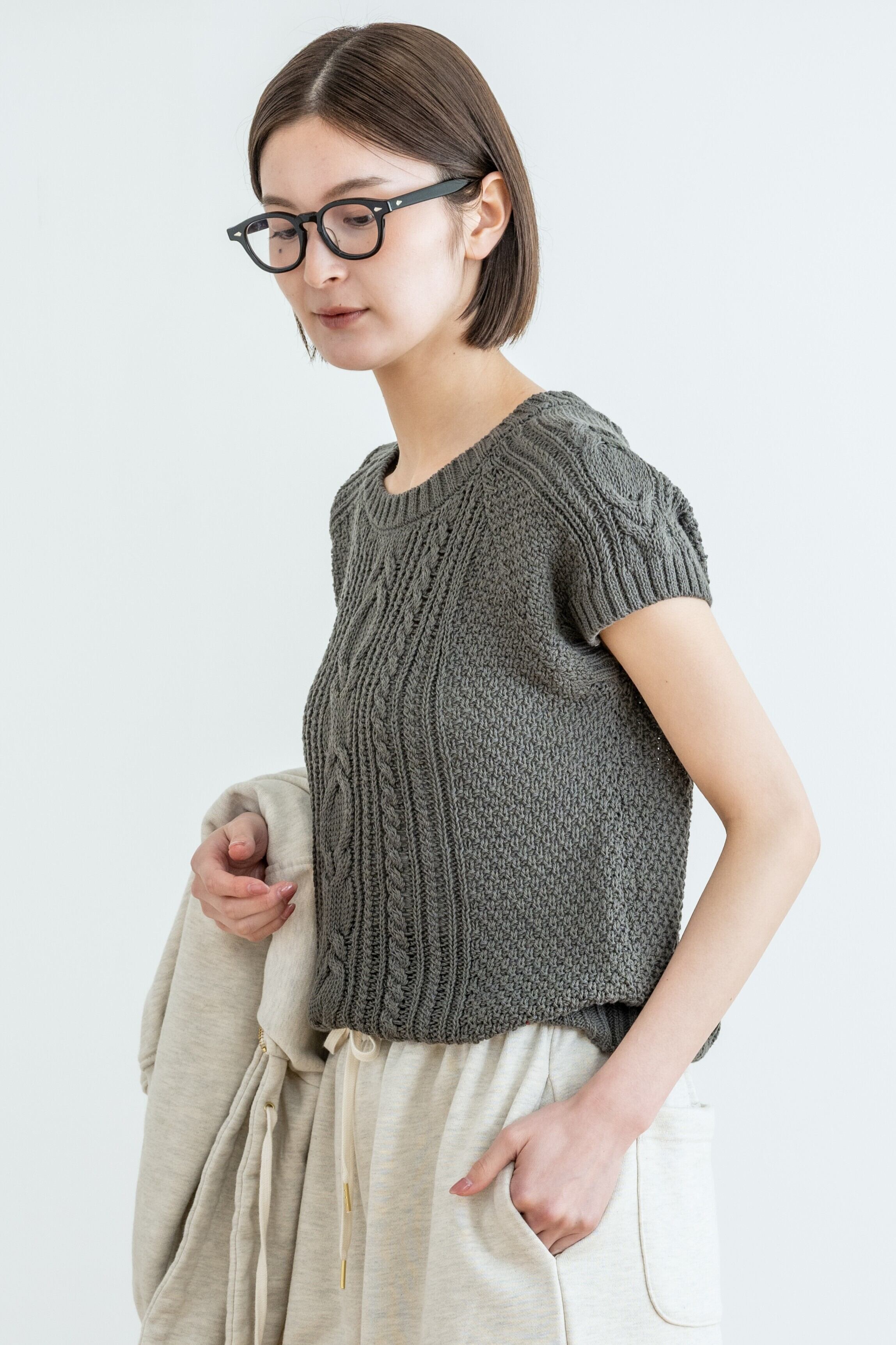 cotton cable short-sleeve knit