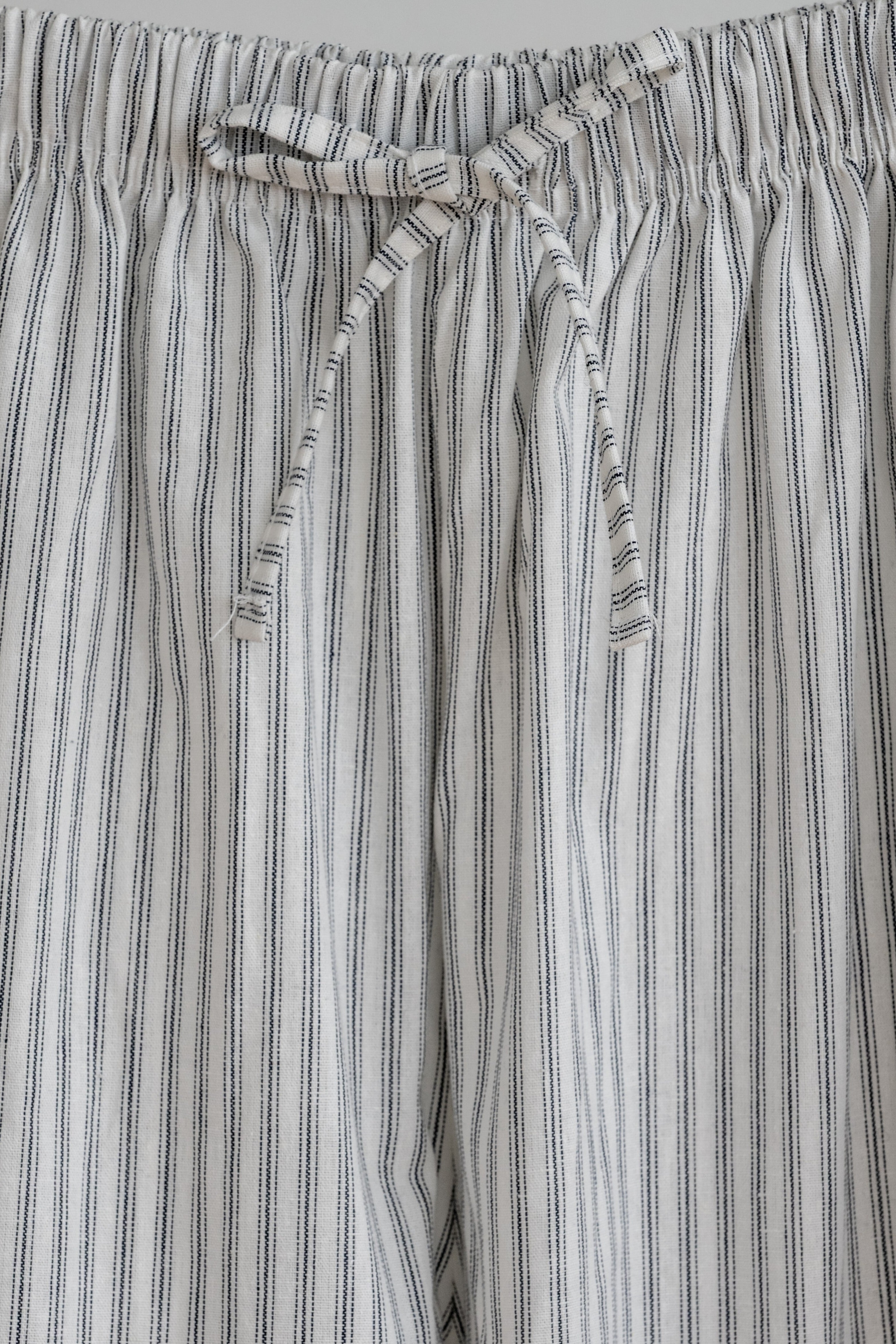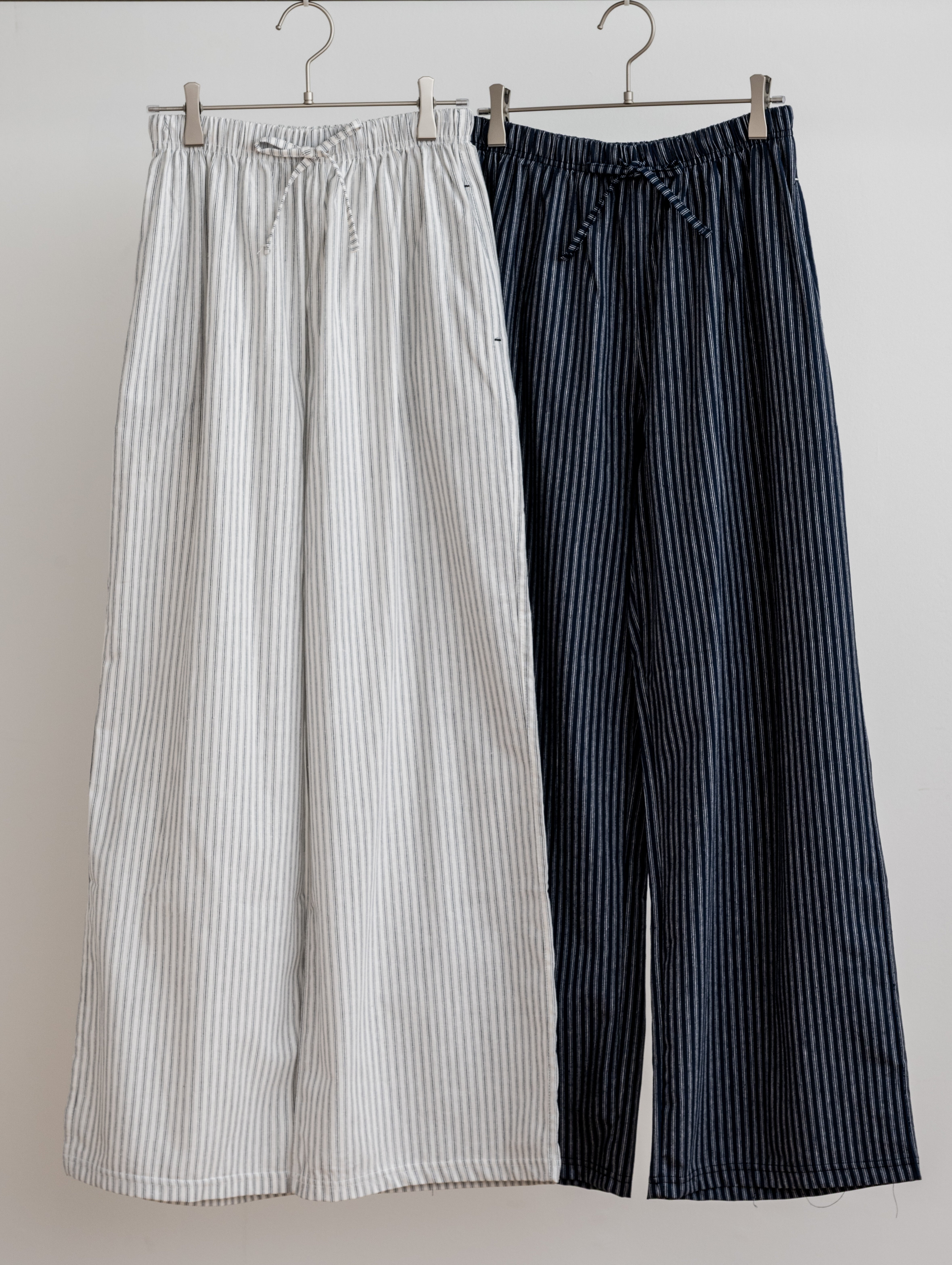 さらりとした肌触りが心地よい、ストライプ柄のイージーパンツ。