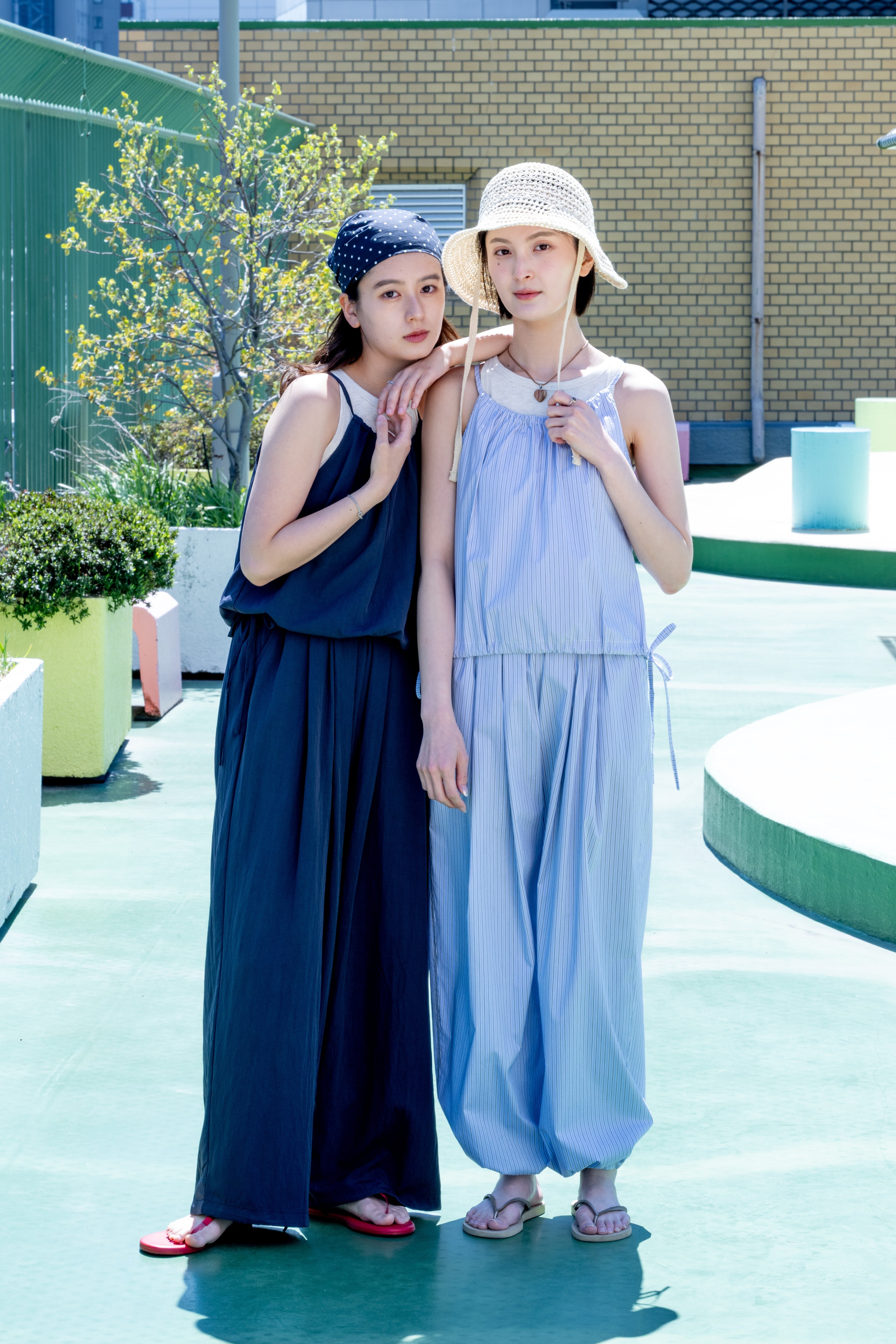 ※ウエスト折り返しと、すそ紐で丈調節可能。