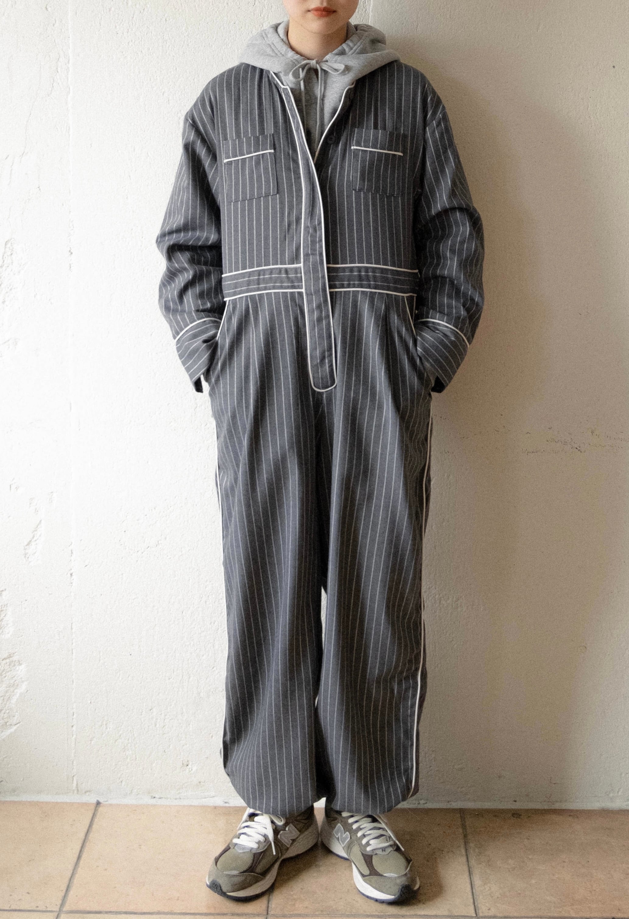お馴染みのパイピングパジャマが、ジャンプスーツに変身。