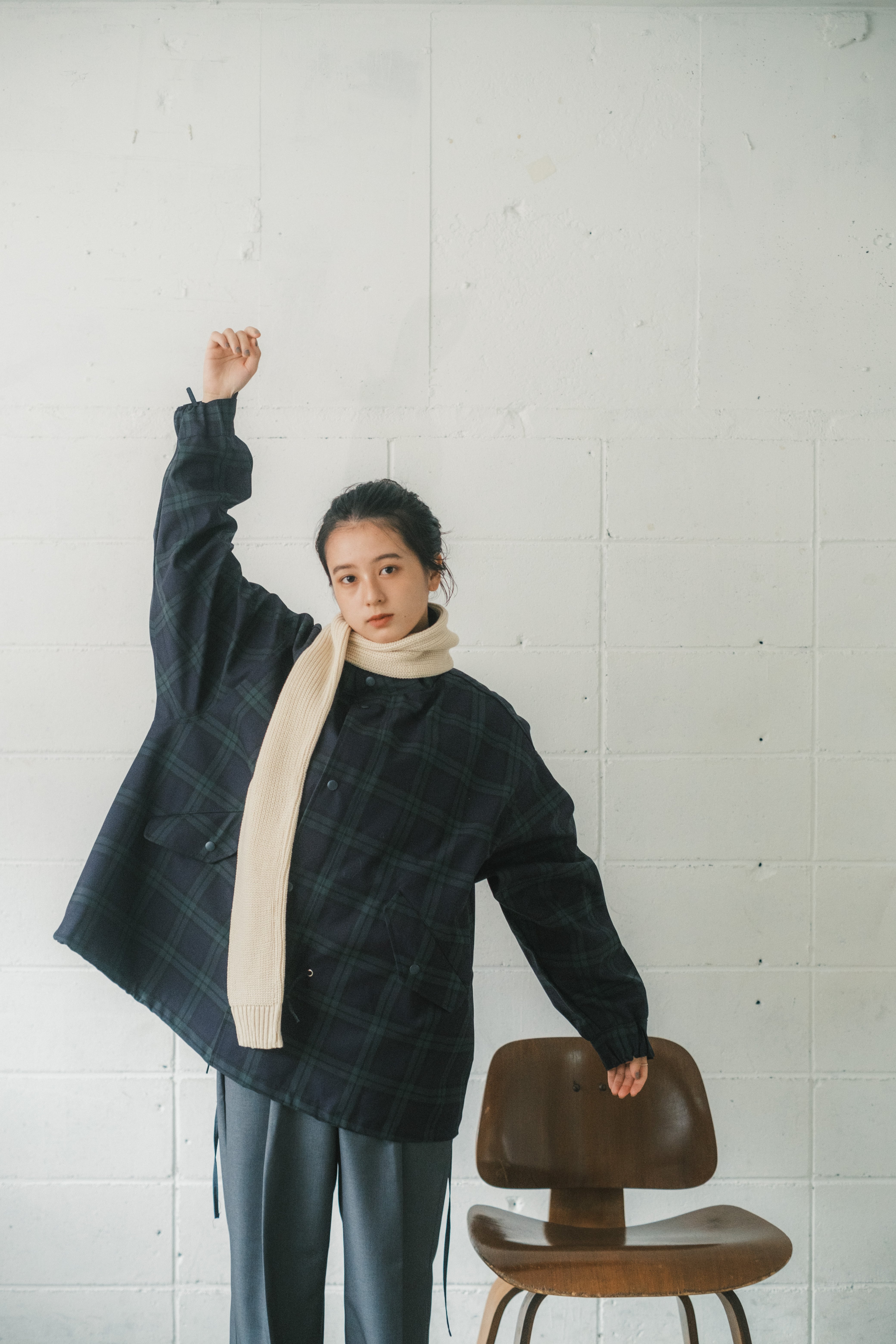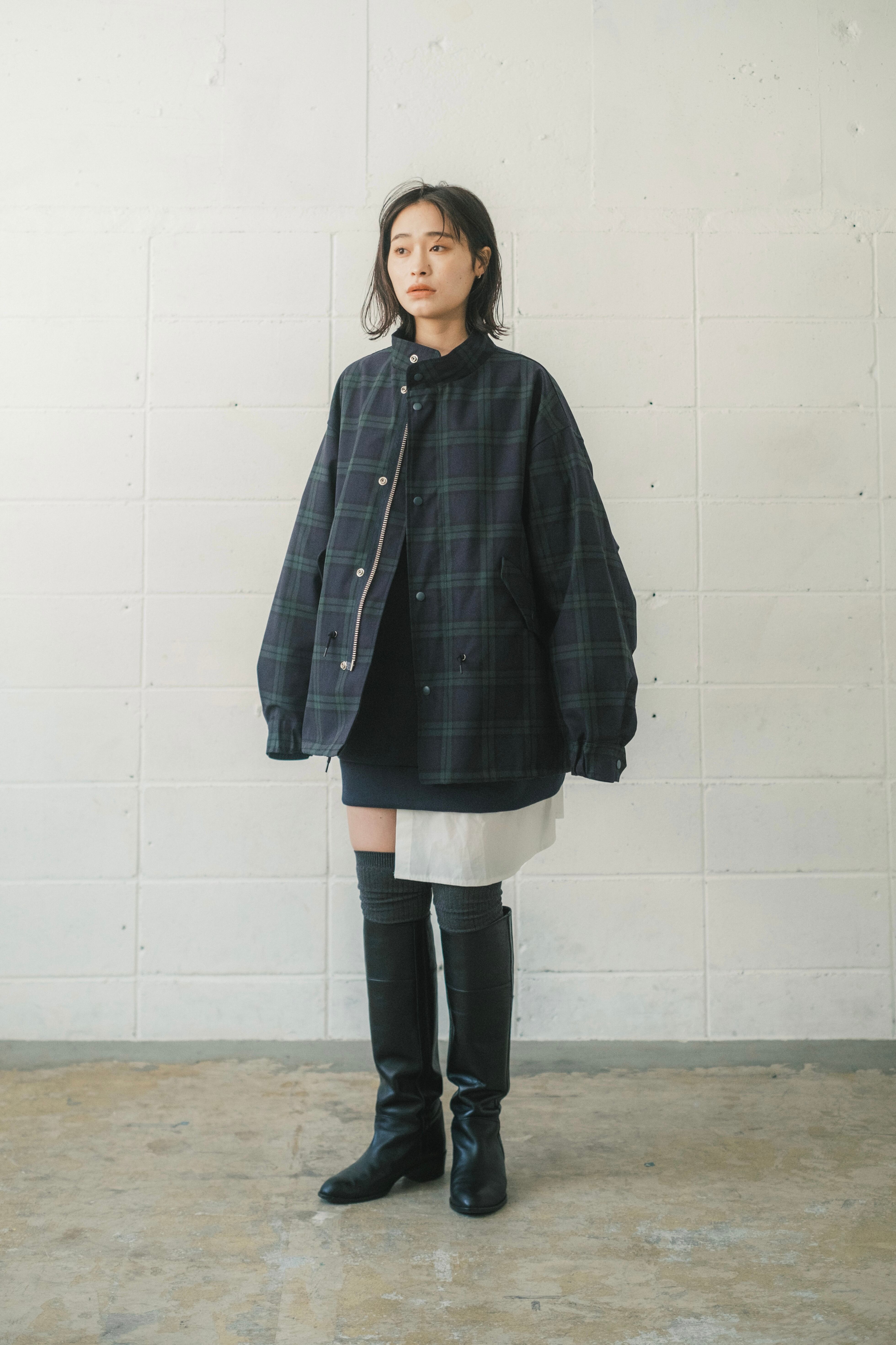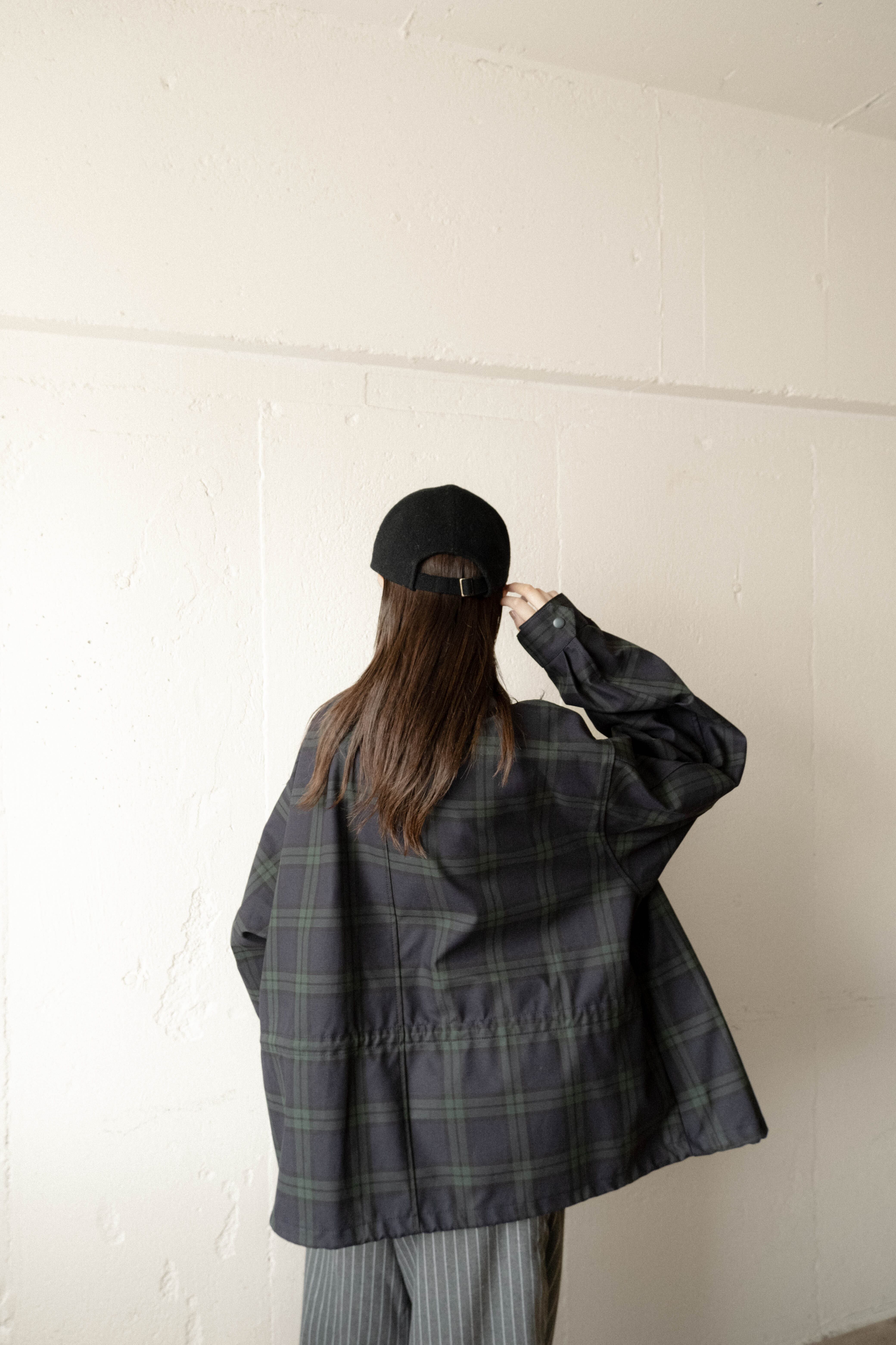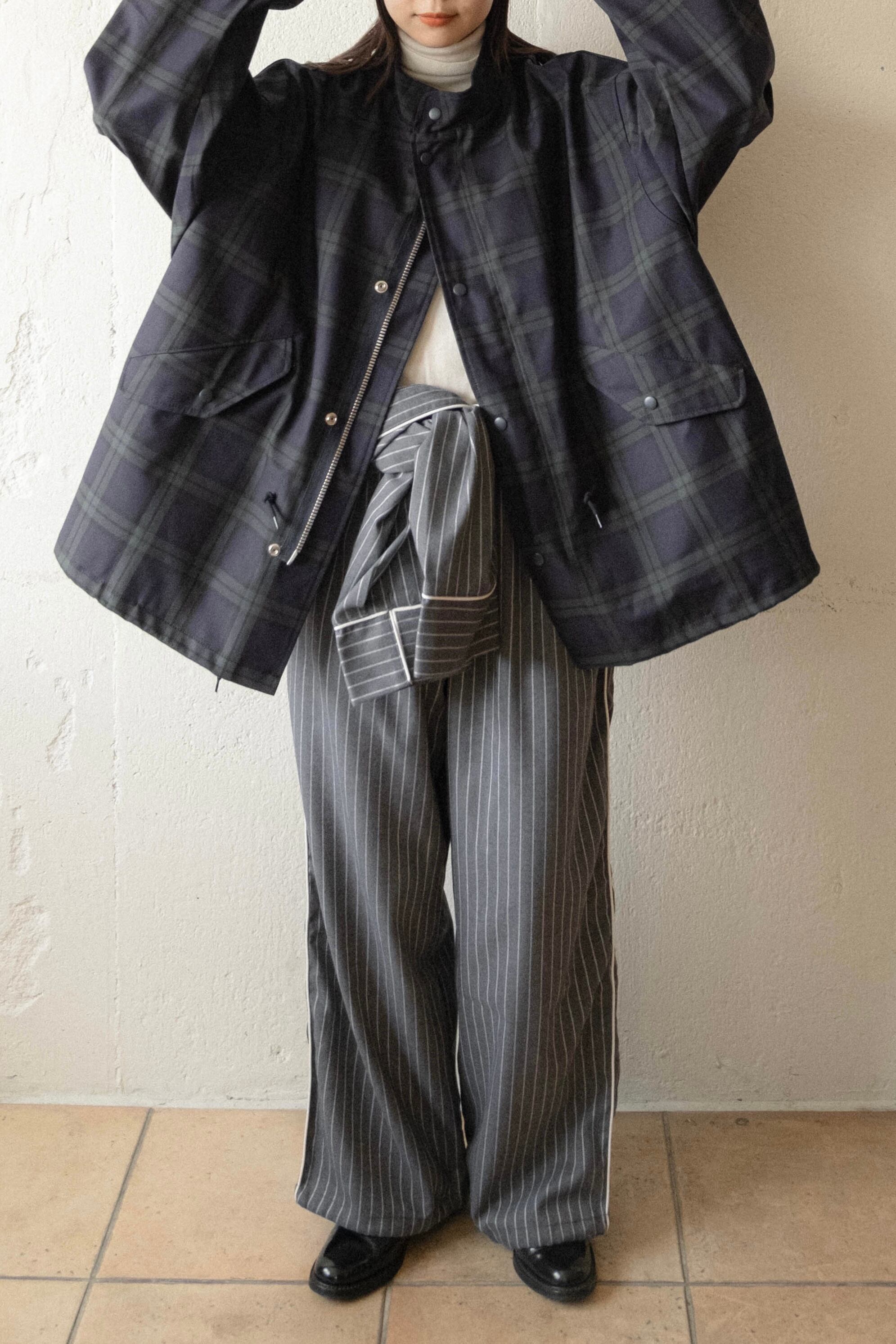 シルバーのジップやスナップボタンもアクセントに。中に着込んでも窮屈にならず、楽に着用可能。合わせやすい上品なタータンチェックで、挑戦しやすい柄物アウター。性別関係なくご着用いただけます。男性にもオススメ。