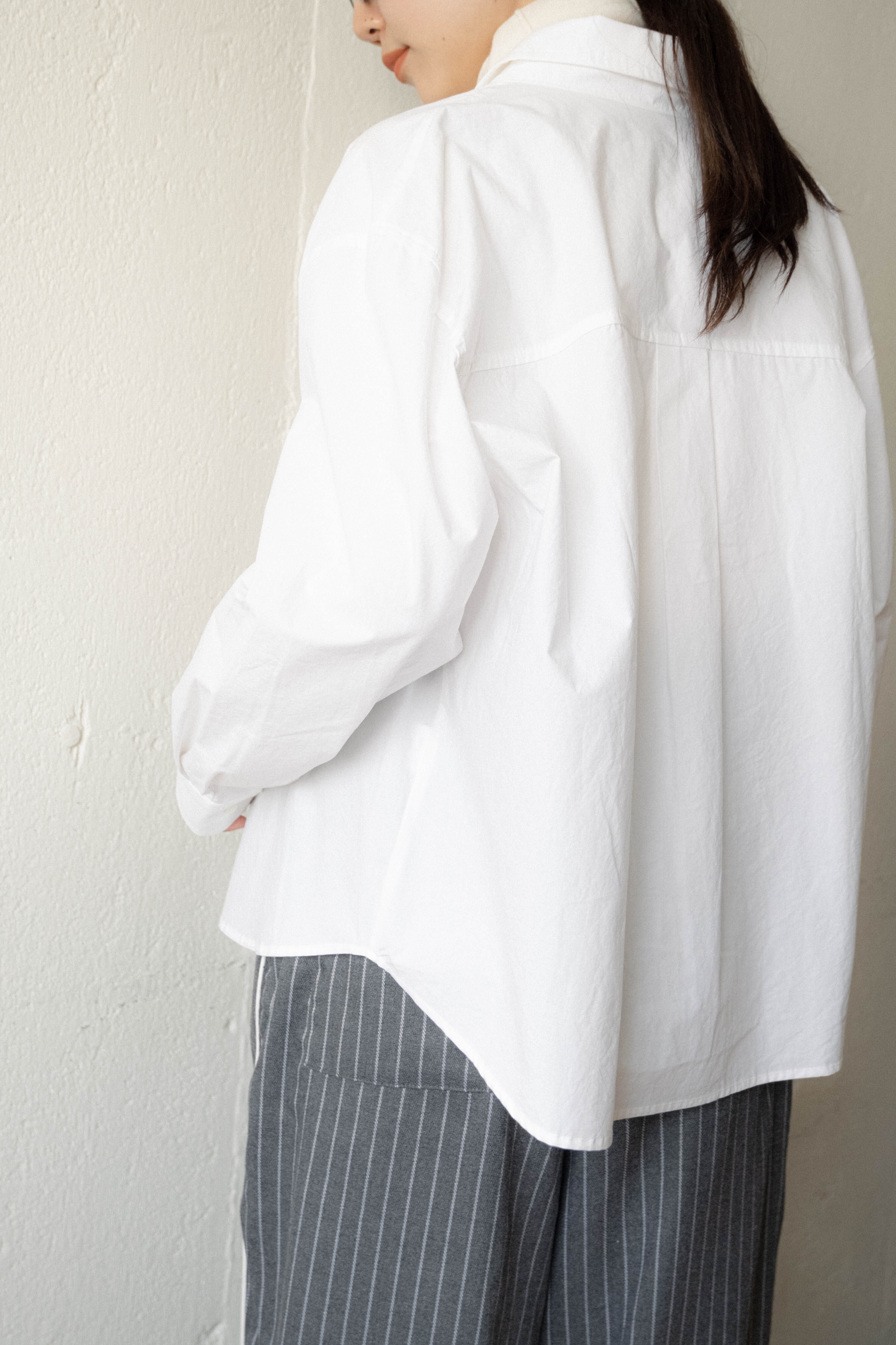 シルエットが美しい、ハリ感のあるコットンシャツ。少し短めの丈に、程よいボリューム感。
