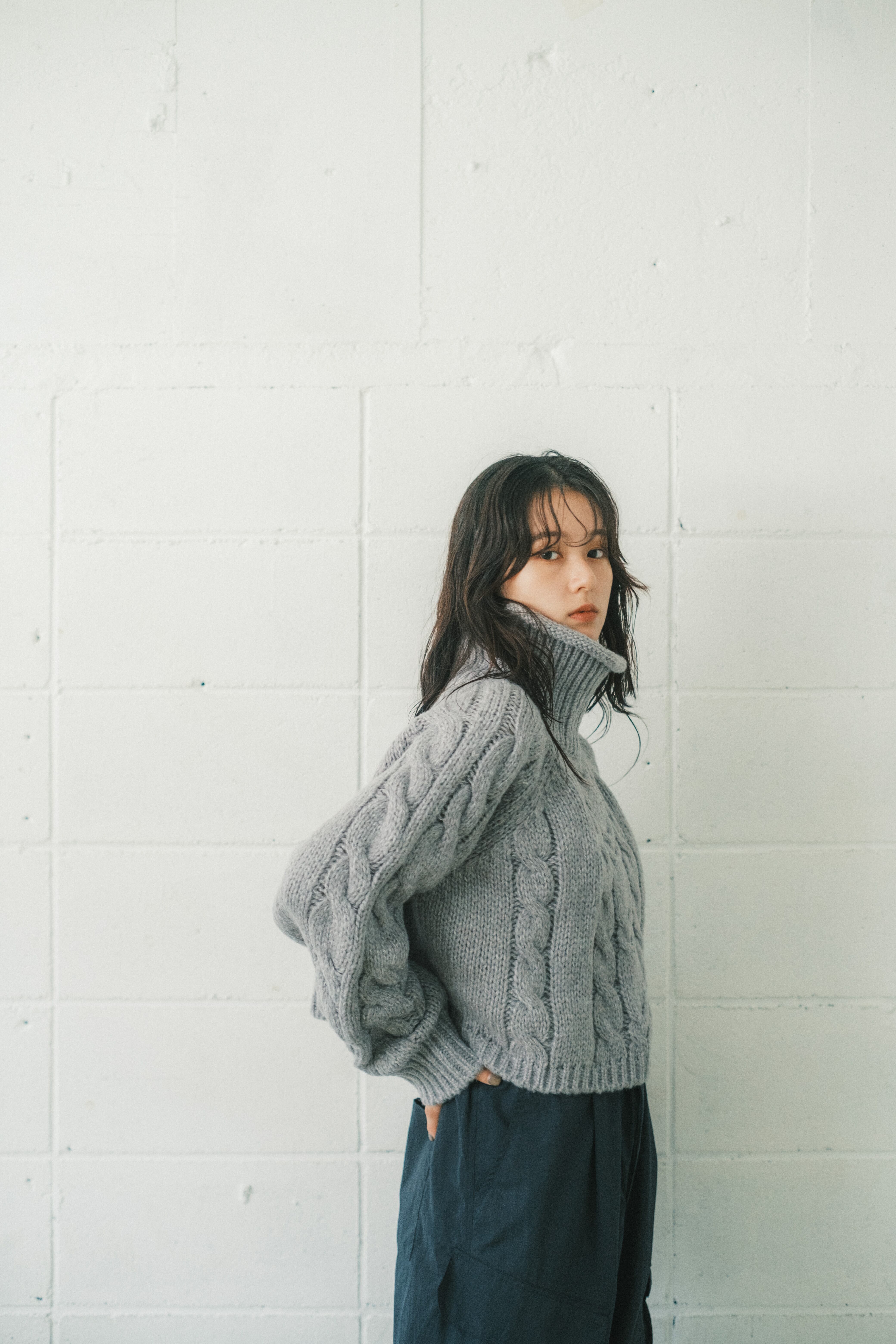 シンプルなアイテムとの相性が良く、メリハリの効いたシルエットで、主役級のニットプルオーバー。