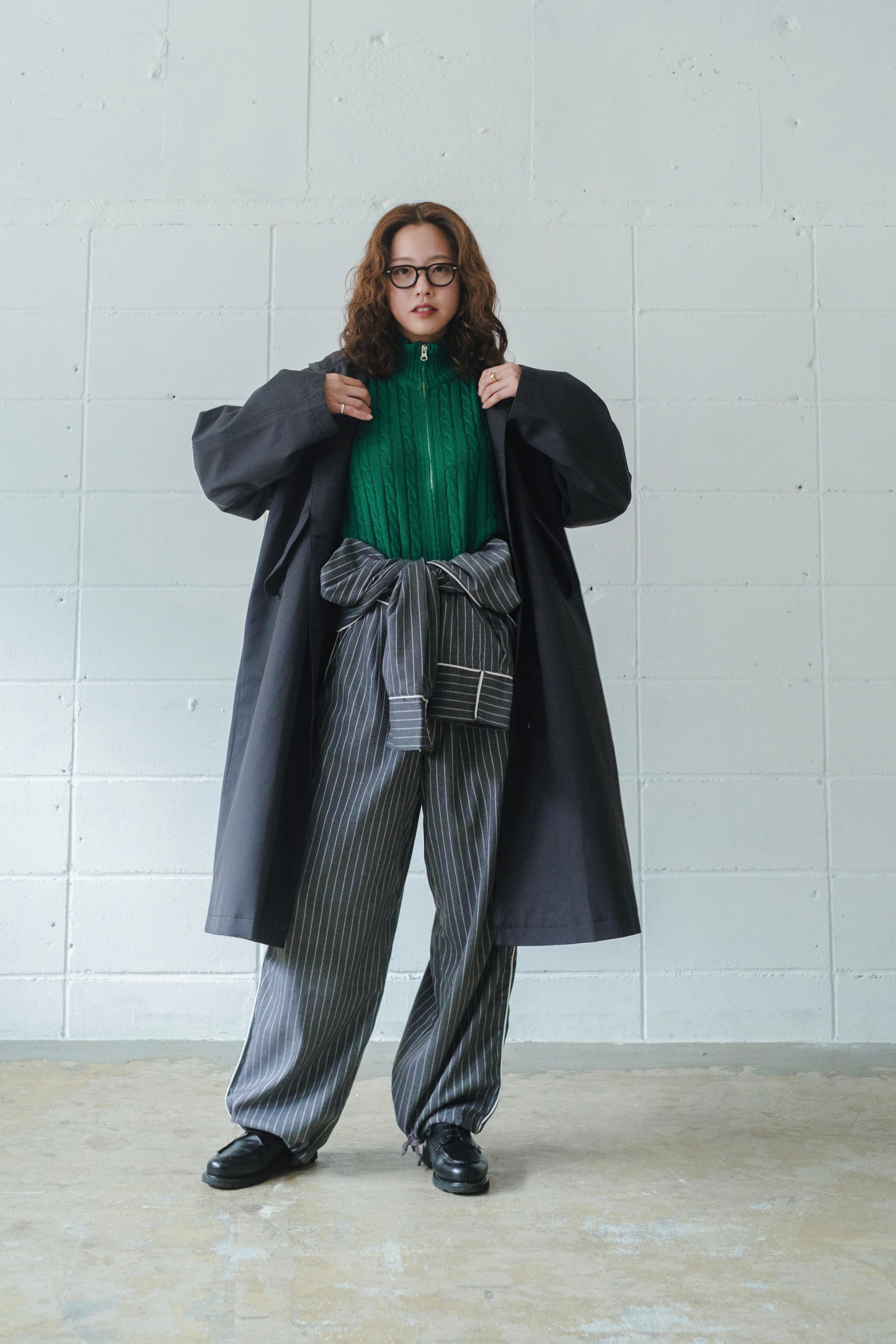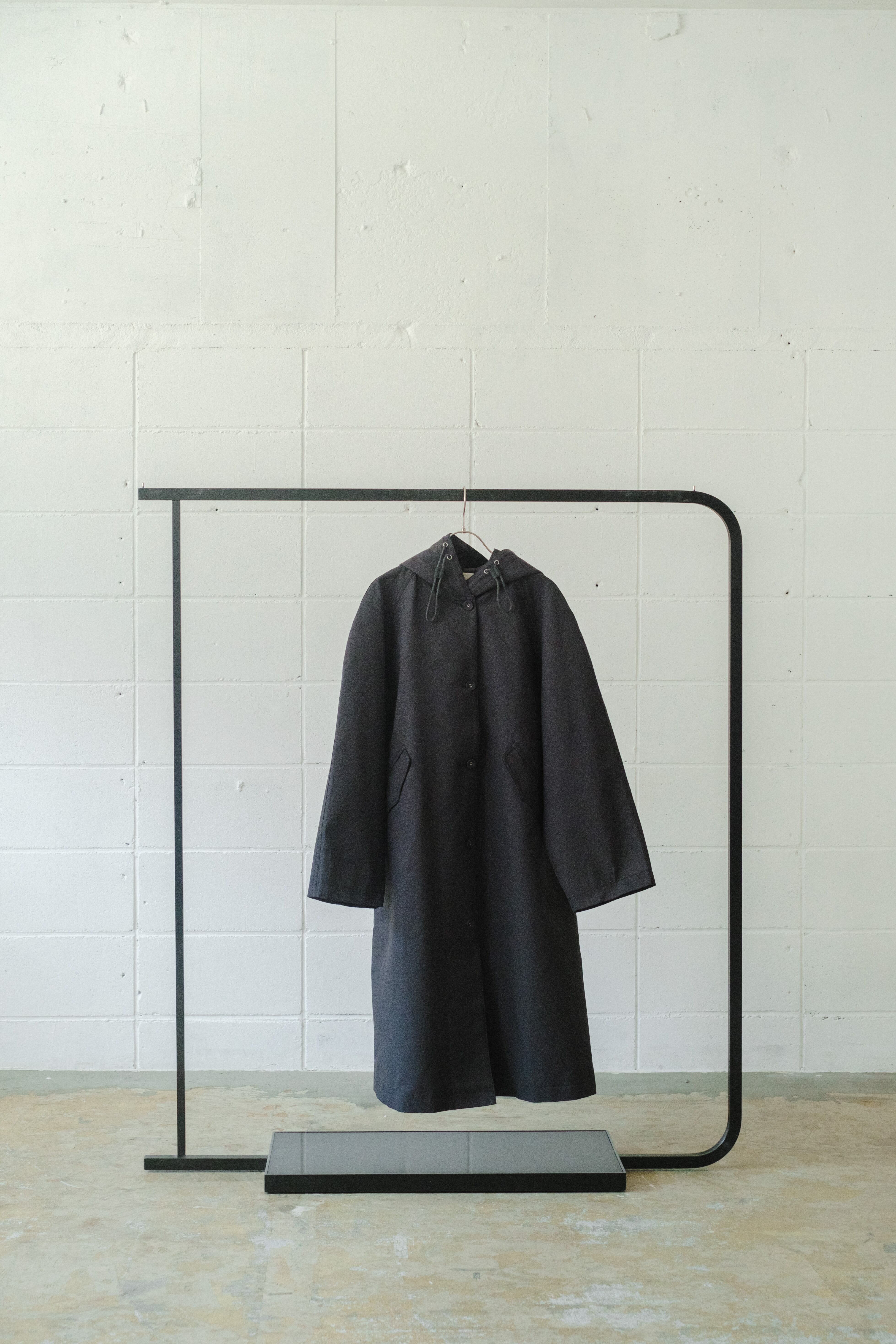 フード付きのロングコート。