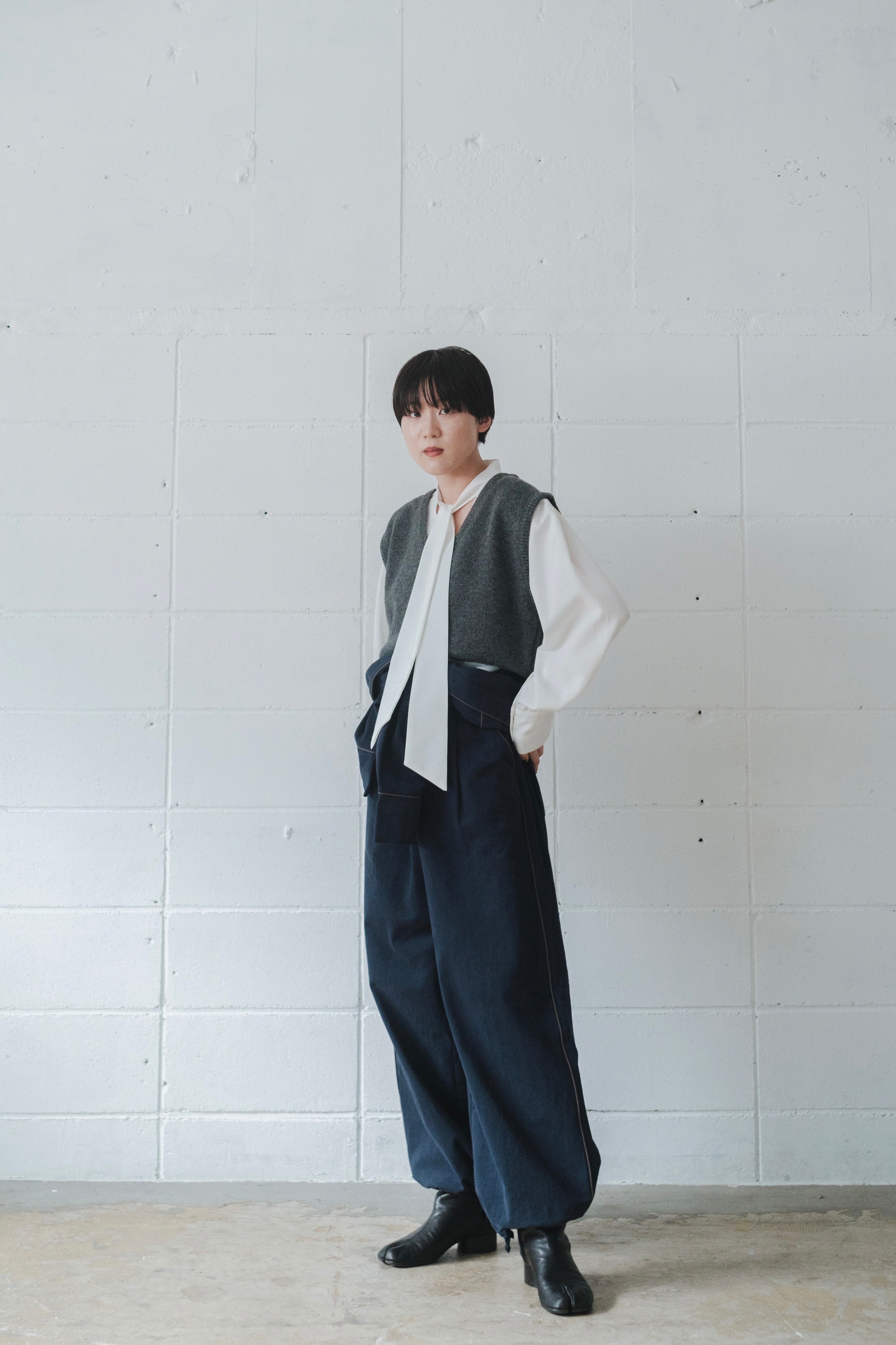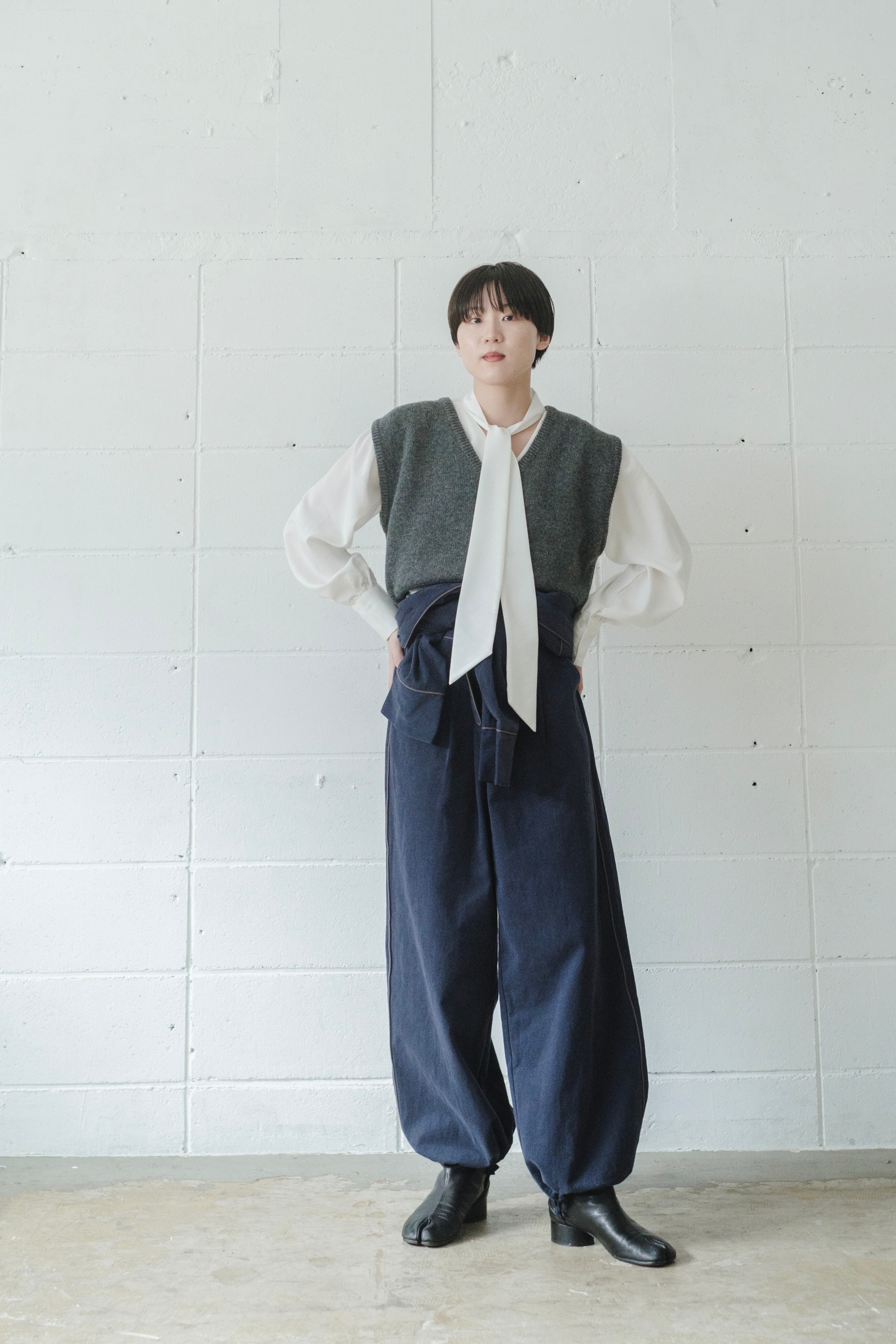 そのまま着るもよし。ウエストを絞るもよし。裾を絞るもよし。袖をまくるもよし。胸元を開くもよし。腰で縛りパンツスタイルで着るもよし。生活シーンや個性に合わせて様々な着方を楽しめます。