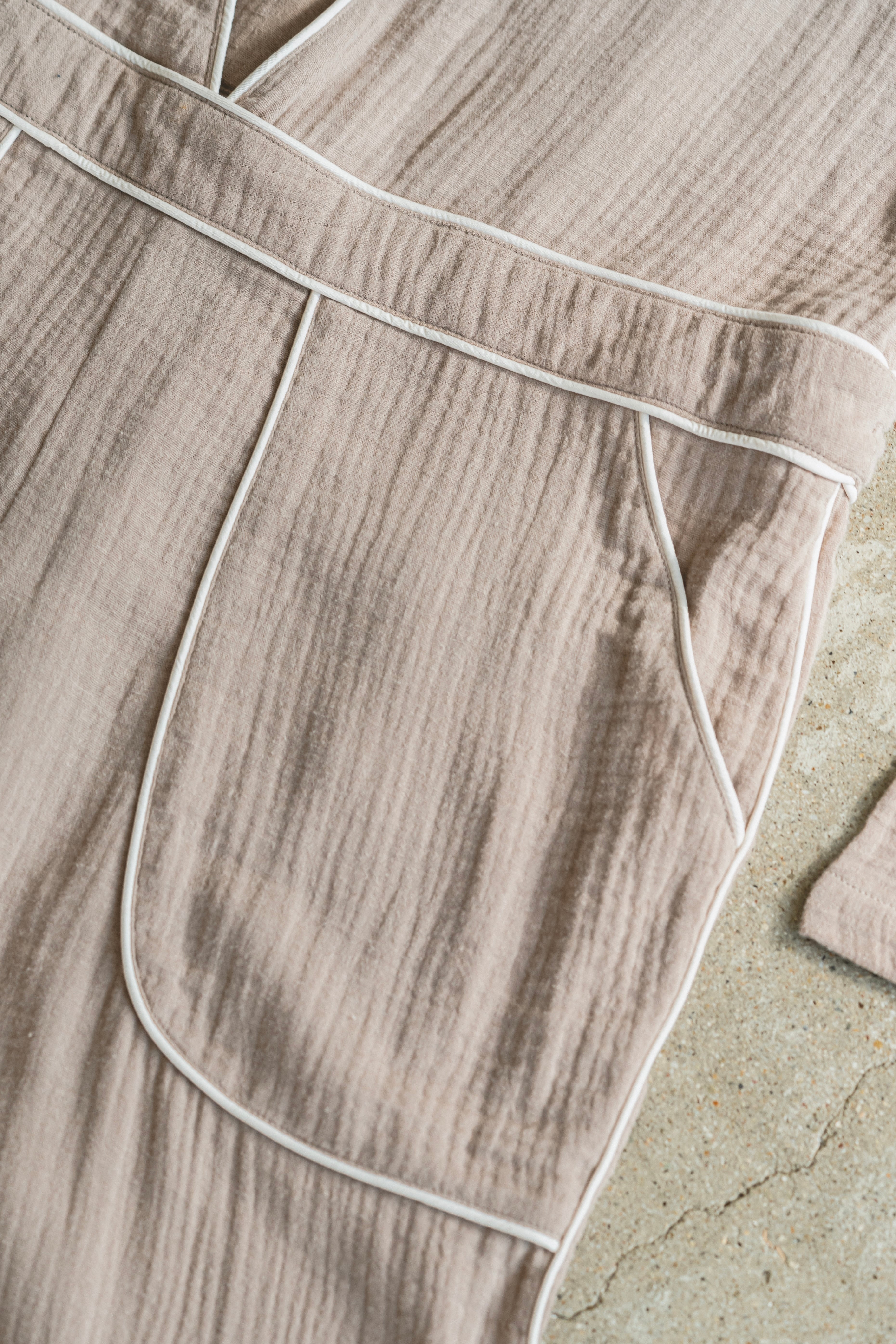 ・軽くて肌触りの柔らかなダブルガーゼを生地に使用。まるで寝具に包まれたような着心地です。
