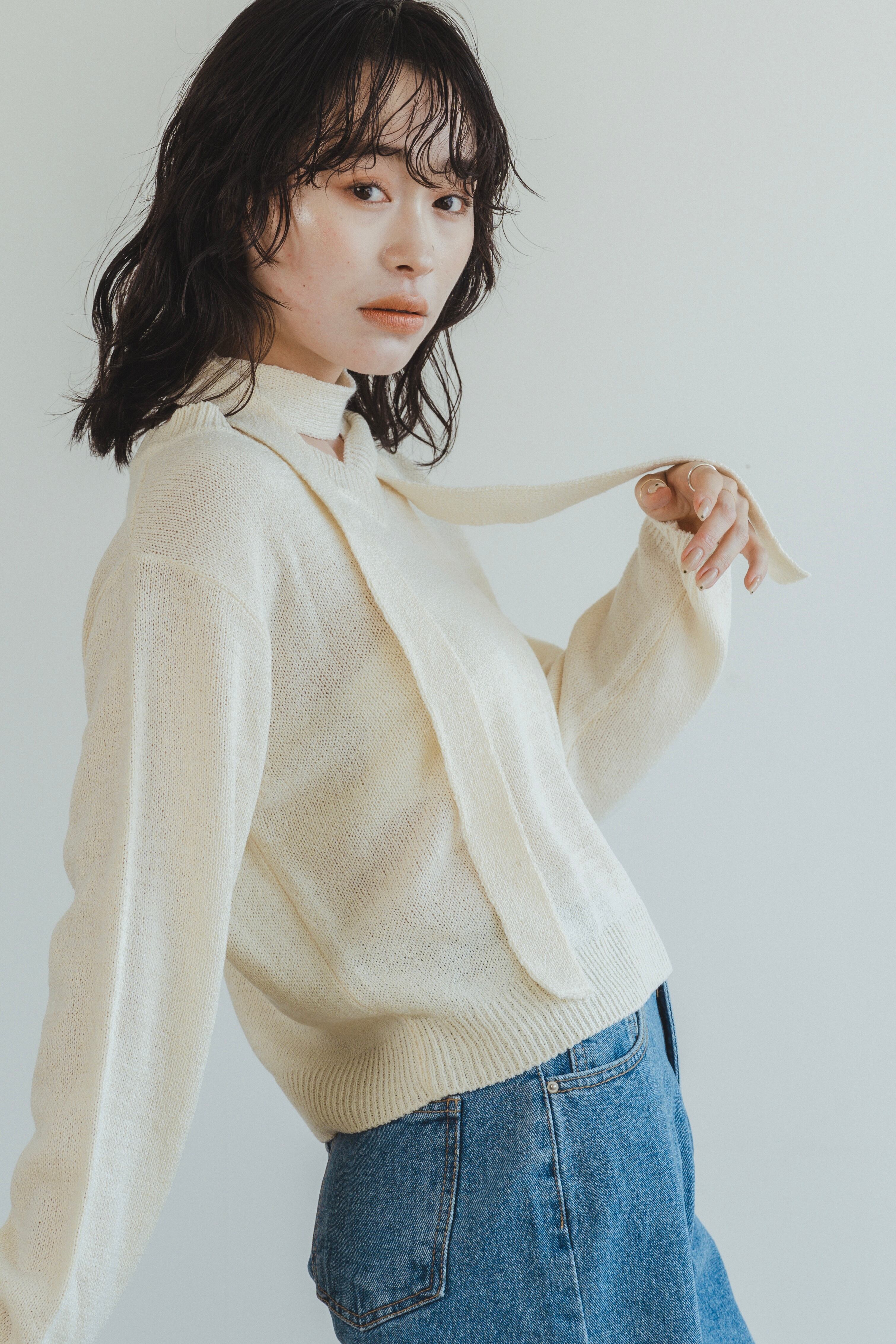 薄手のアクリルニットで、春夏もご着用いただけます。