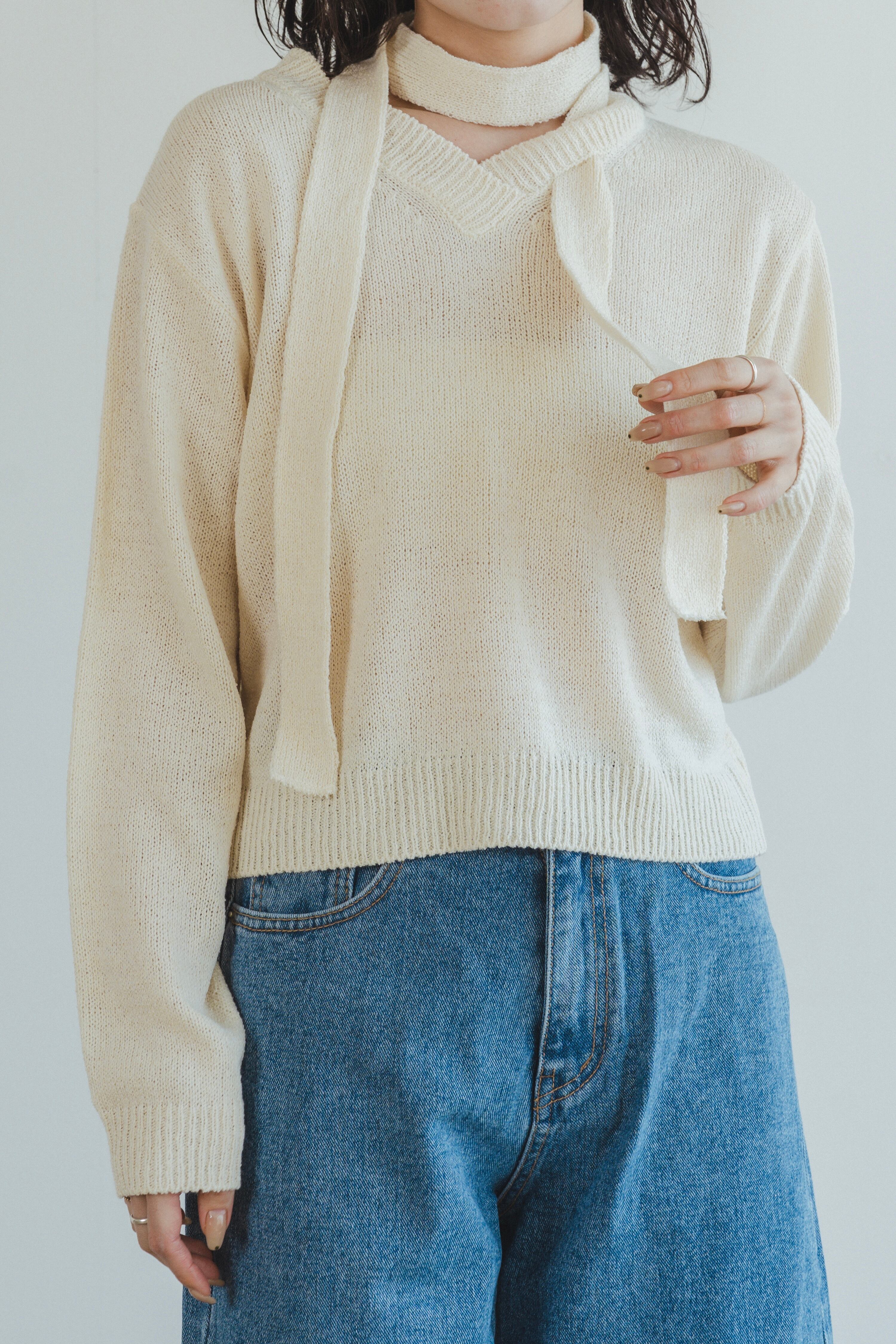 tie design v-neck knit