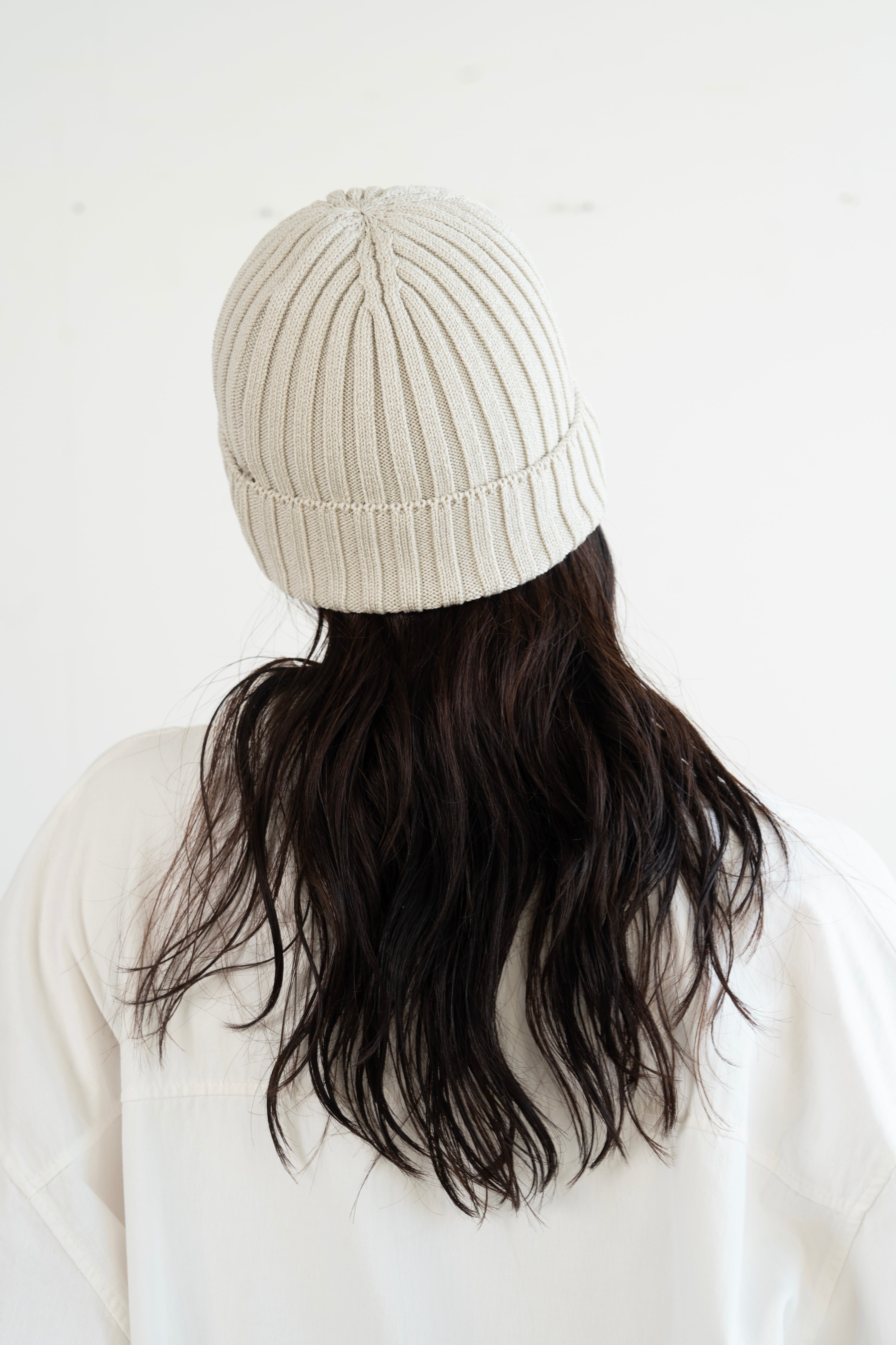 コットン素材で、オールシーズン着用できるビーニー。春夏もご着用いただけて、形が綺麗です。