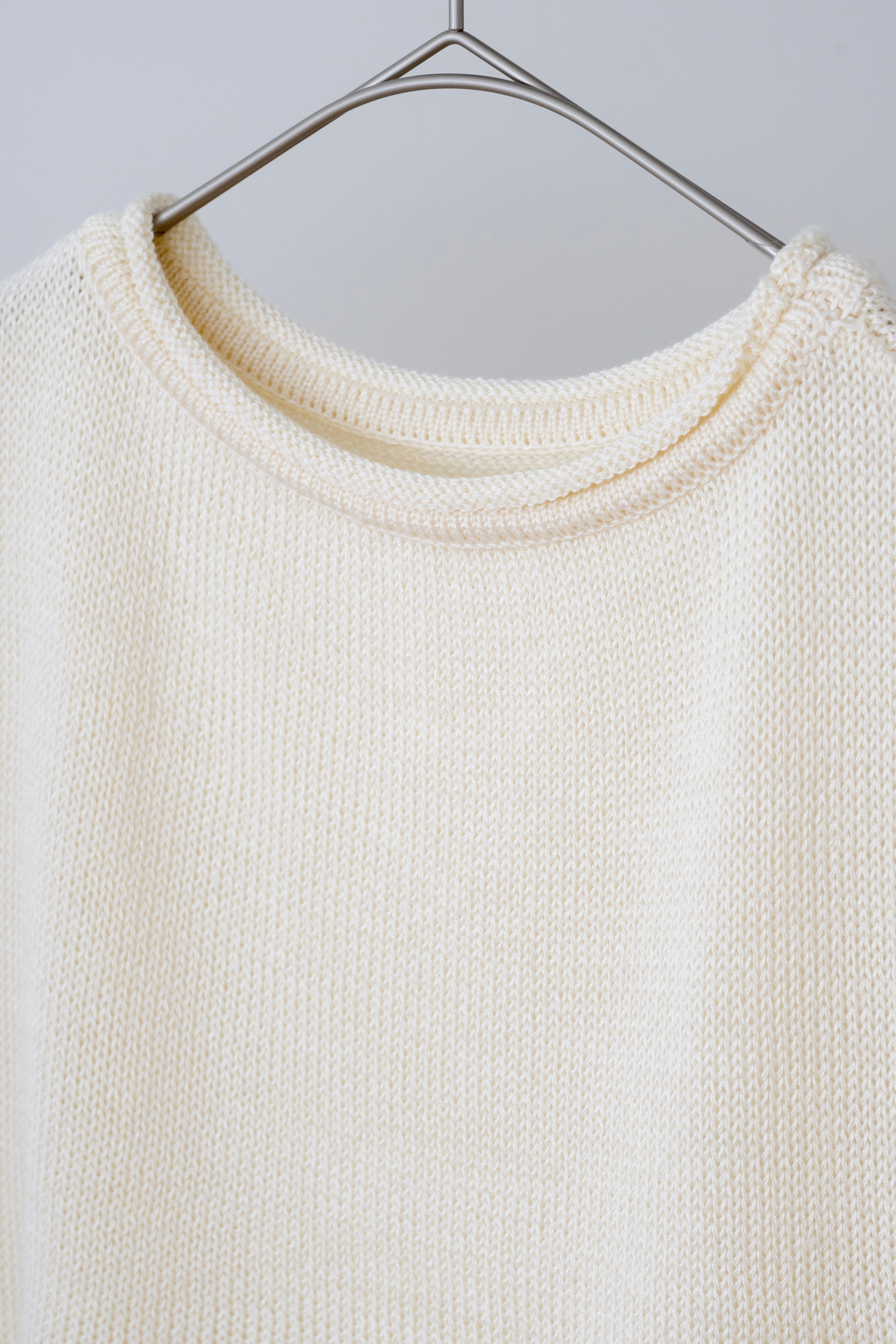 ロールネックの仕様がポイントの、サマーニットベスト。Tシャツの上に重ね着するのもお勧めです。