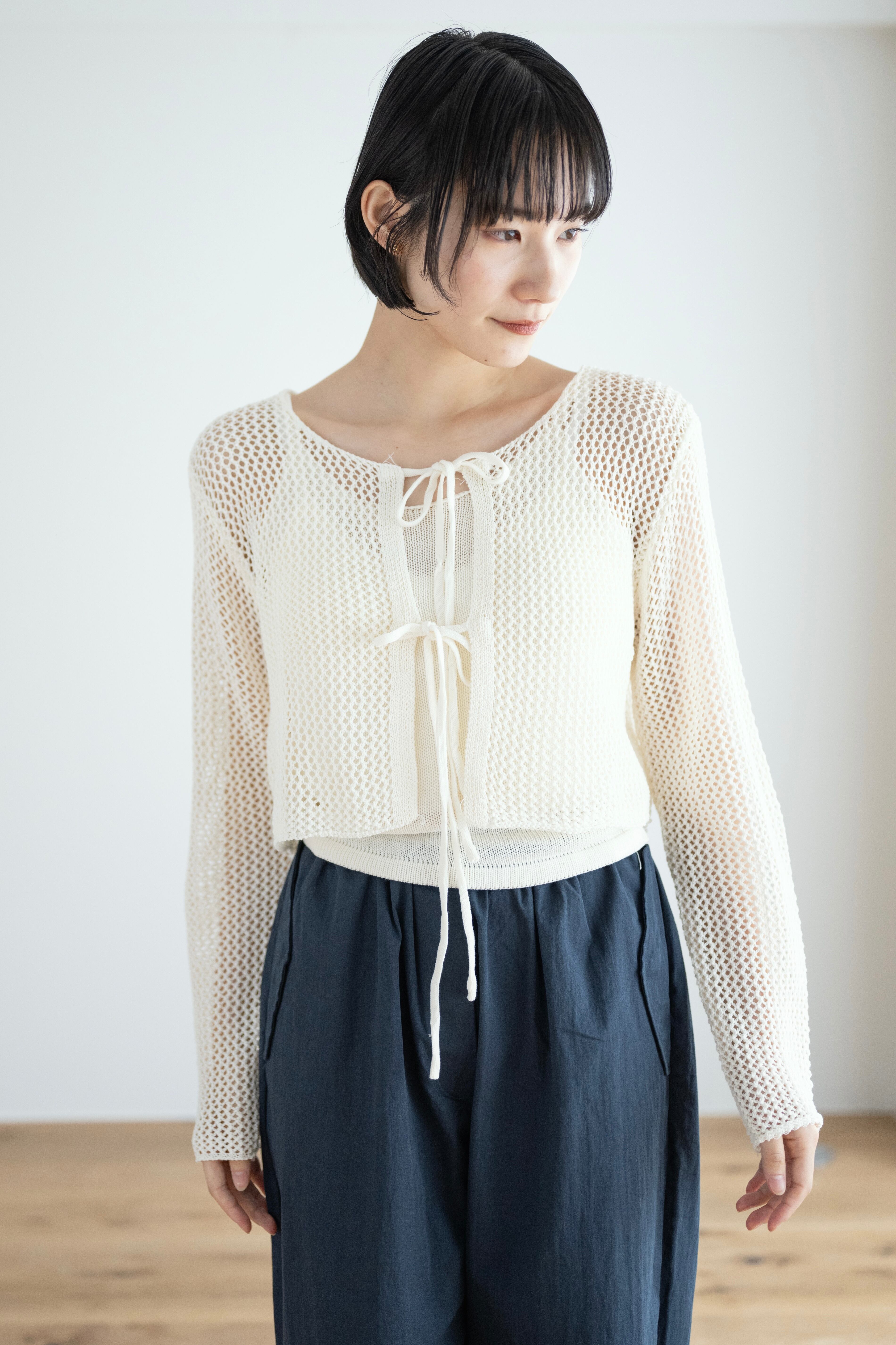 コットン素材で、夏でも心地いいニットアンサンブル。同素材のキャミソールとカーディガンがセットになっており、別々での着用もお勧めです。