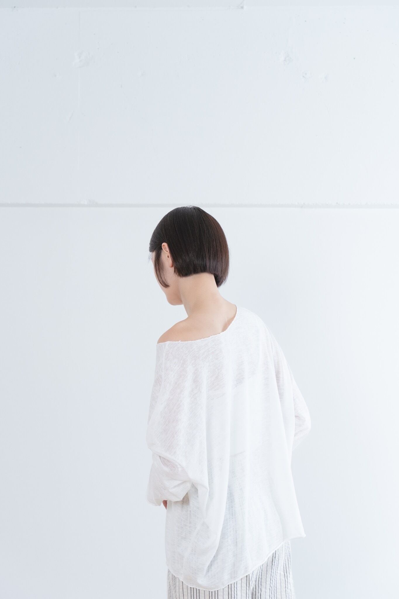 肌の透け感が綺麗で、夏でも心地よくご着用いただけます。片方だけオフショルダーで、着用するのもお勧めです。
