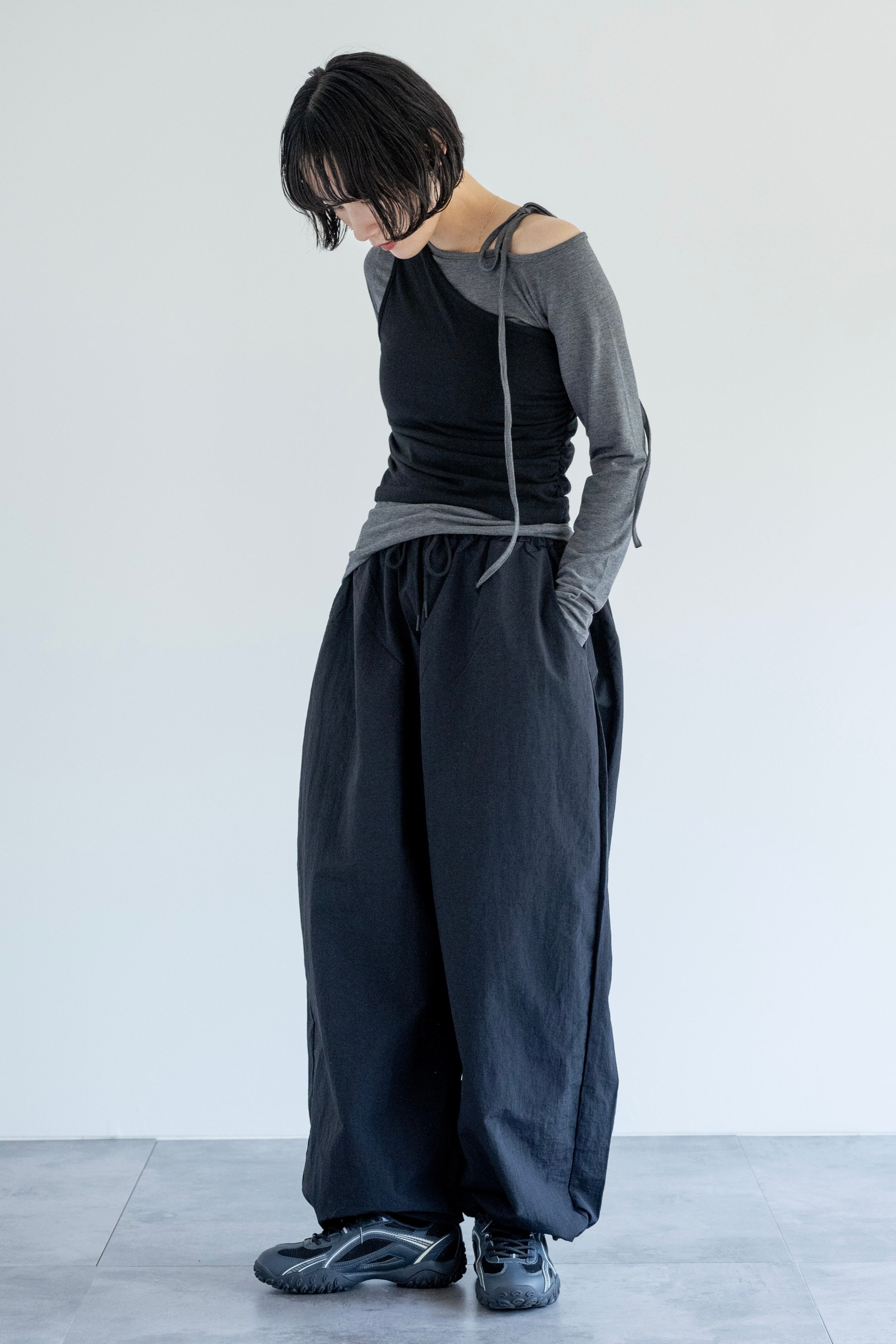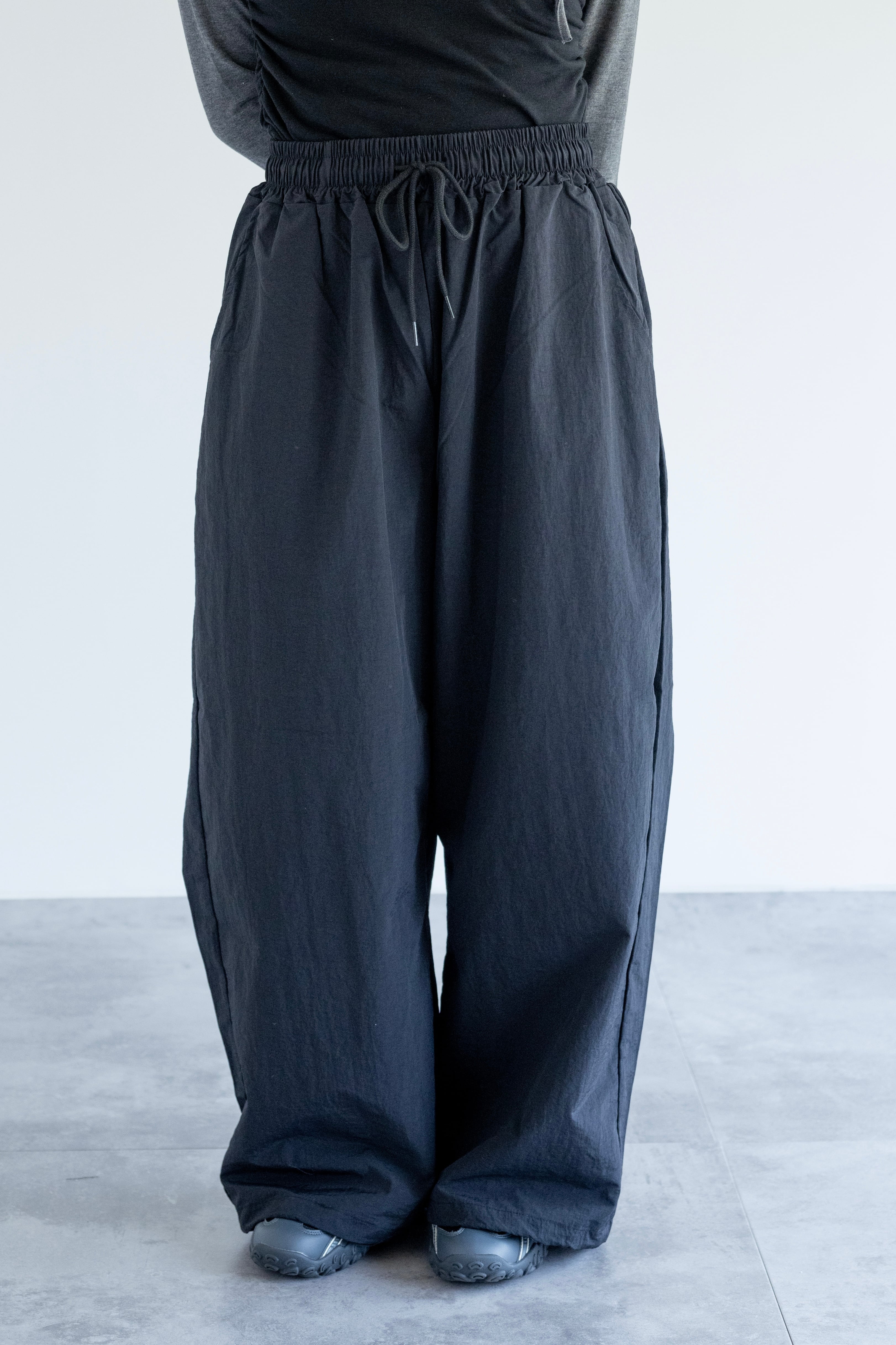 ボリューム感のあるパラシュートパンツ。