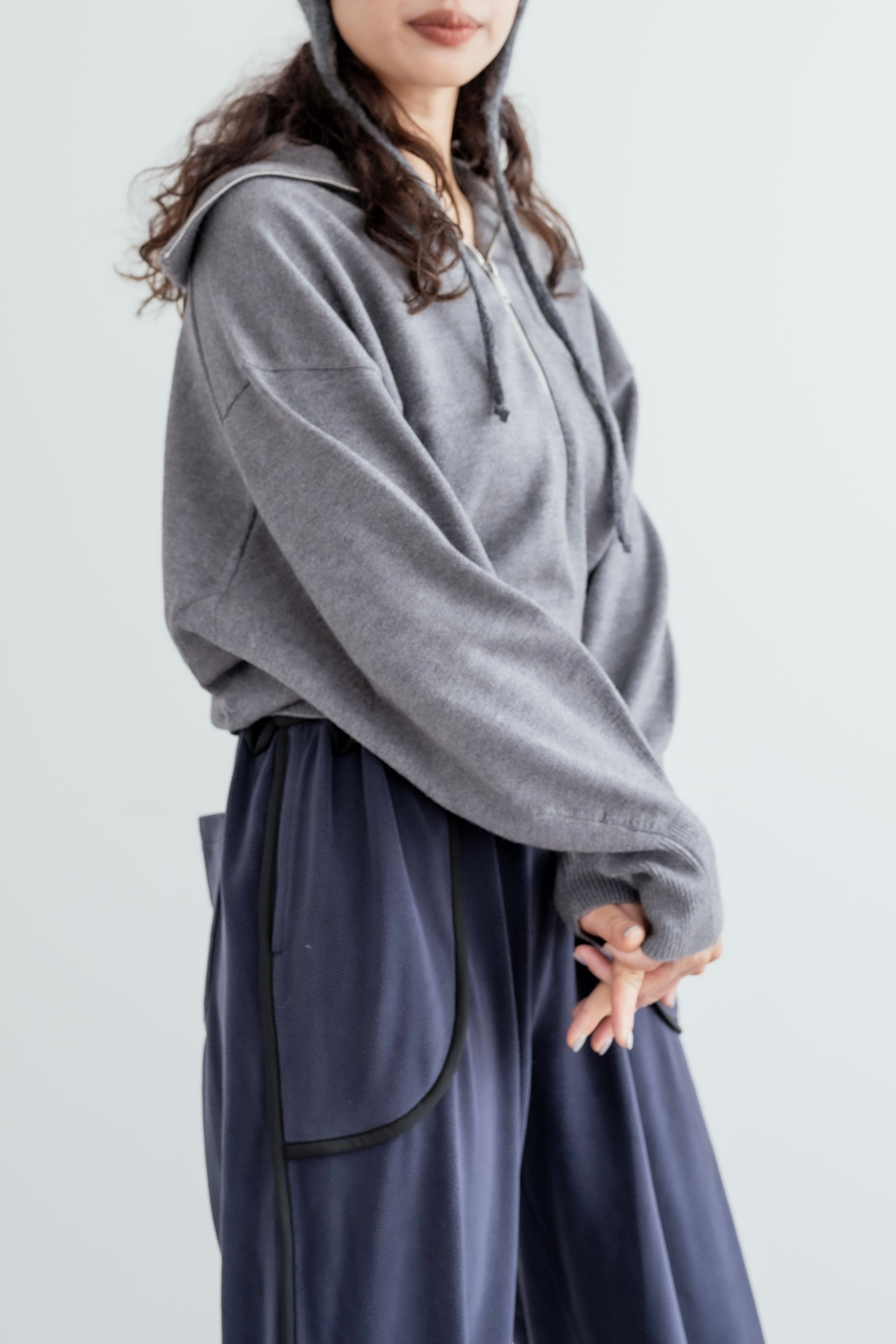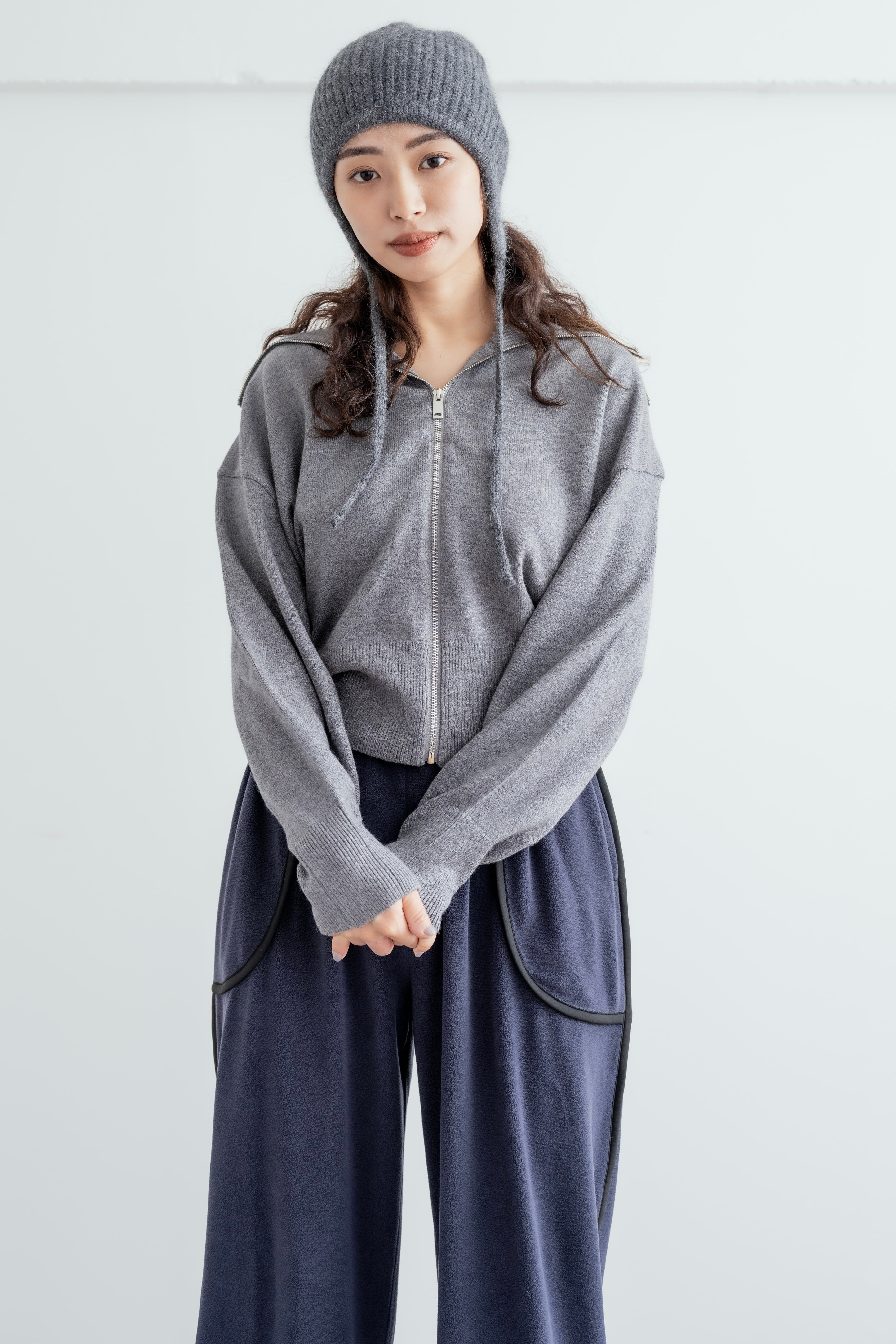 なめらかで肌触りの気持ちいいジップニット。