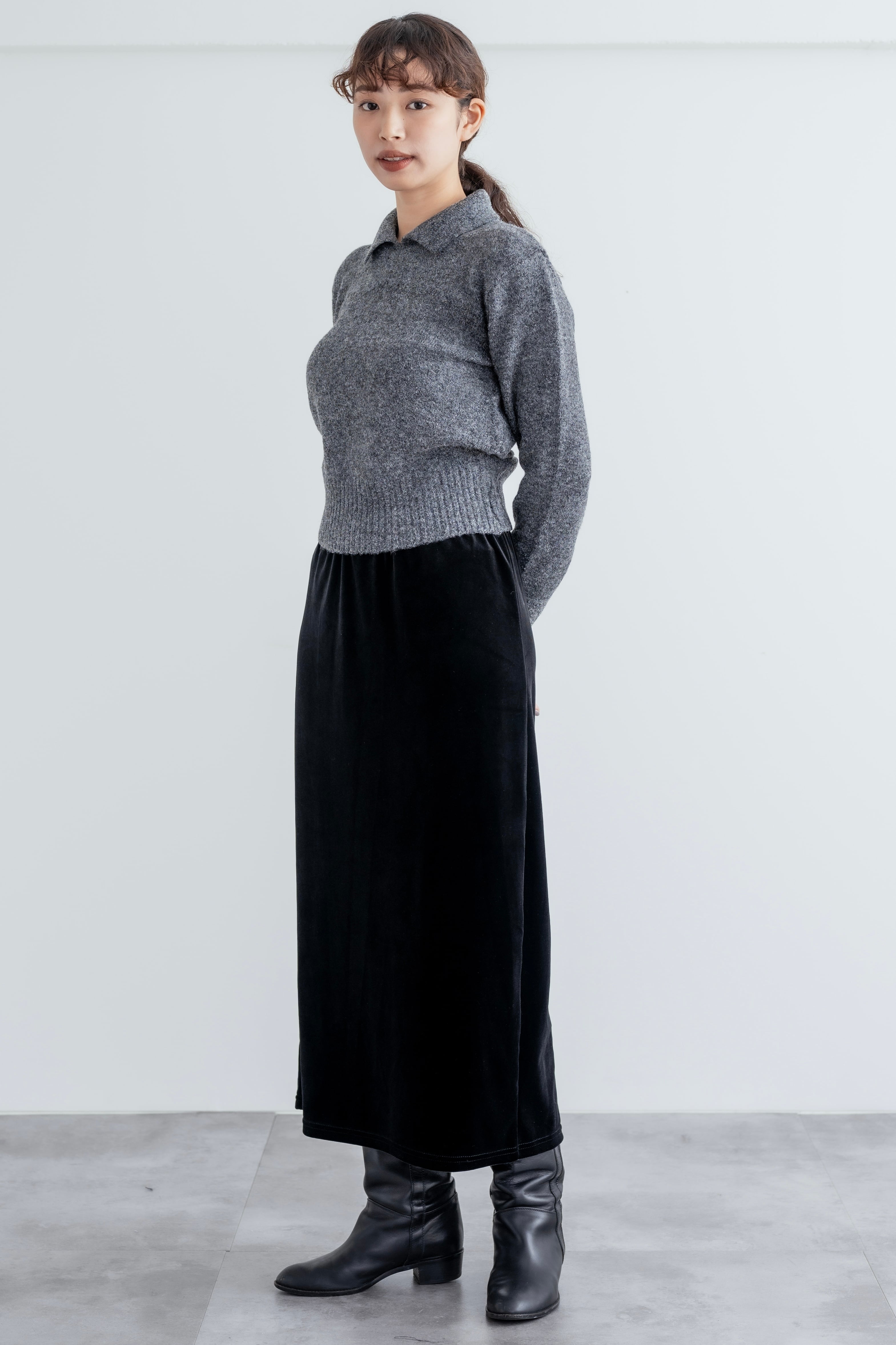 裾の長いリブもポイント。ウール混であたたかいです。短め丈で、スカートとの相性も◎